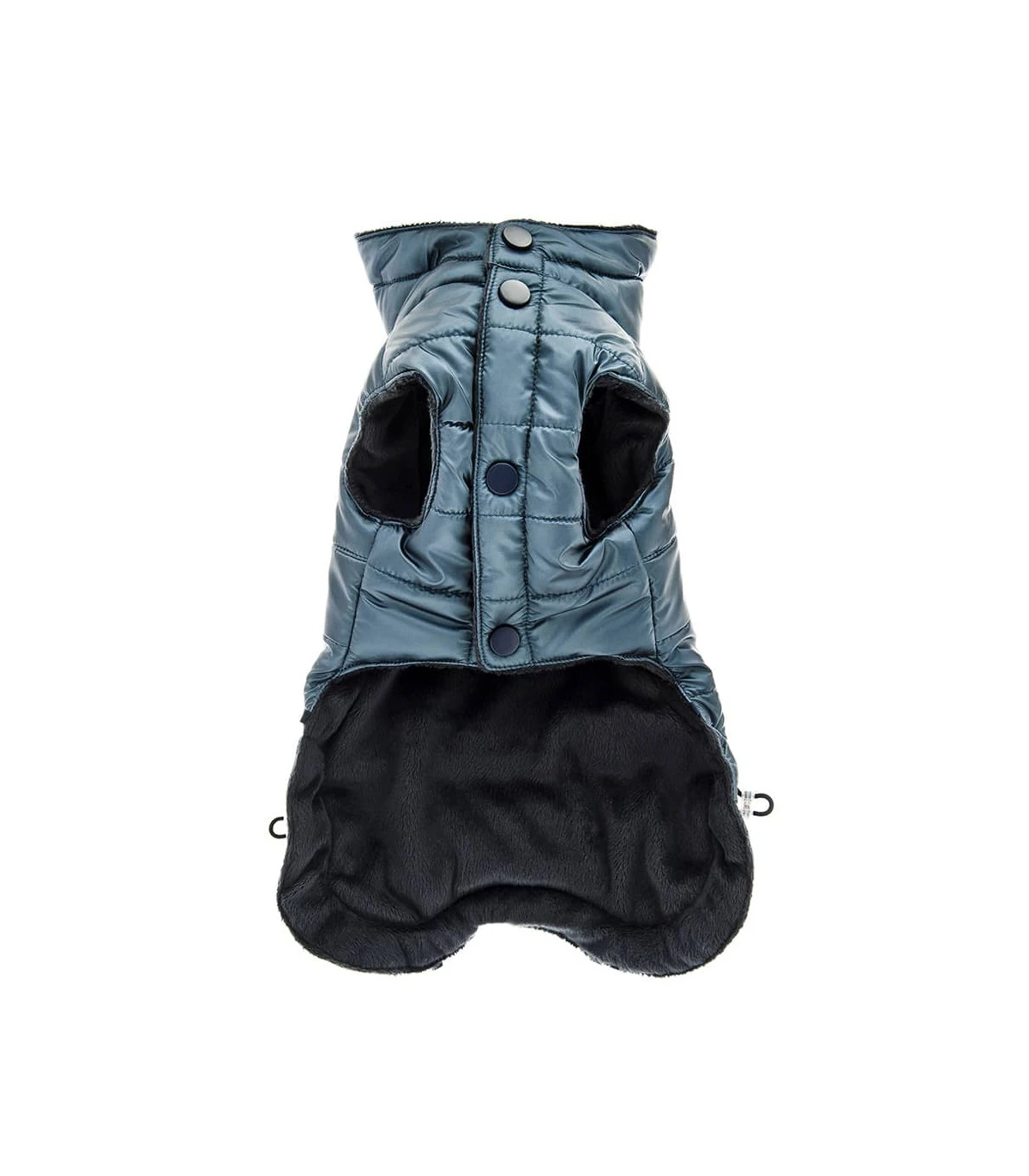 Doudoune matelassé irisé bleu avec intérieur en fausse fourrure chaude