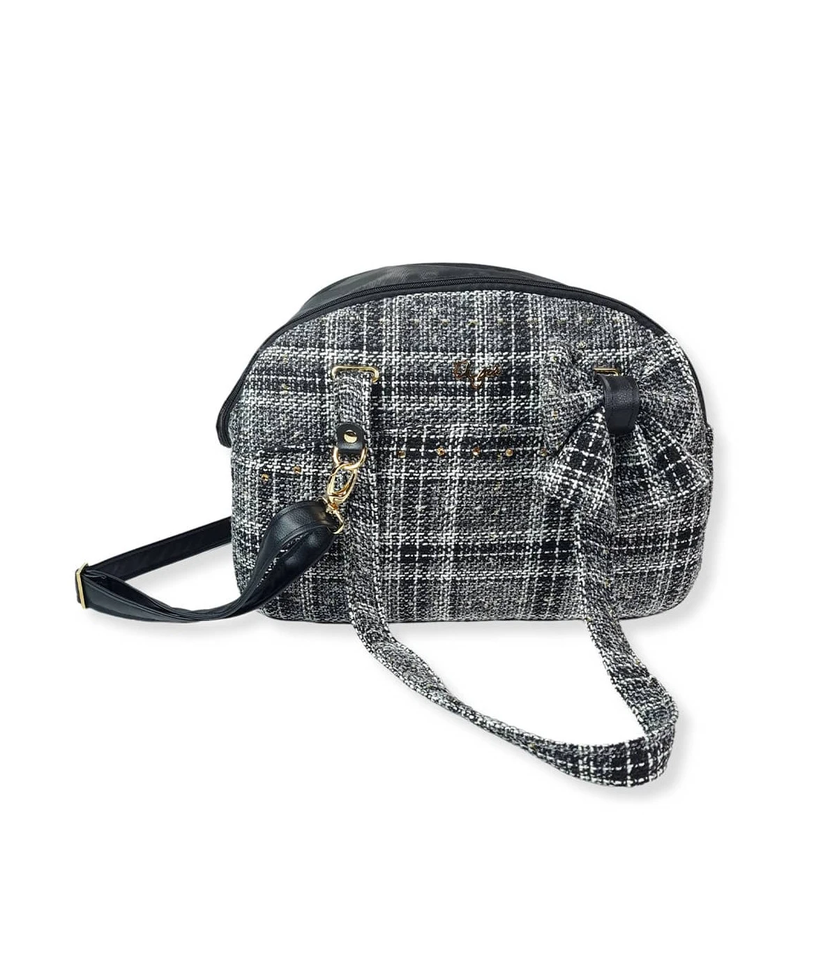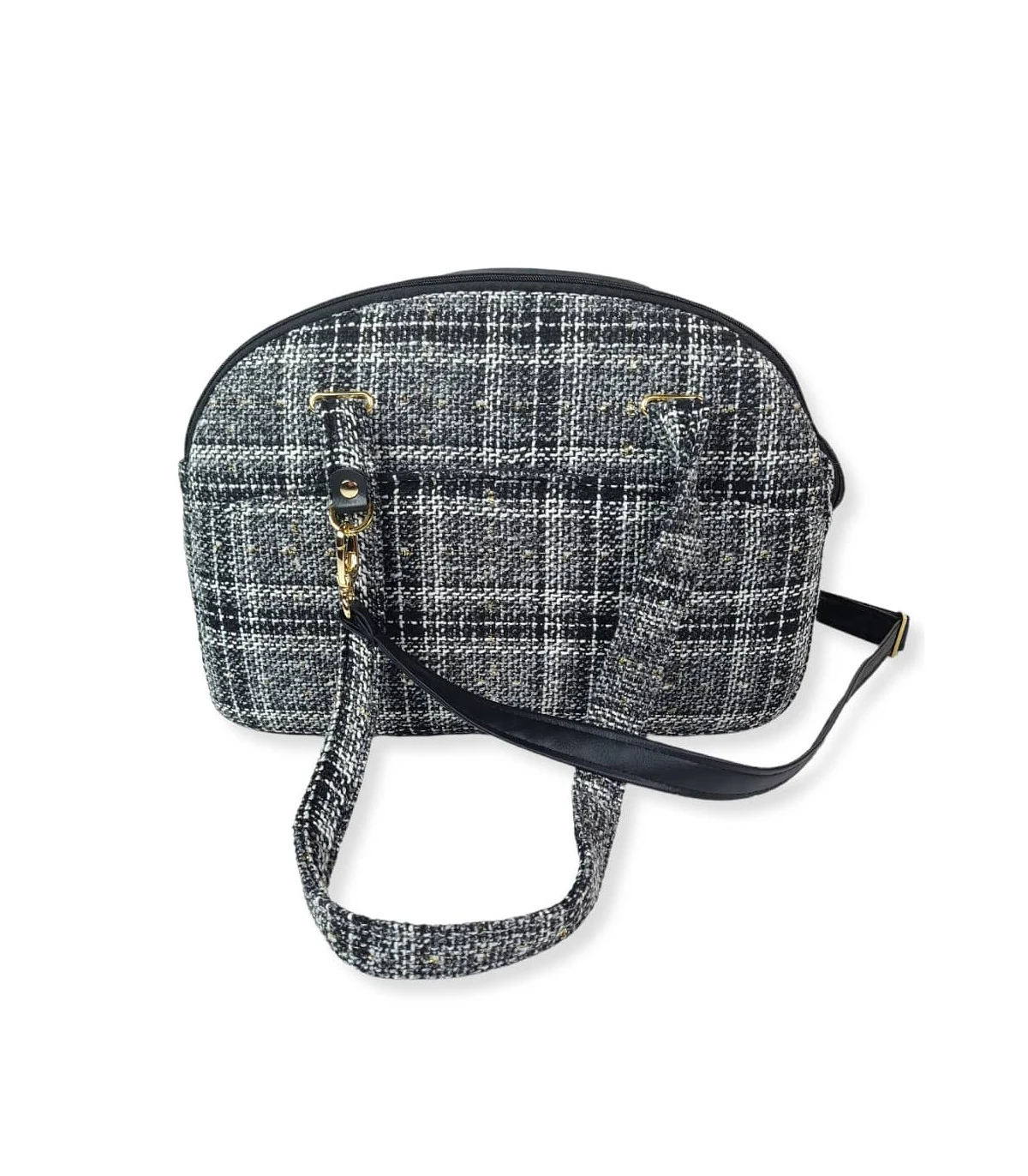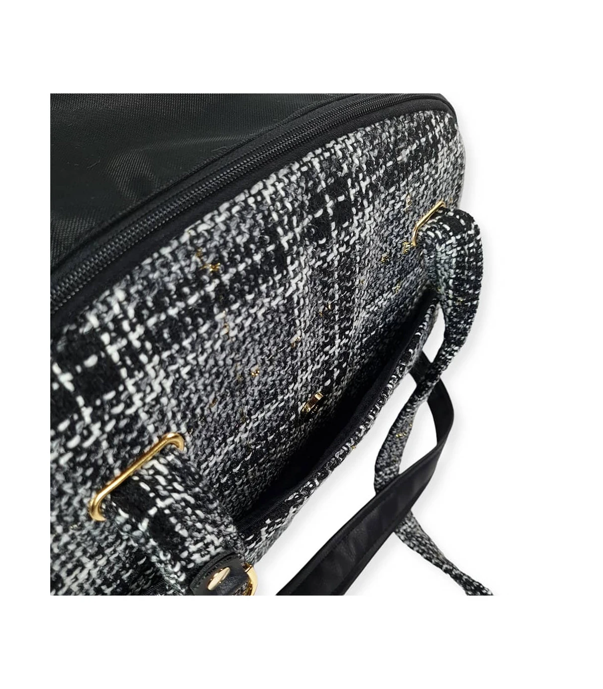 Sac de transport en tissu tweed noir chiné à porter sur l’épaule ou en sling