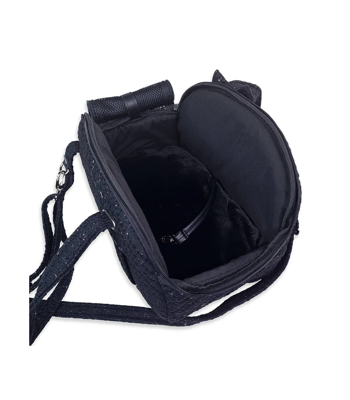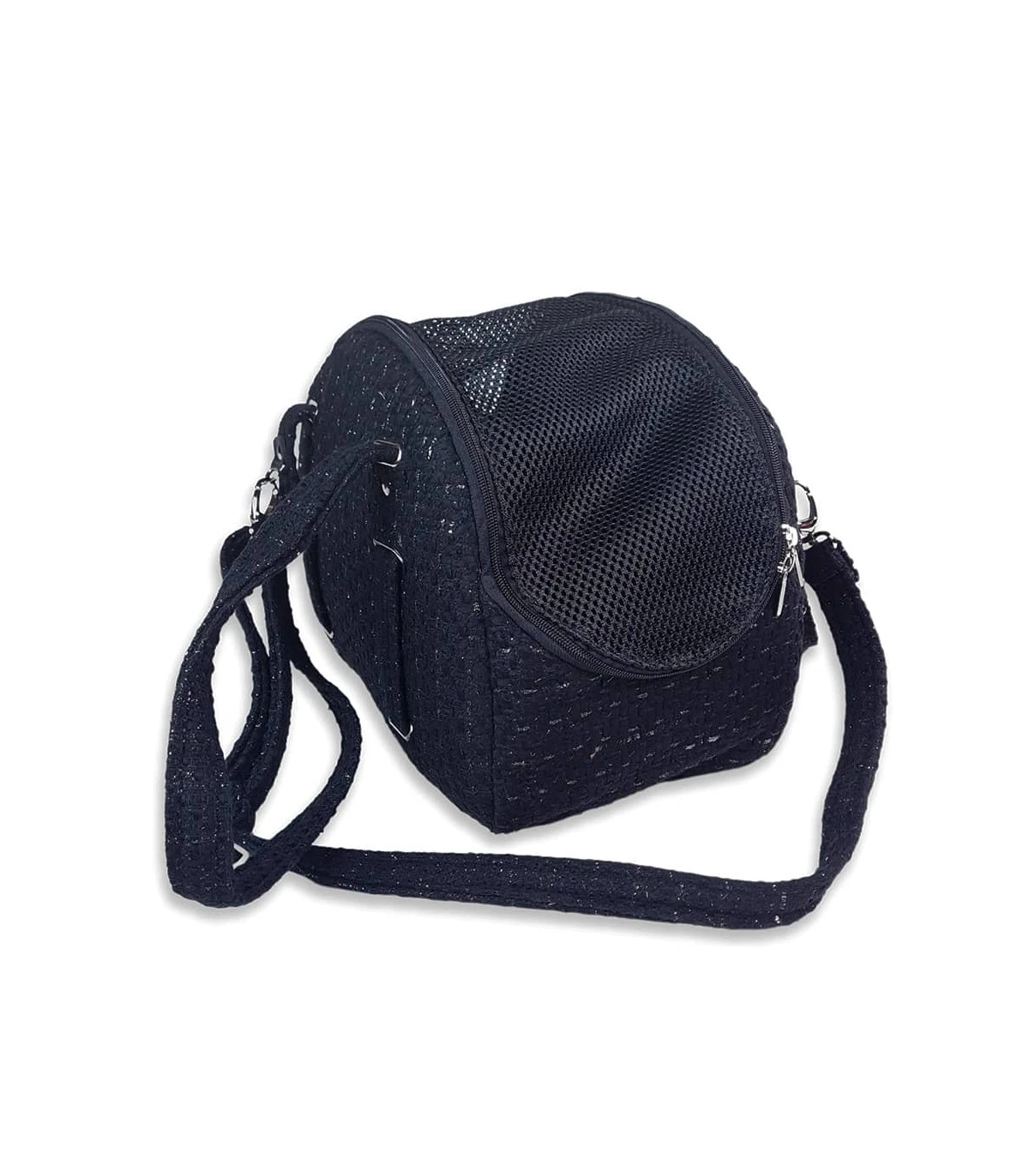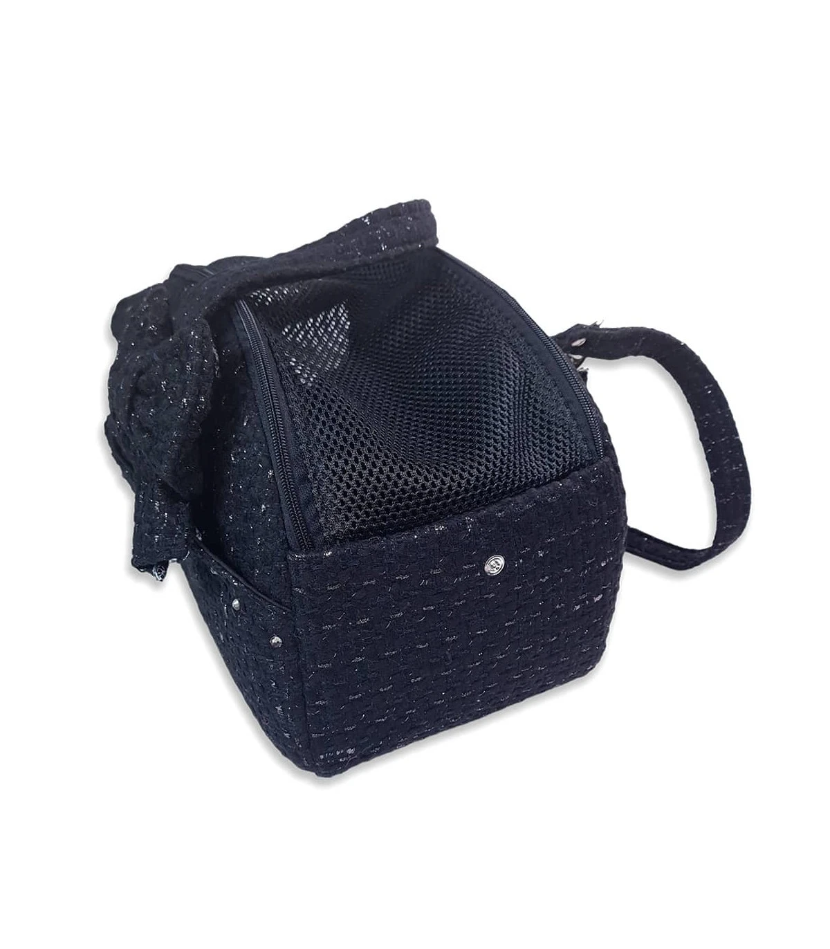 Sac de transport en tissu tweed noir chiné avec fils argentés à porter sur l’épaule ou en sling