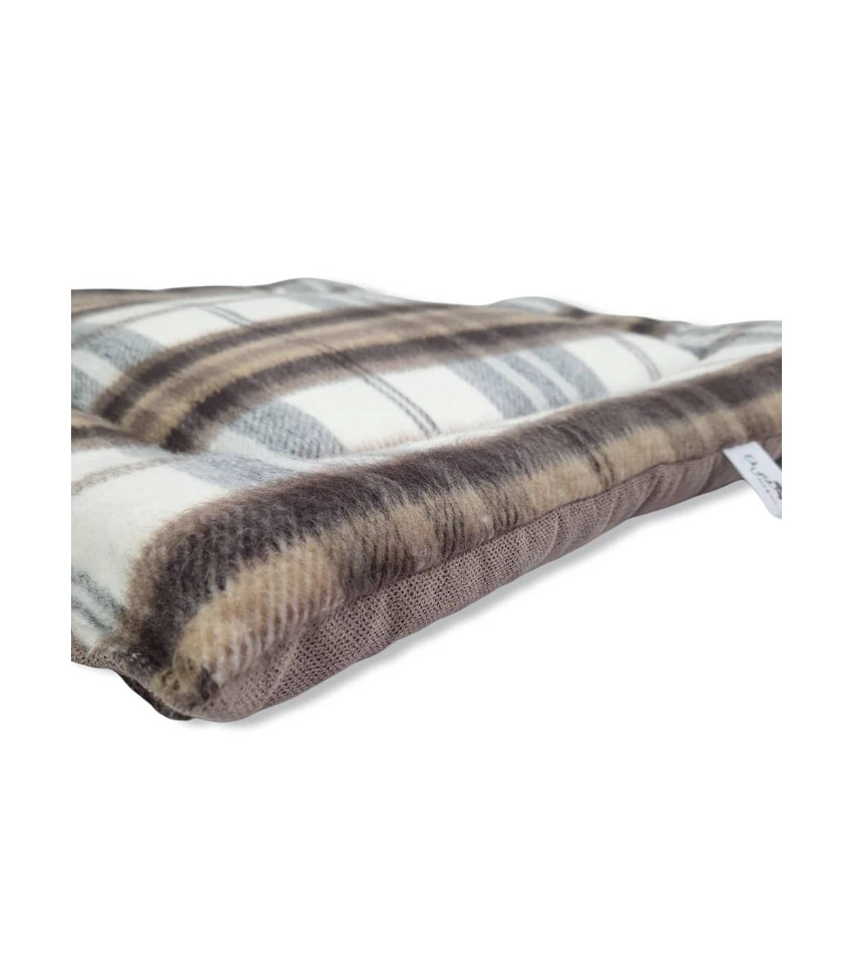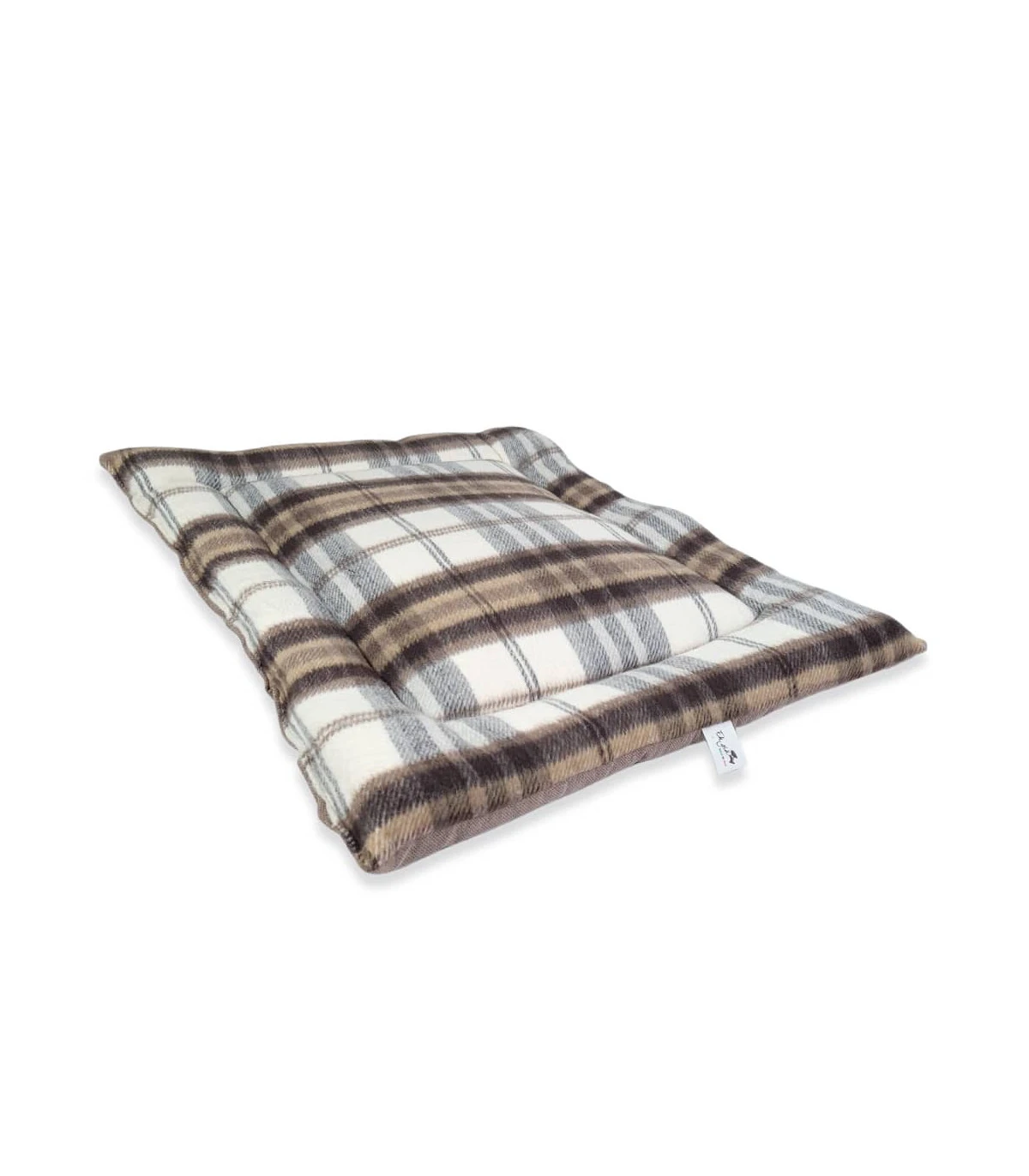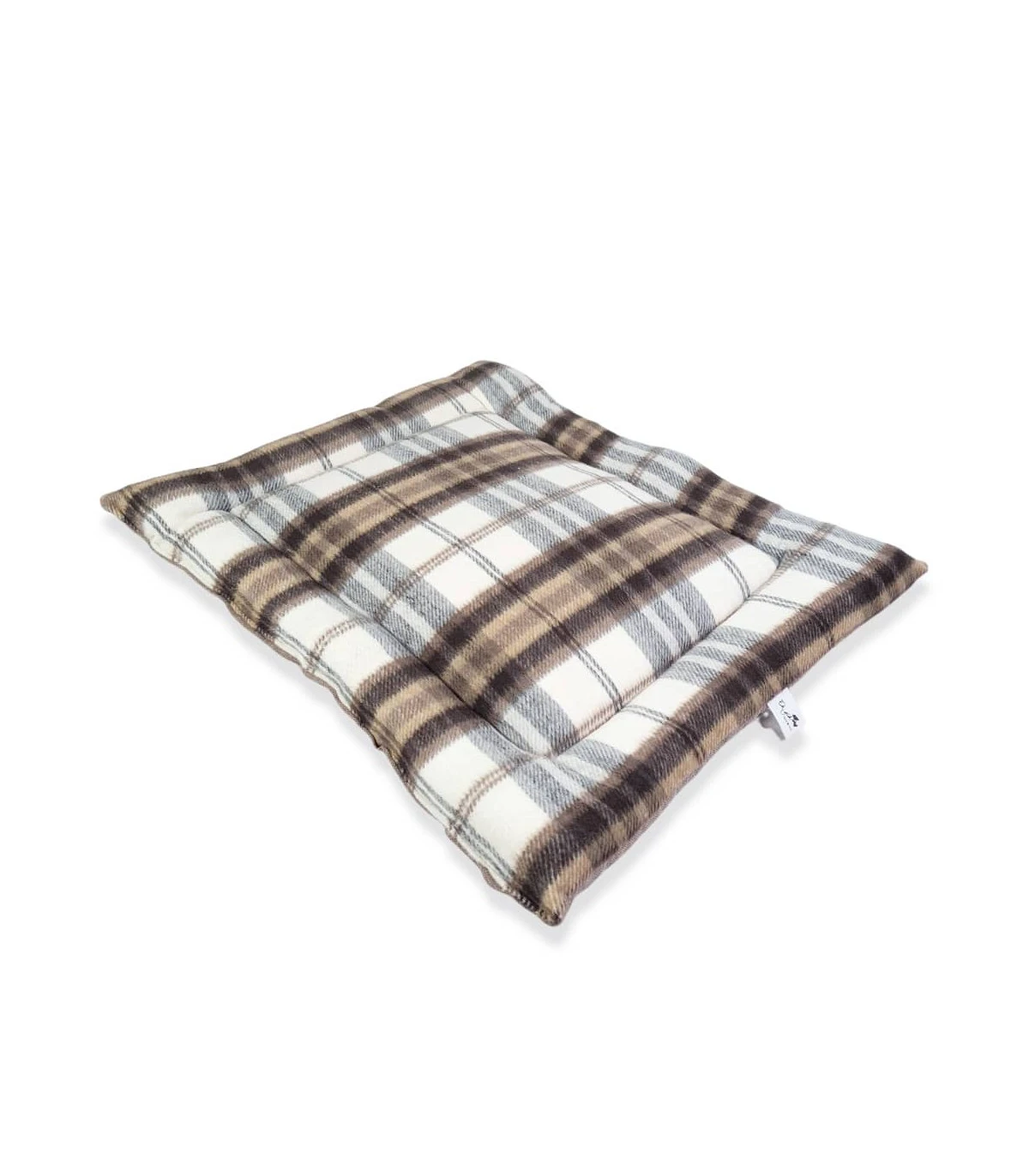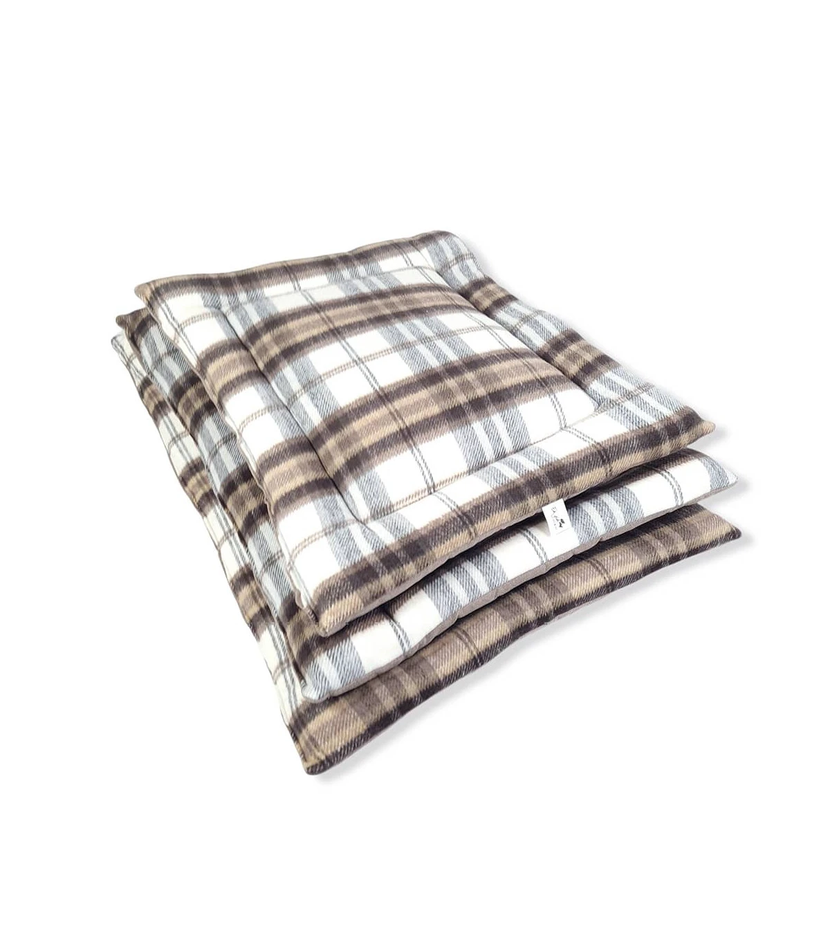 Tapis rembourré en tissu façon lainage écossais beige, double face ( une face en tartan beige et une face uni )