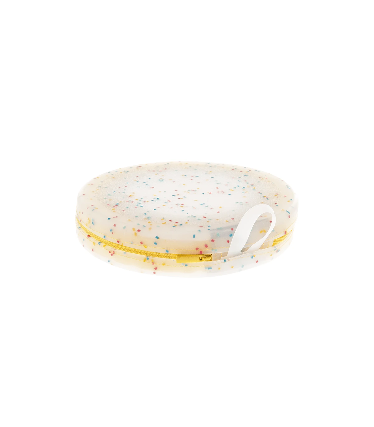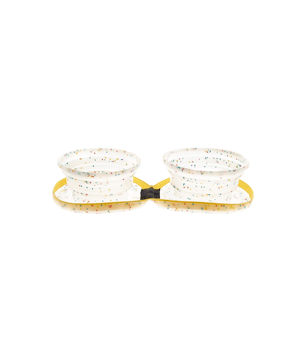 Gamelle double en silicone avec effet confettis , elles se plie sur elles même et se referme par zip pour un gain de place optimal