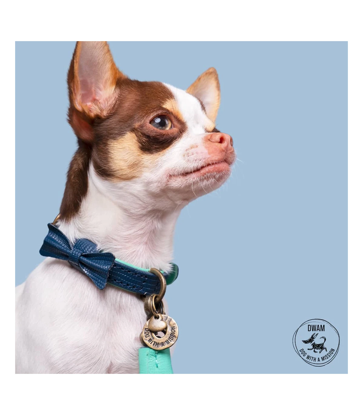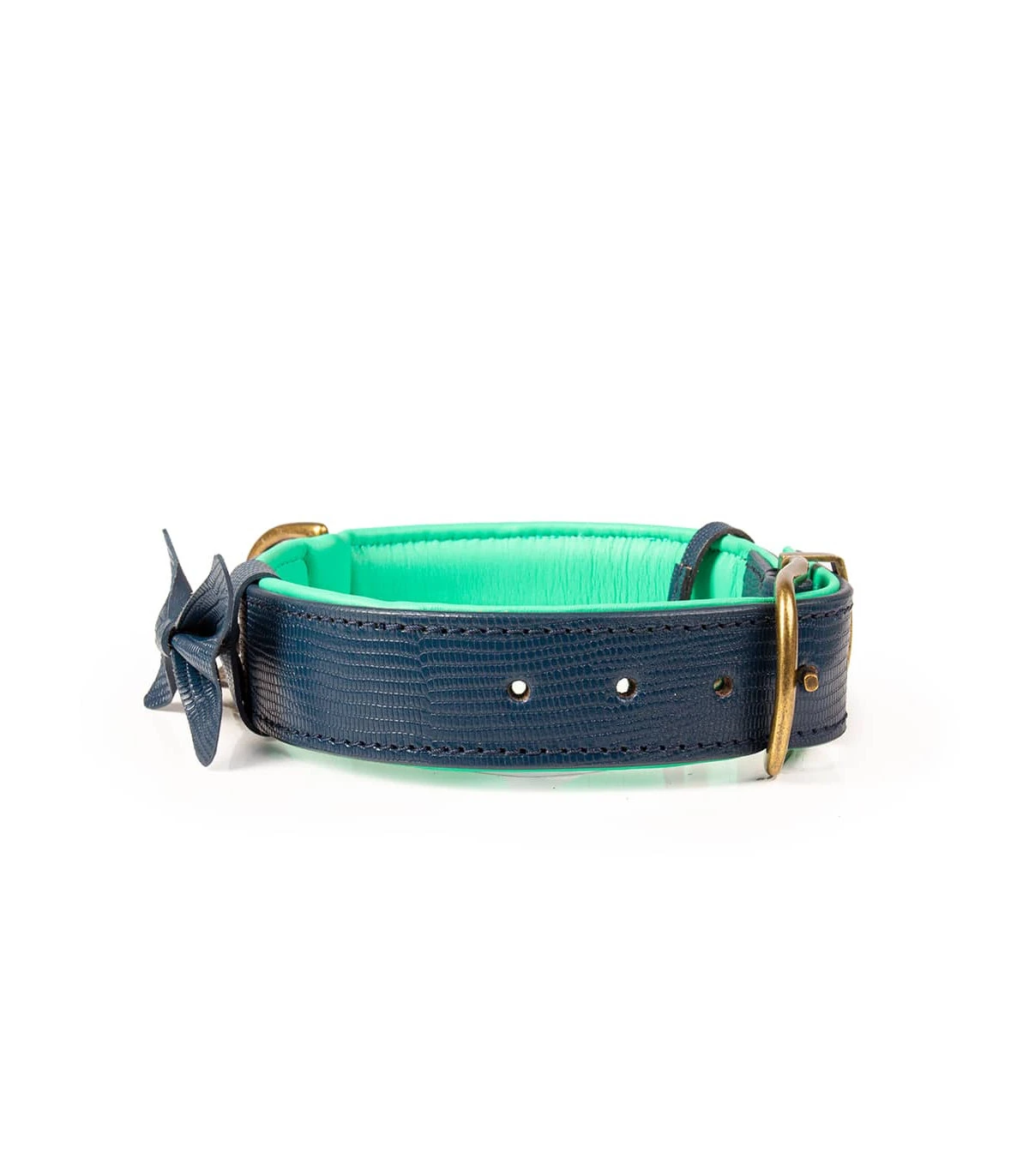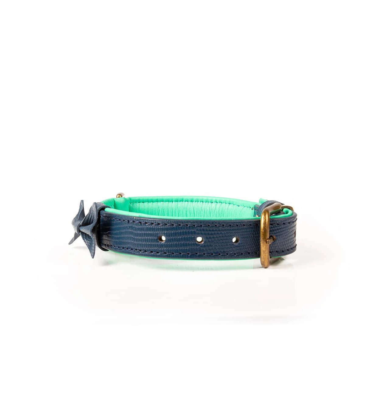 Collier en cuir bleu canard impréssion lézard avec noeud