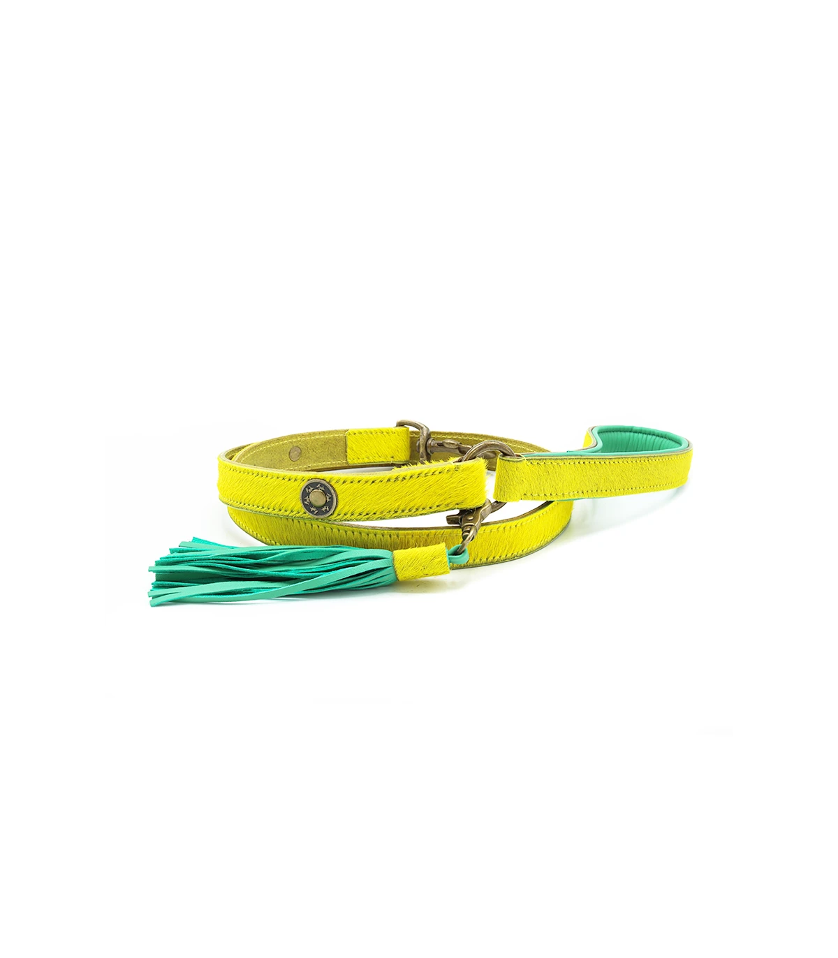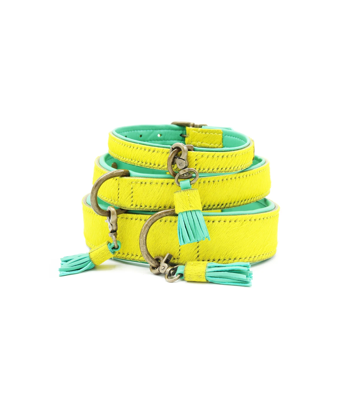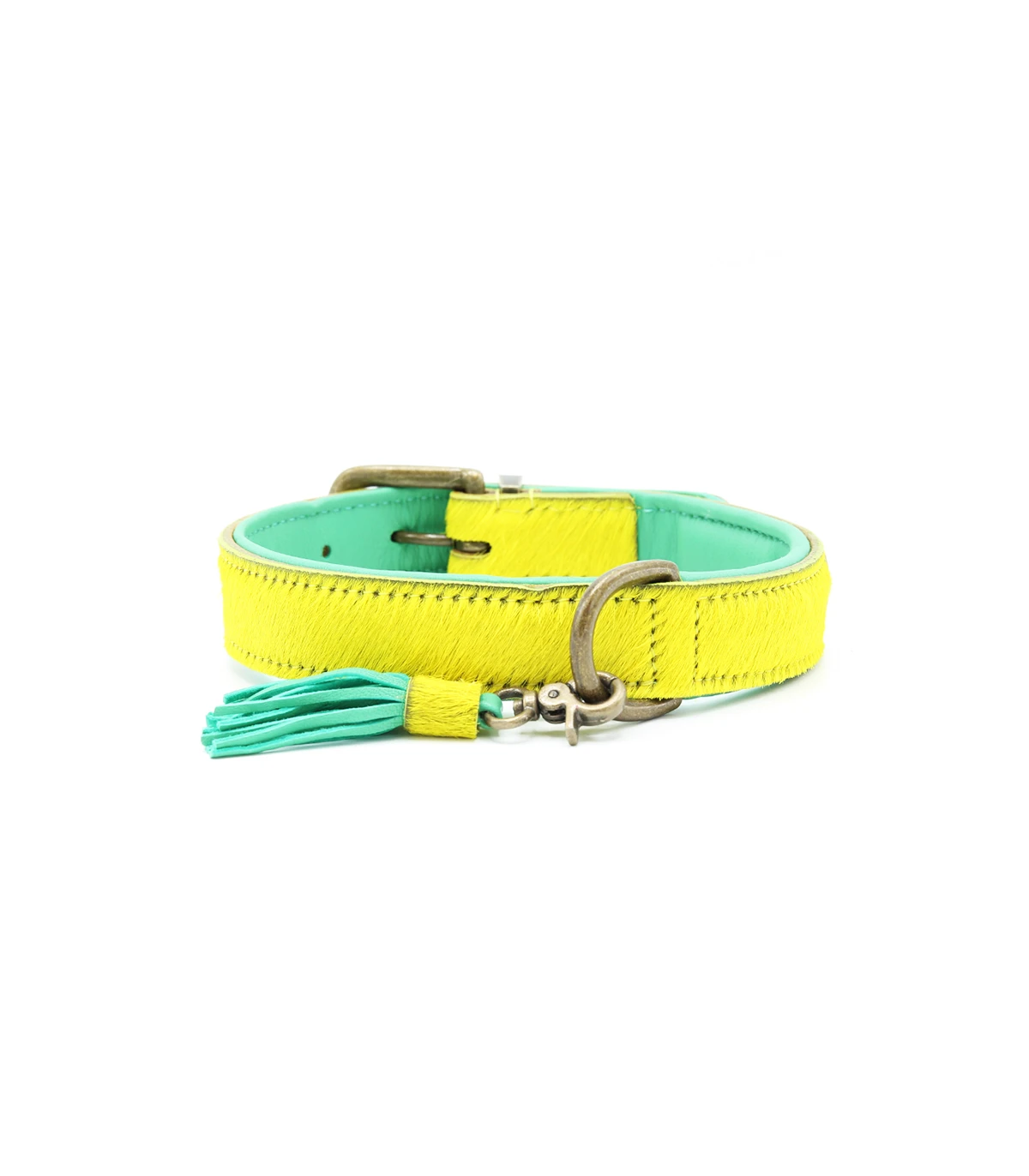 Collier en Cuir véritable fait Main, dessus en peau de chèvre teinté jaune.