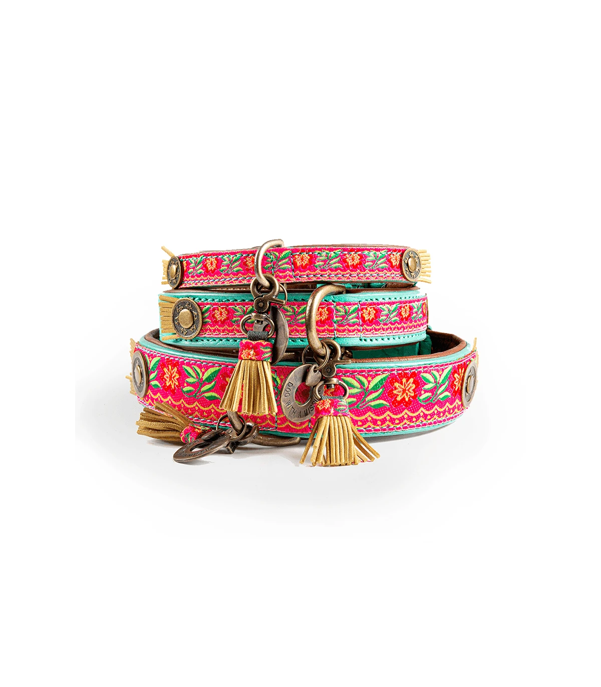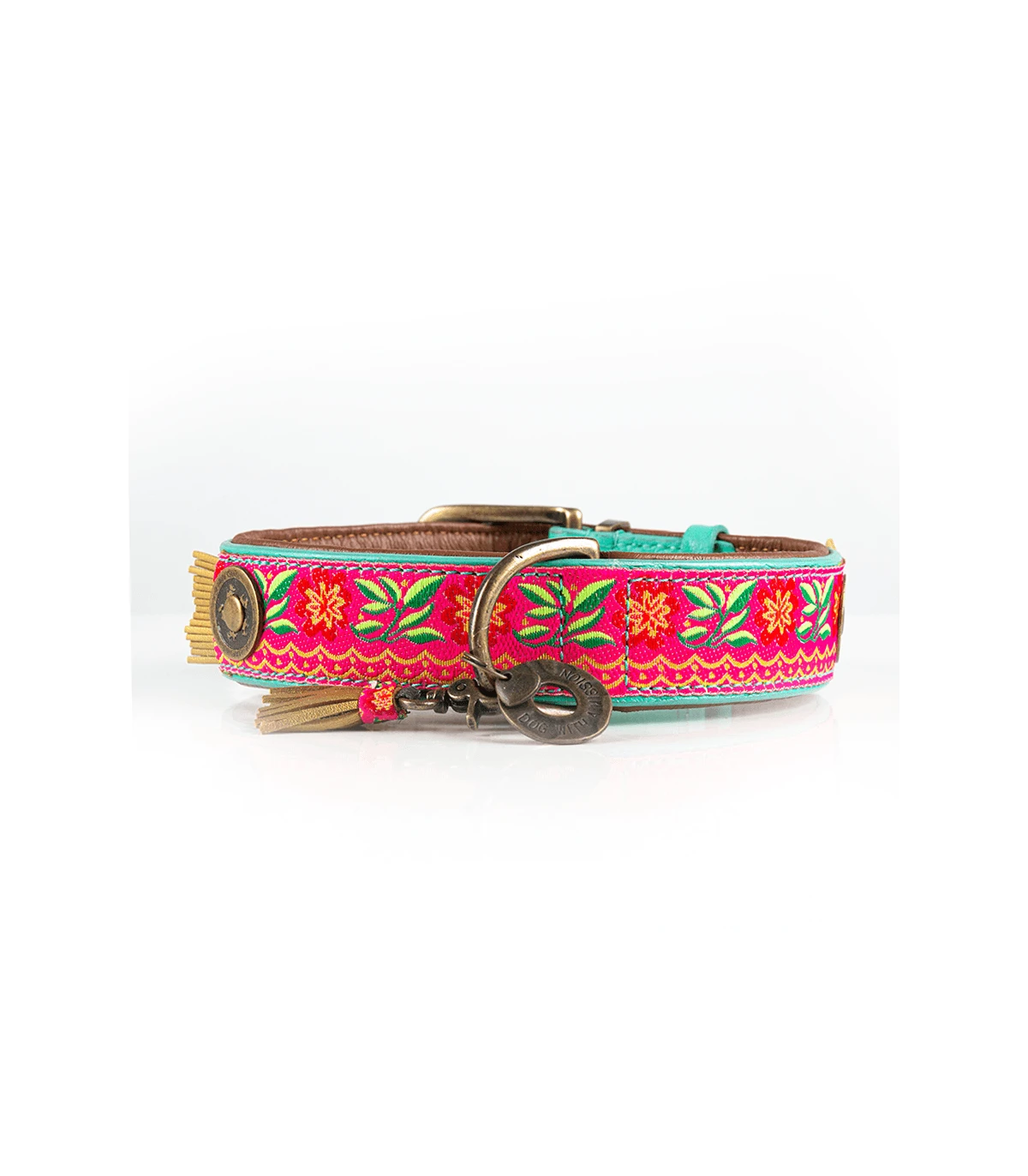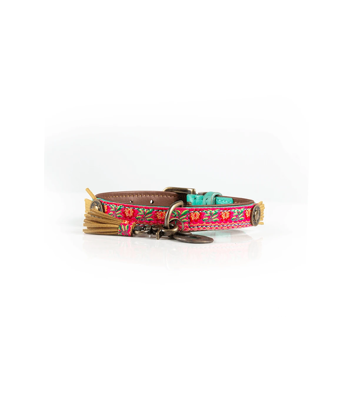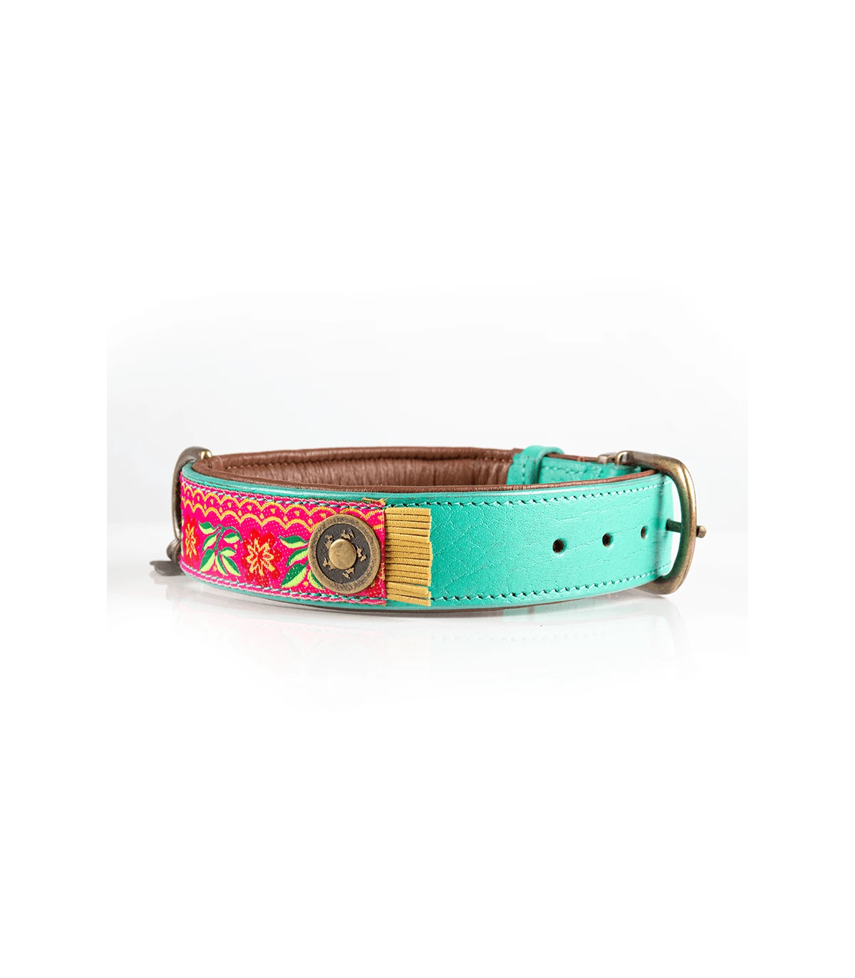 Collier en Cuir véritable fait Main, avec passementerie fleurie