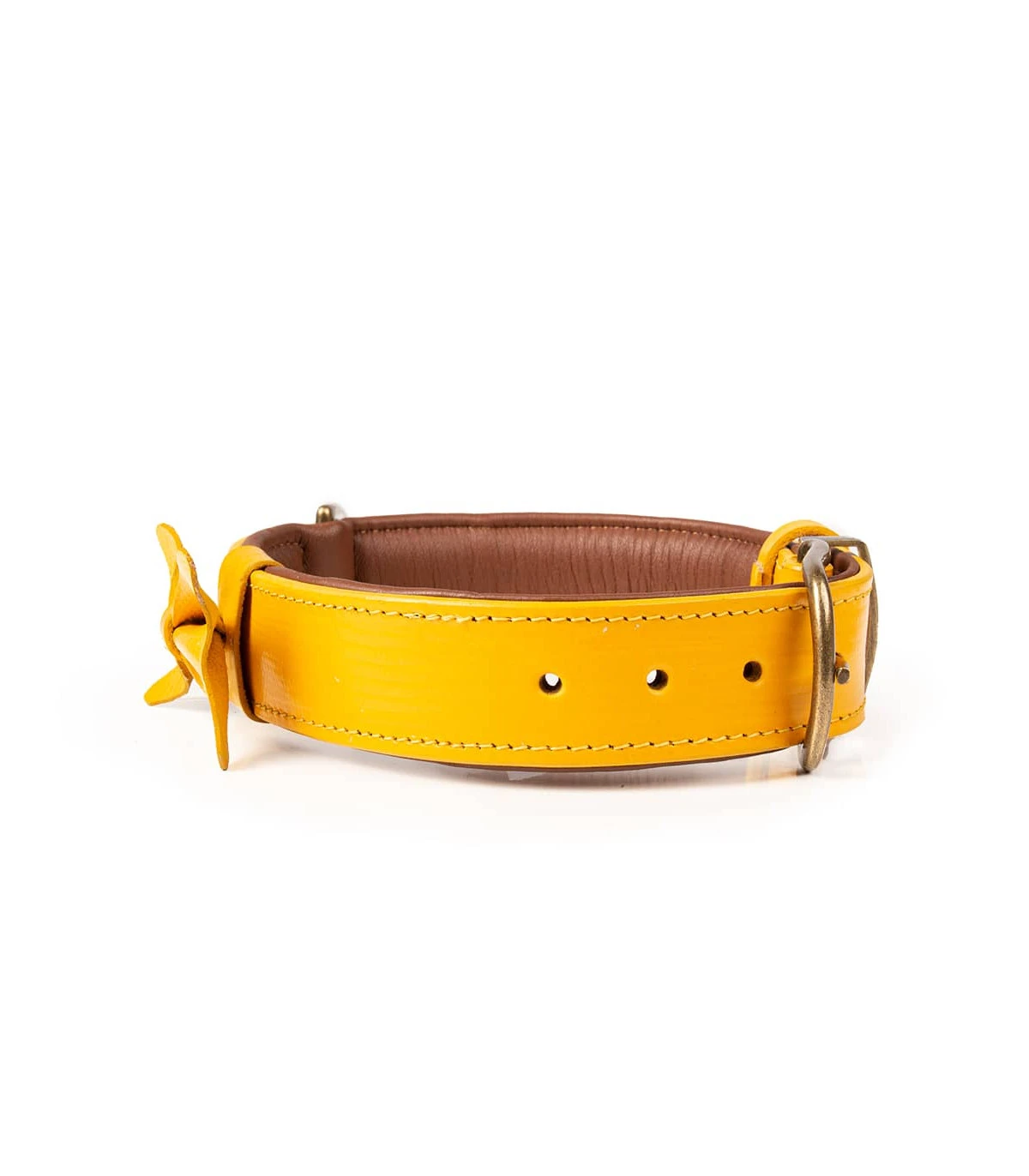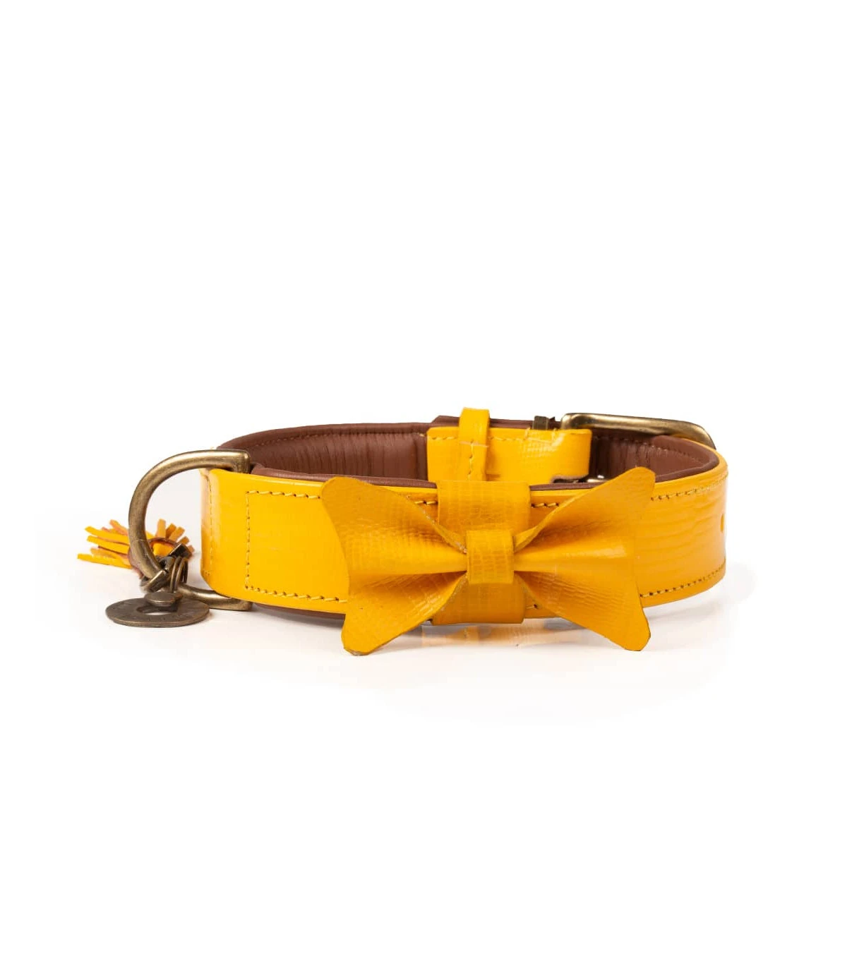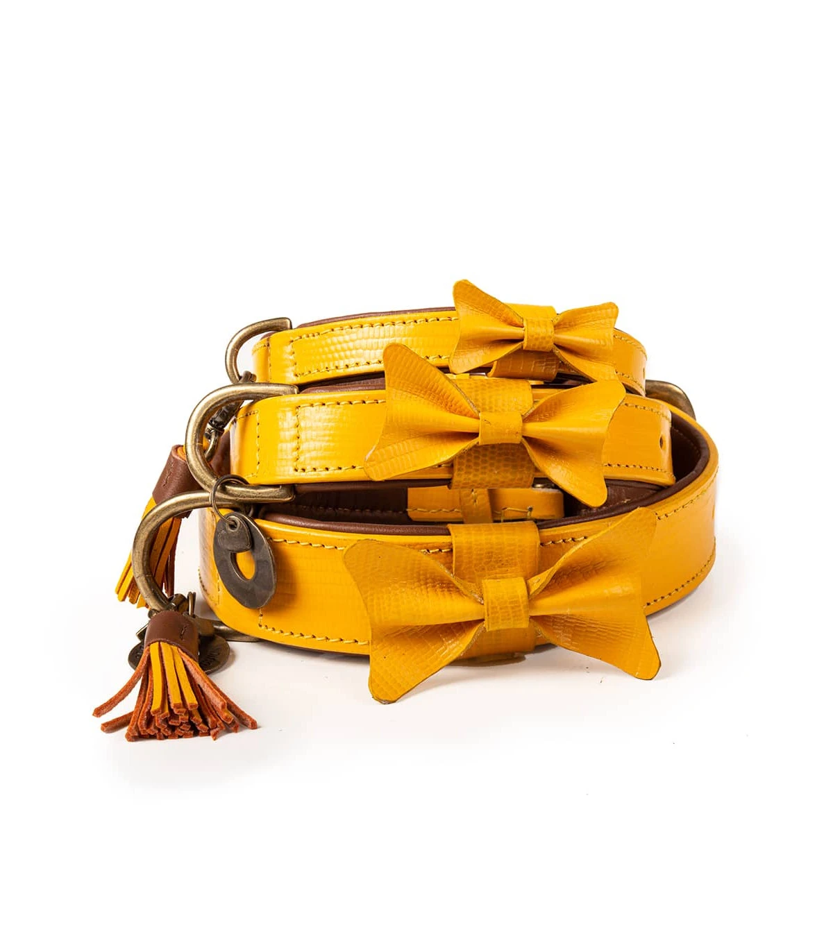 Collier en cuir jaune impréssion lézard avec noeud