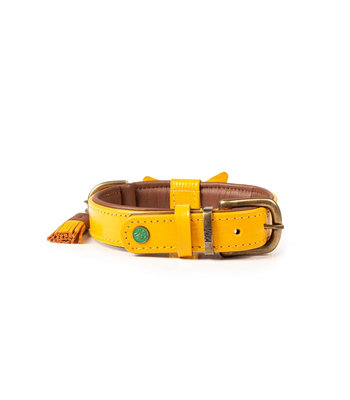 Pompon amovible en cuir fixer sur l’anneau d’attache.