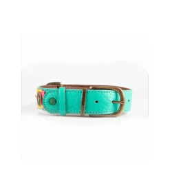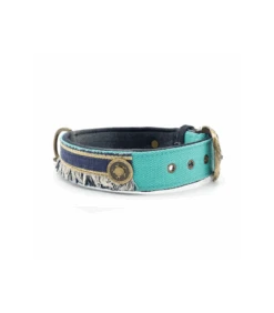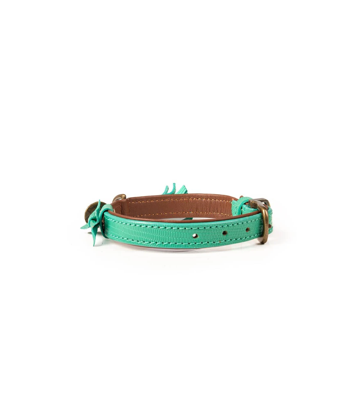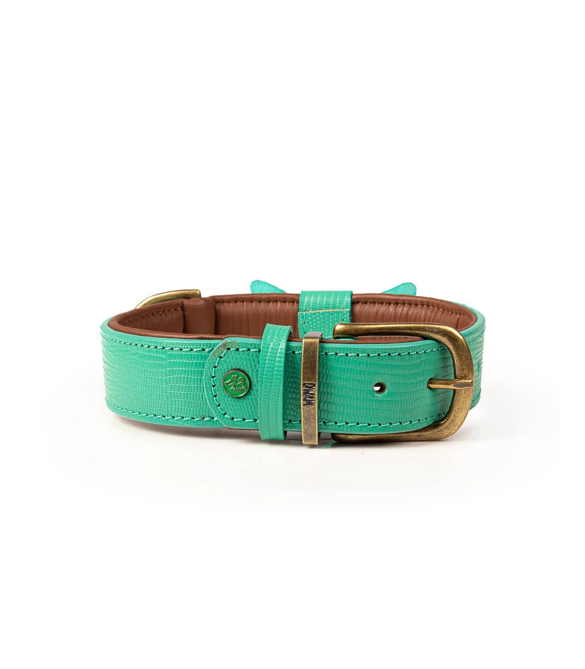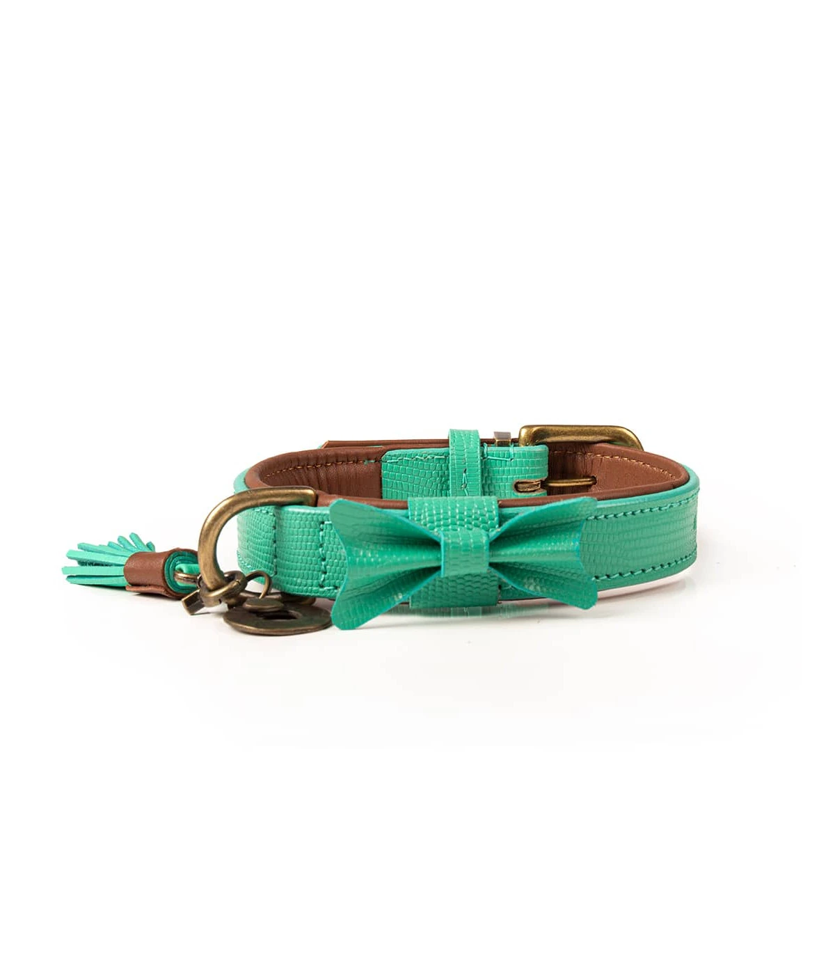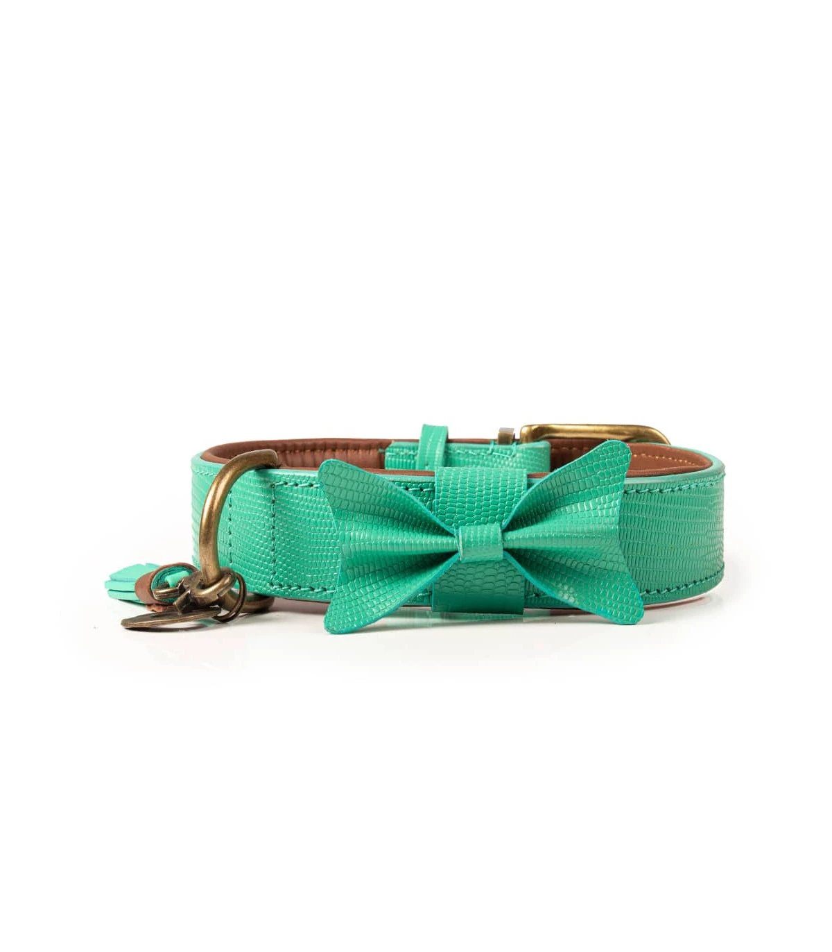 Collier en cuir vert d’eau impréssion lézard avec noeud