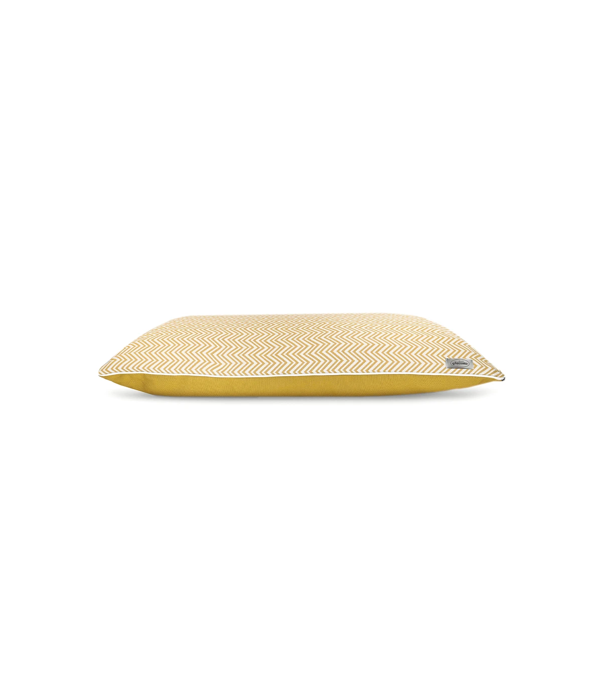 Coussin imprimé jaune et blanc double face ( une face jaune, une face imprimé zig zag )