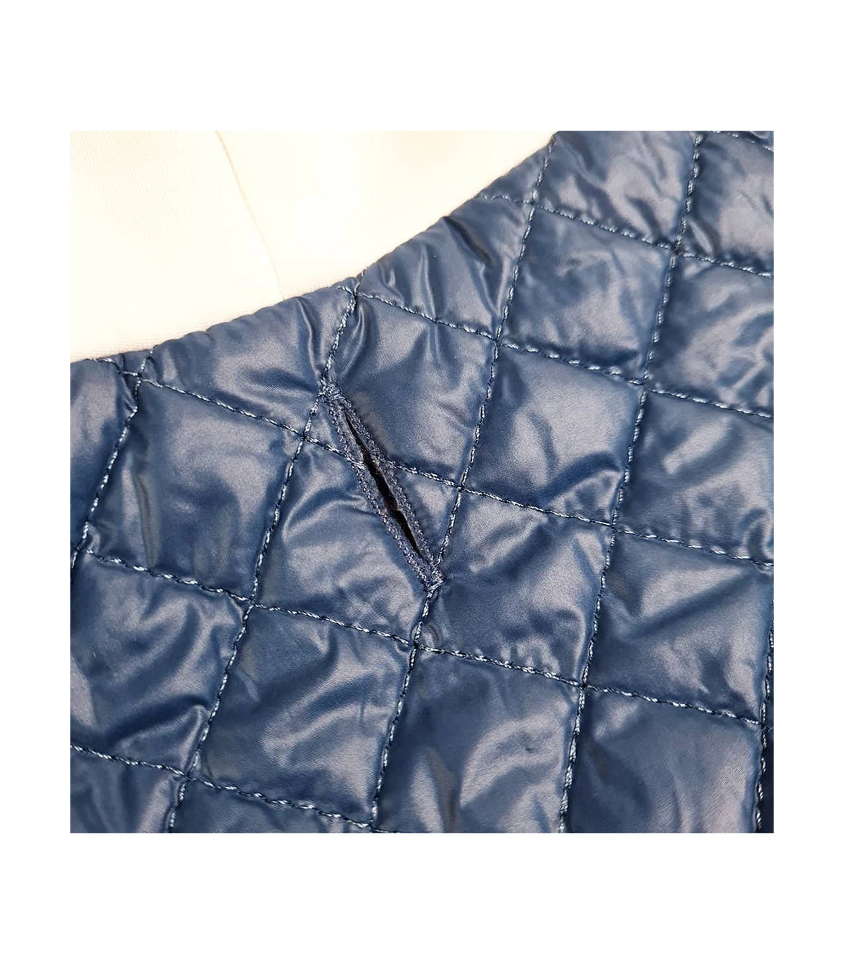 Doudoune matelassé bleu avec capuche blanche