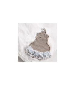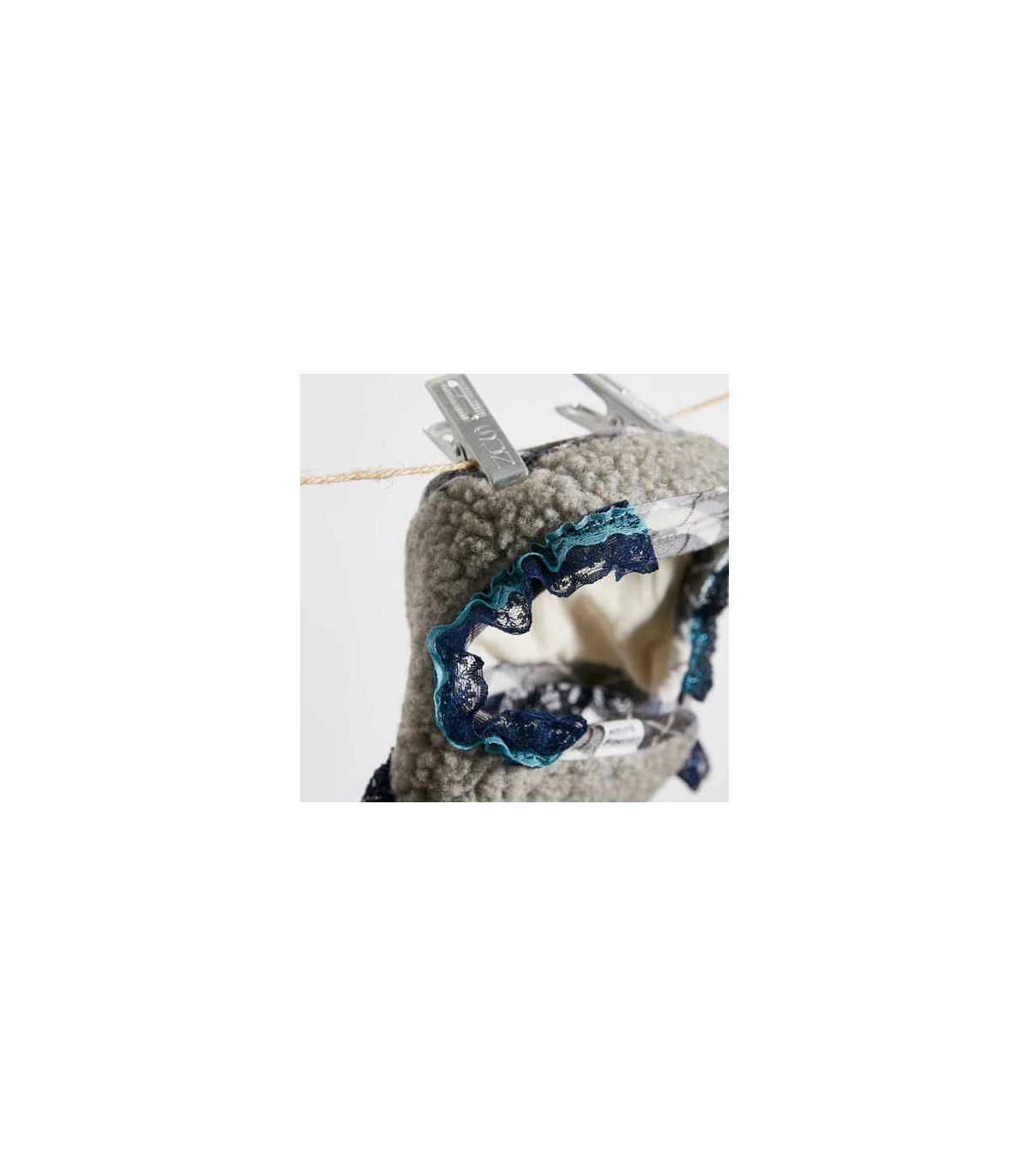 Ensemble de harnais veste souple en bouclette grise et dentelle bleu nuit avec sa laisse en simili cuir beige
