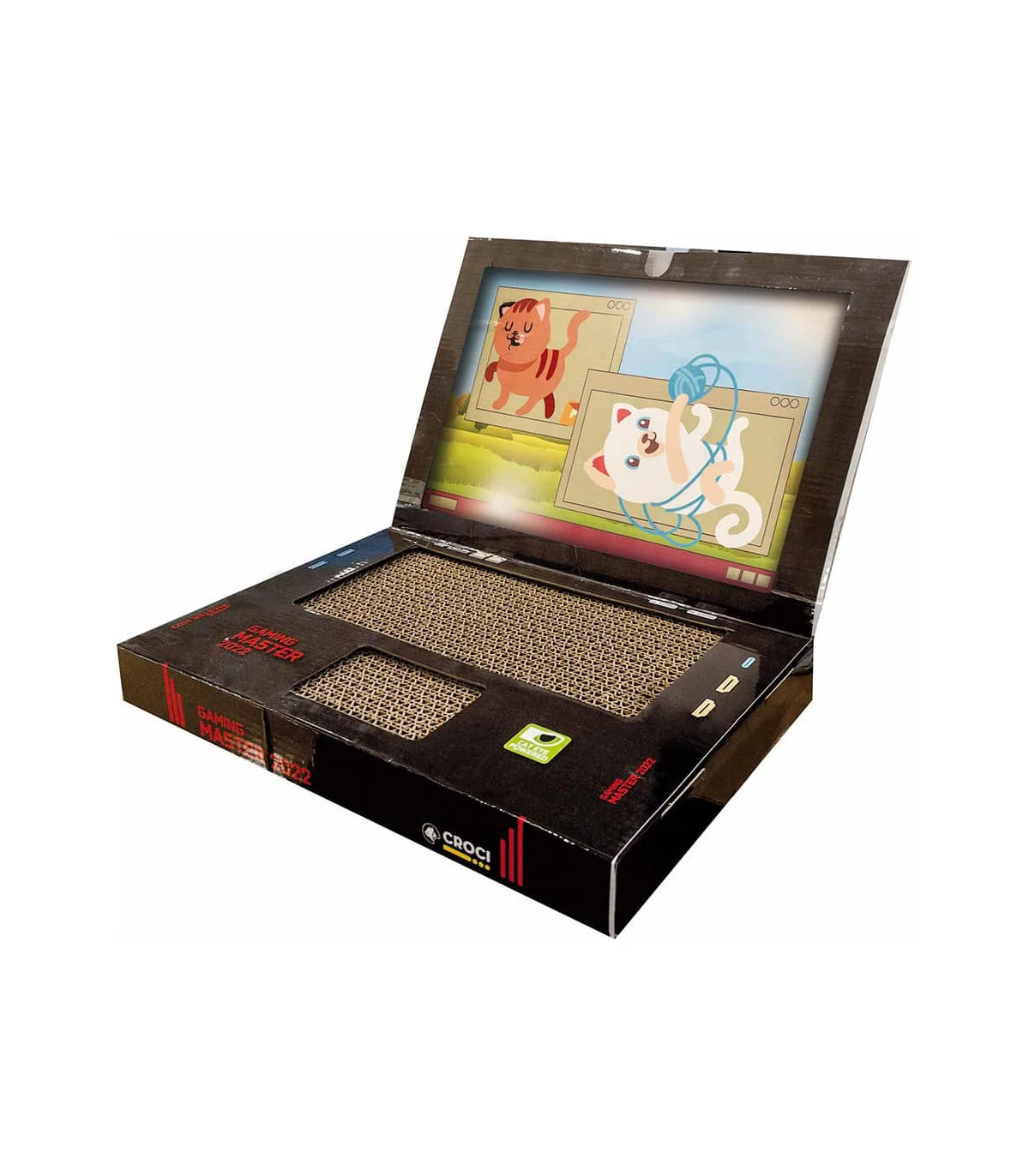 Griffoir pour chat Ordinateur en carton avec dessins reproduisant un jeu