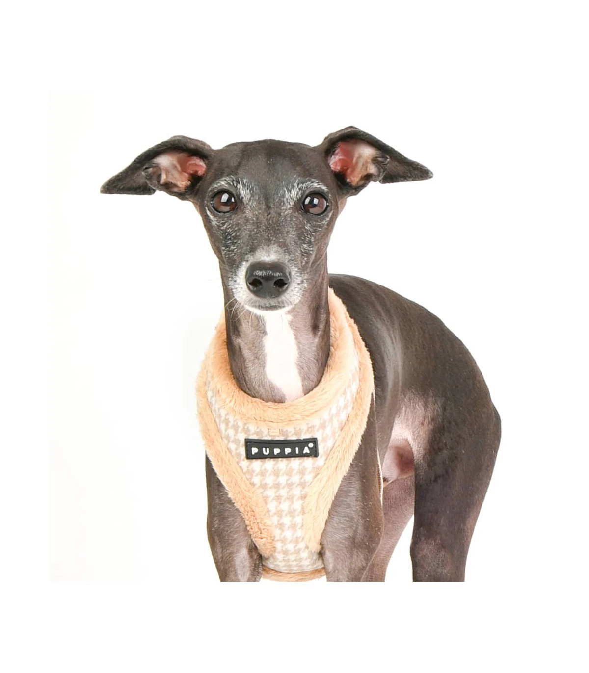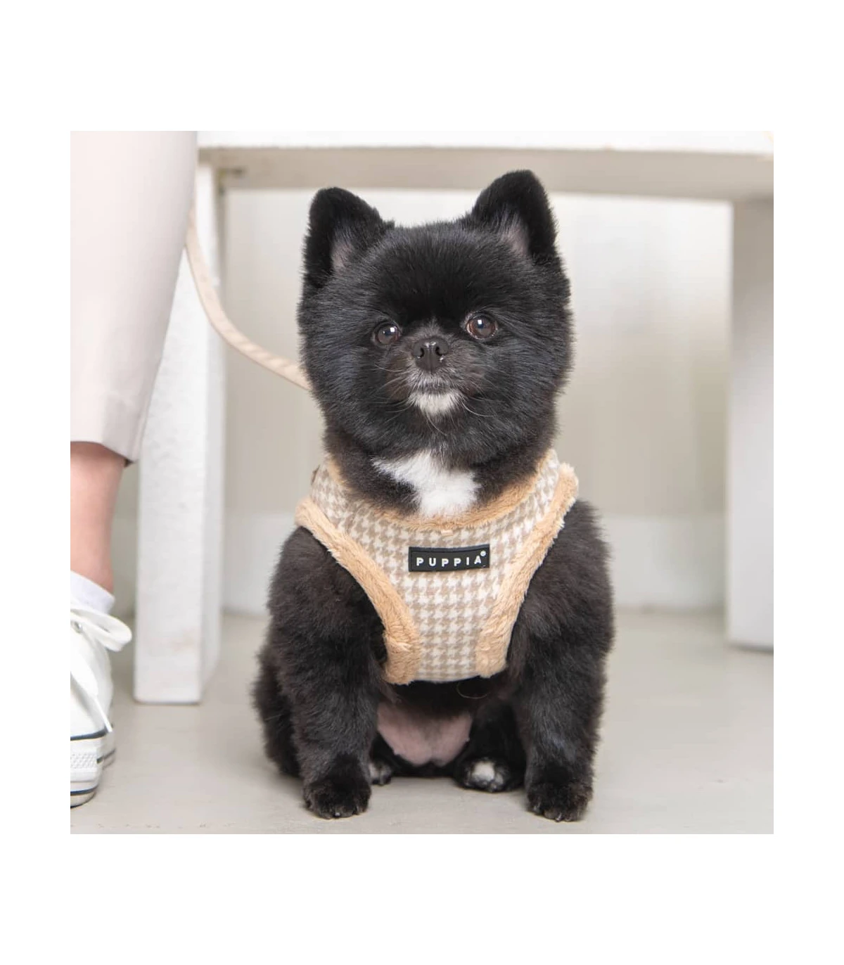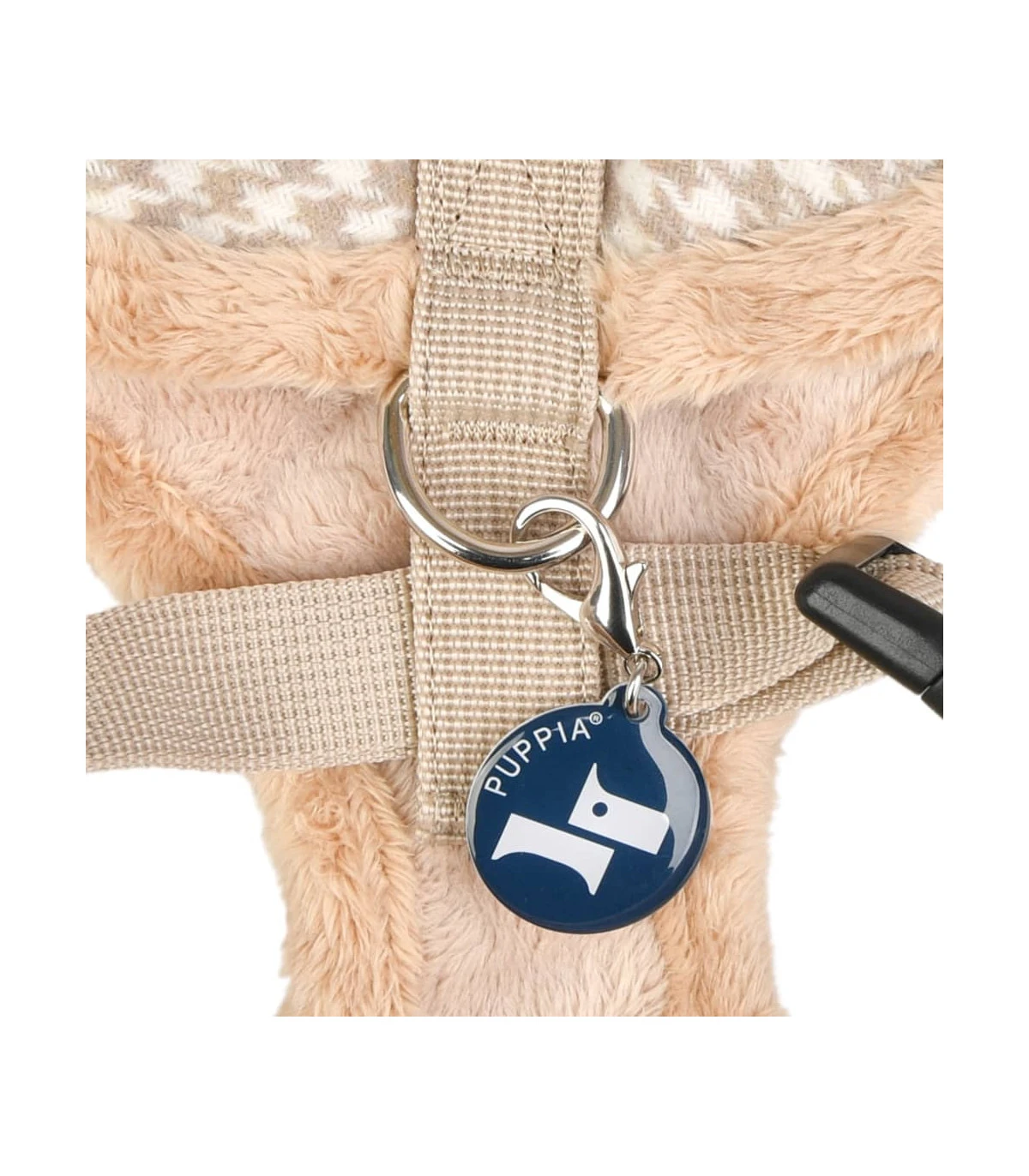Harnais fourré en tissu imprimé vichy beige et blanc
