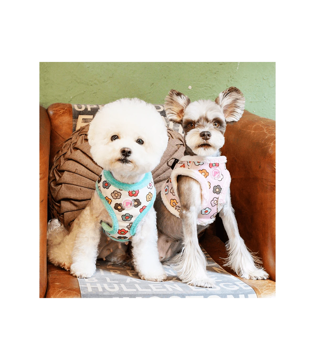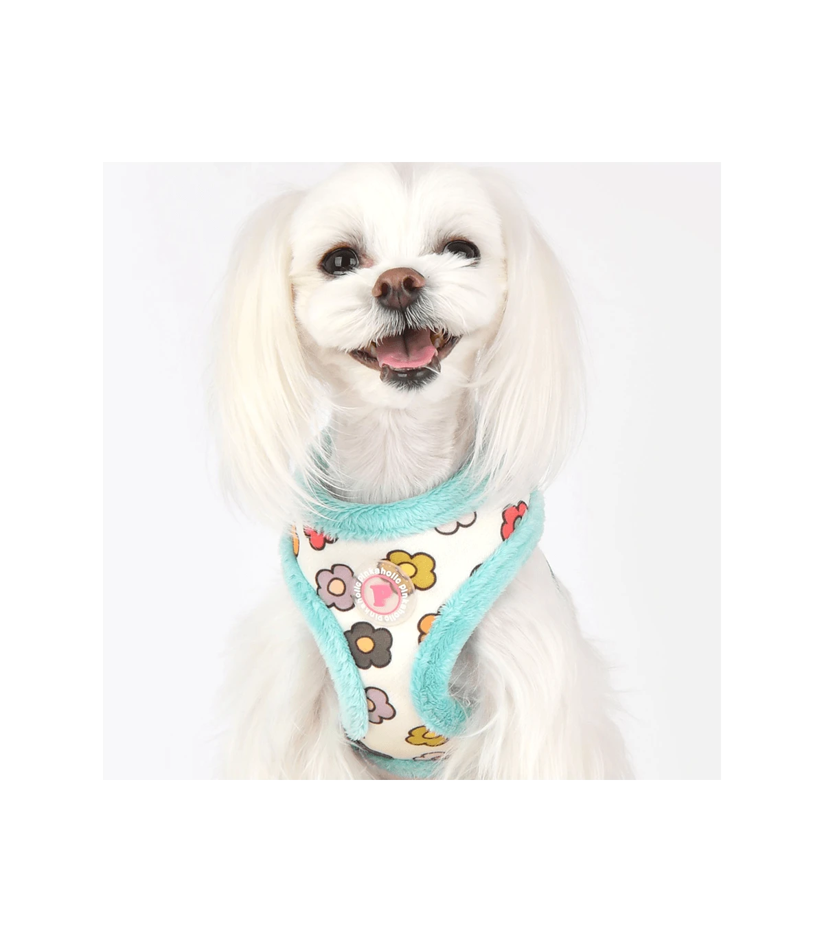 Harnais Fourré Bleu Turquoise motif Année 70.