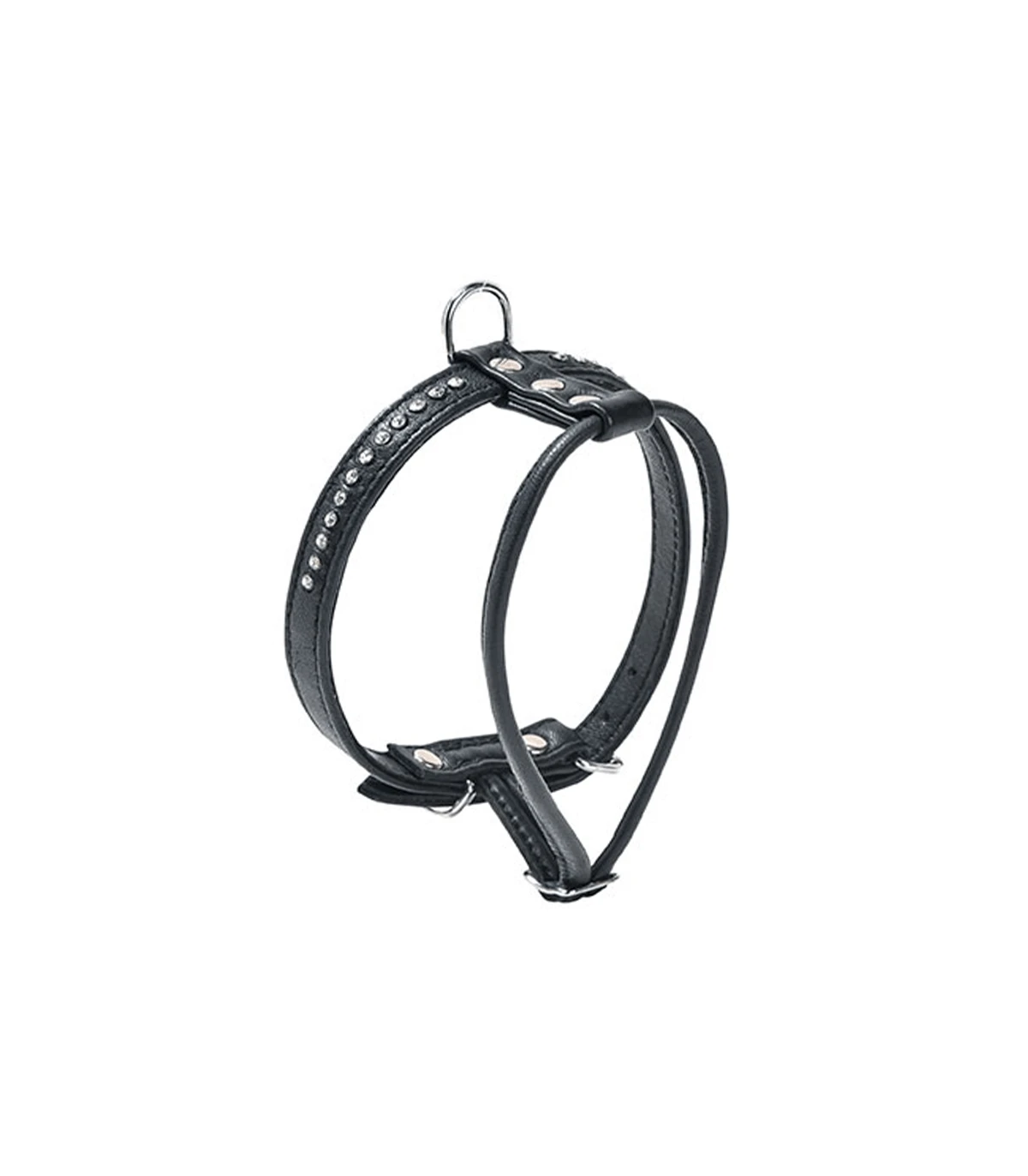 Harnais en cuir Noir souple, Orné d’une rangée de strass Blanc