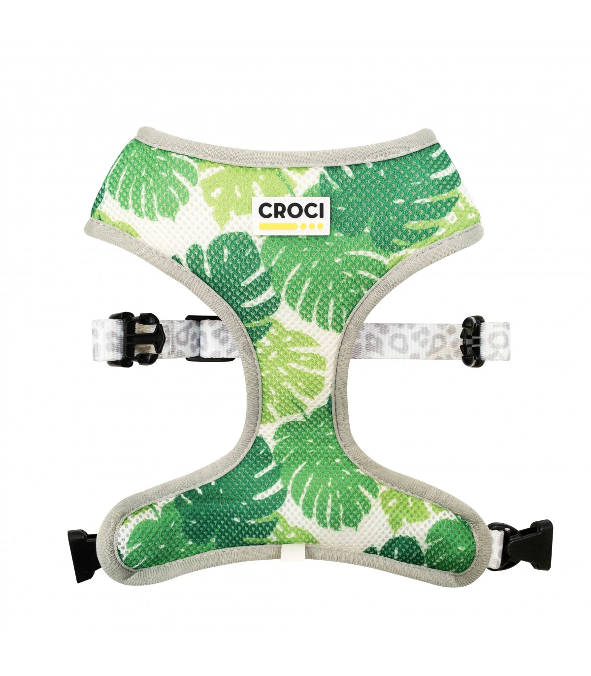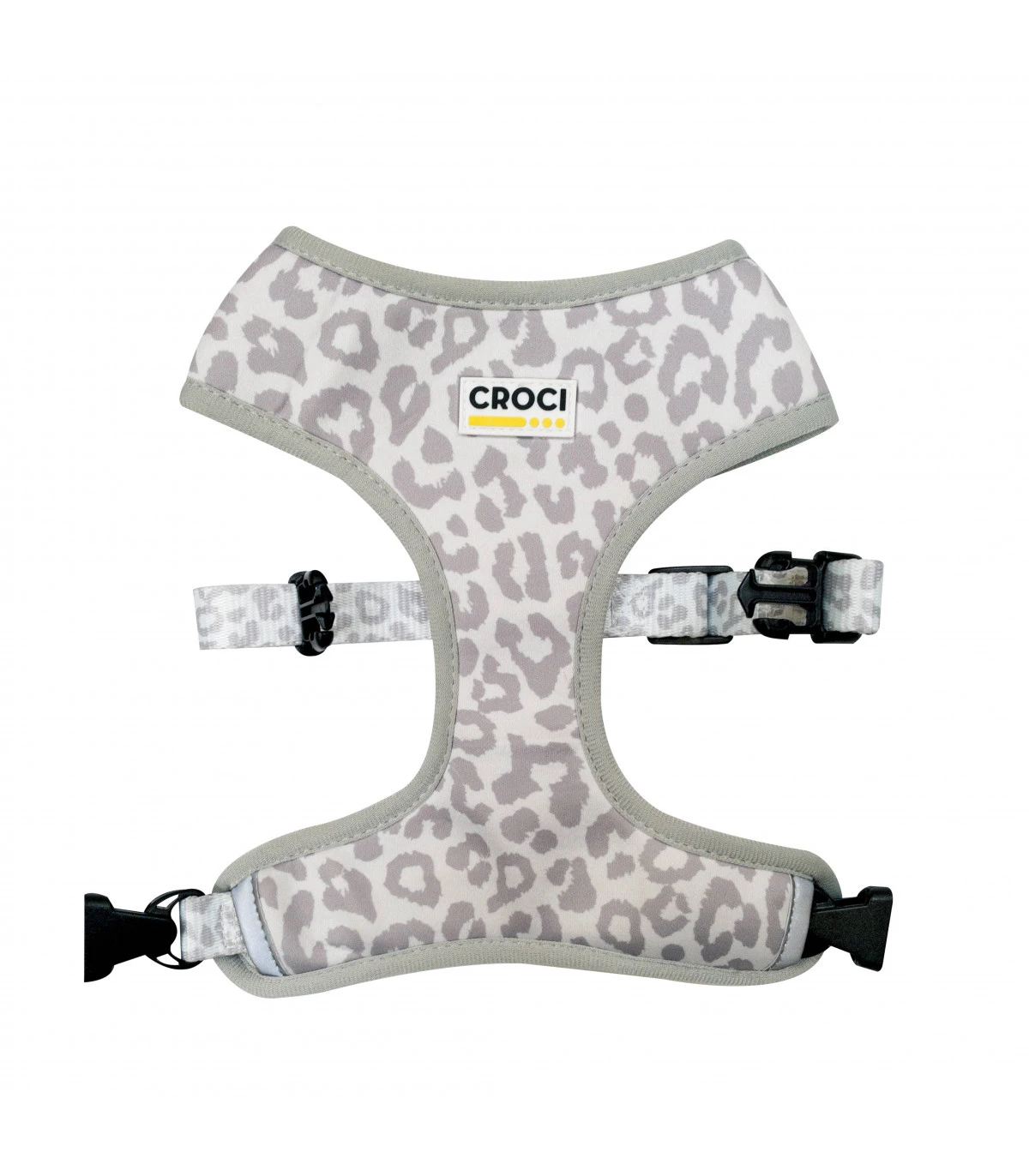 Harnais en tissu réversible imprimé léopard beige ( la face fleurie est en matière aéré )