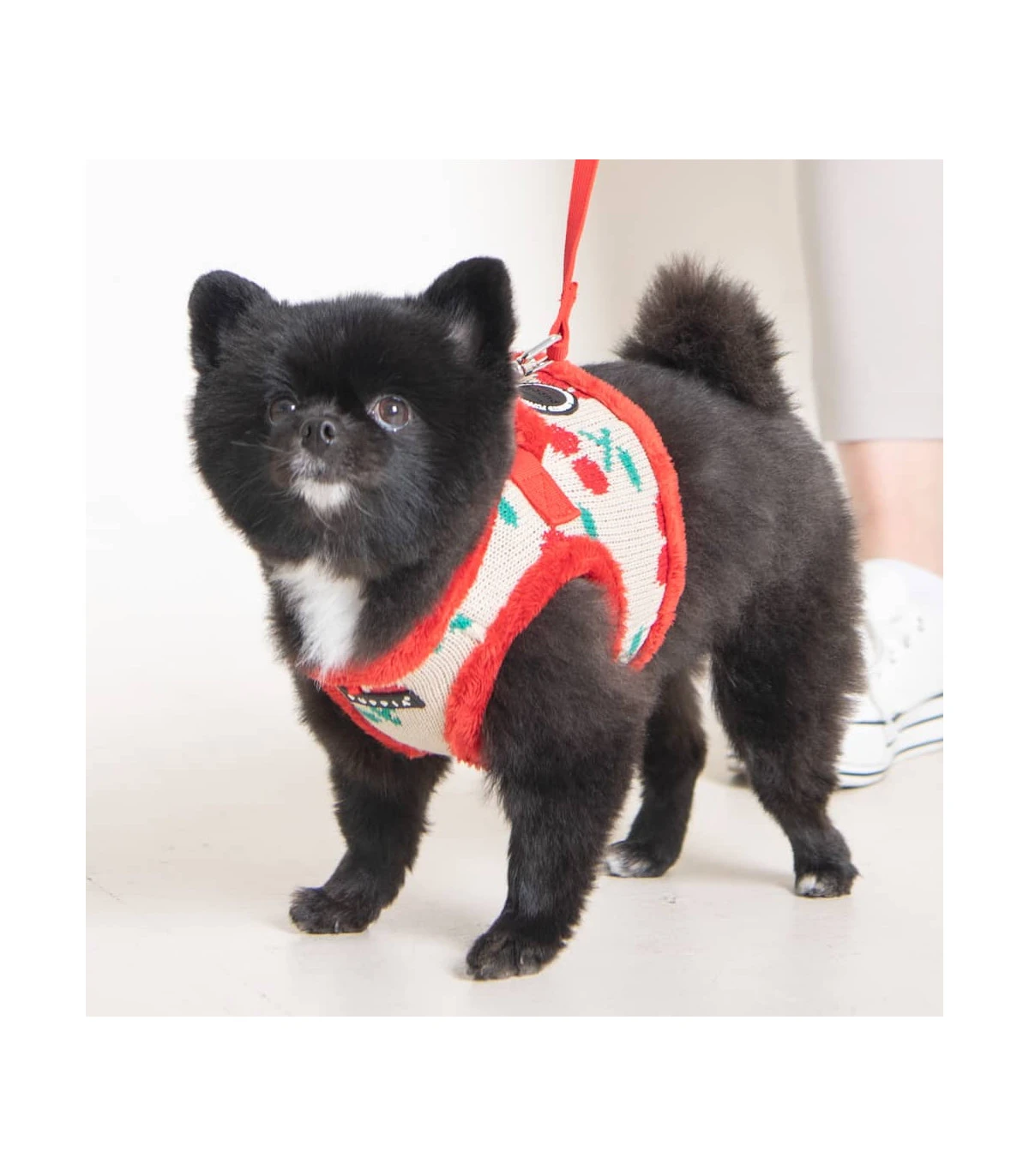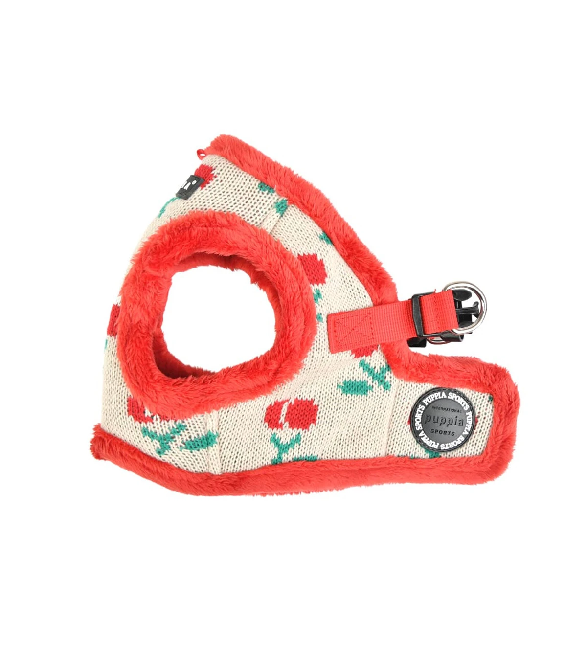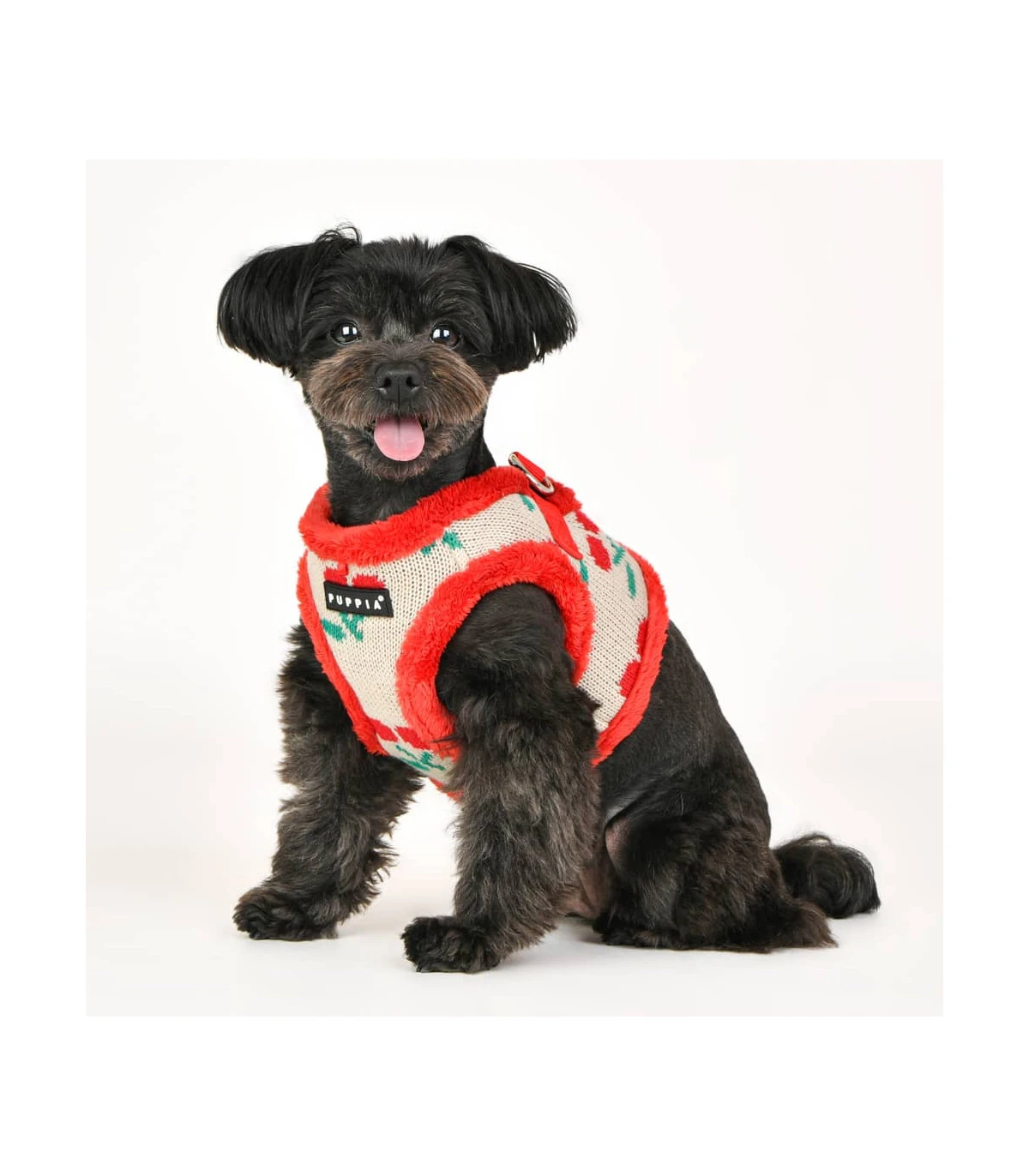 Harnais Veste fourré en maille beige ,impression cerise rouge