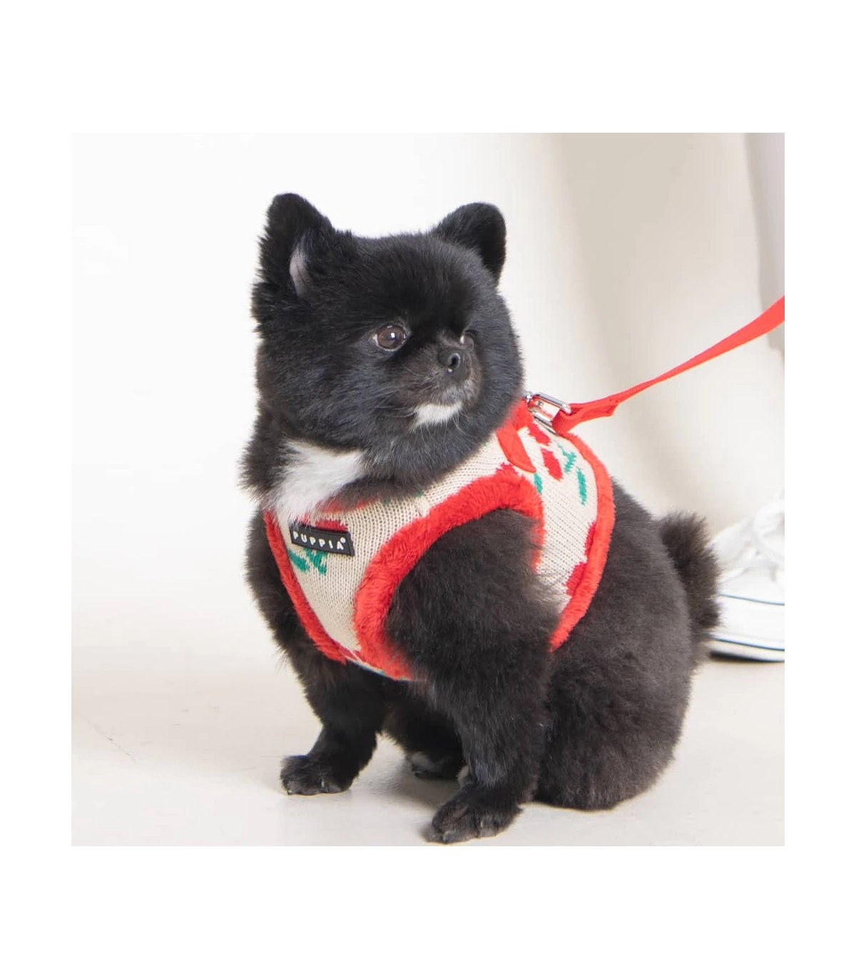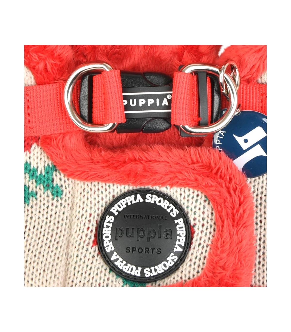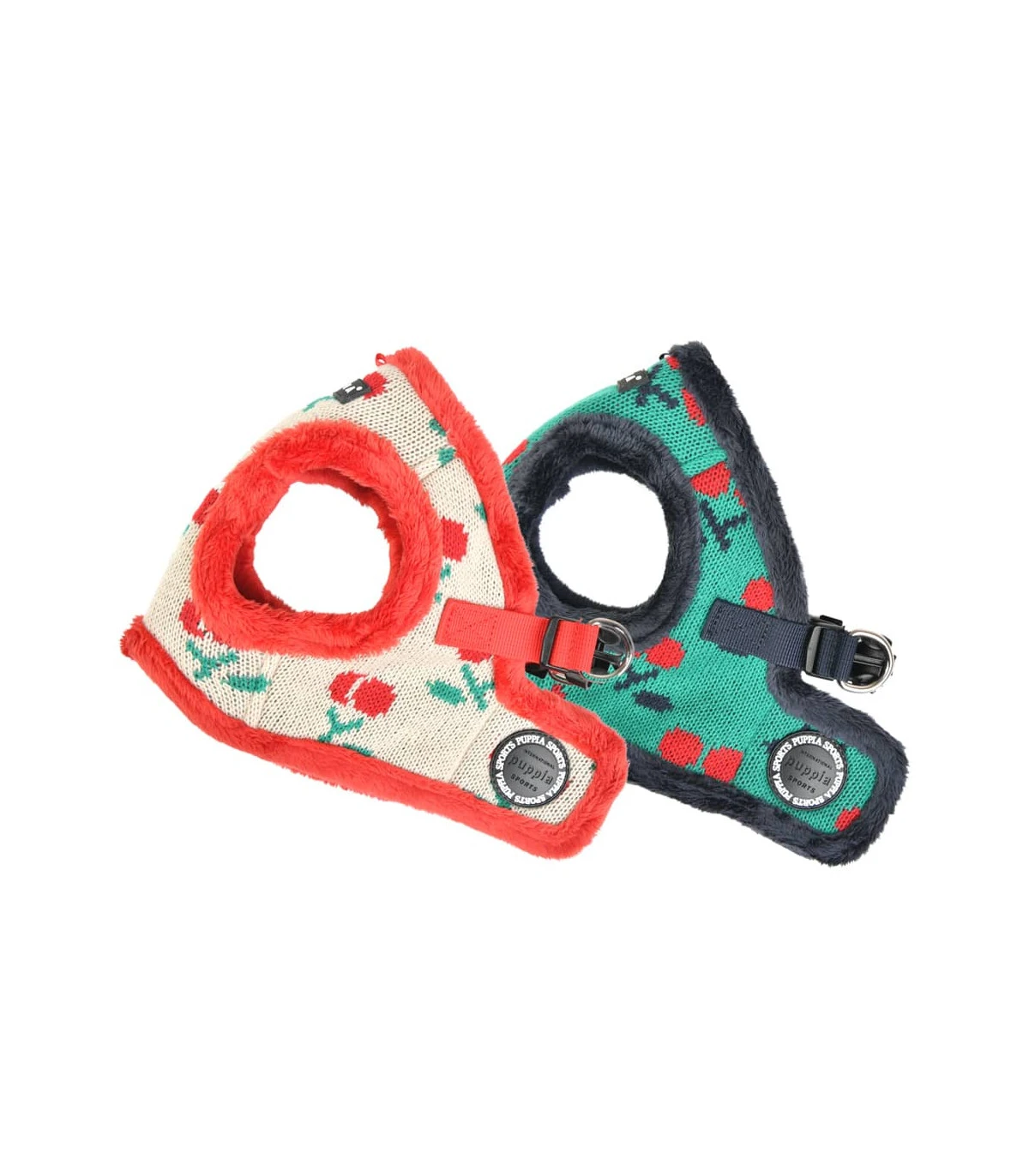 Harnais Veste fourré en maille beige ,impression cerise rouge