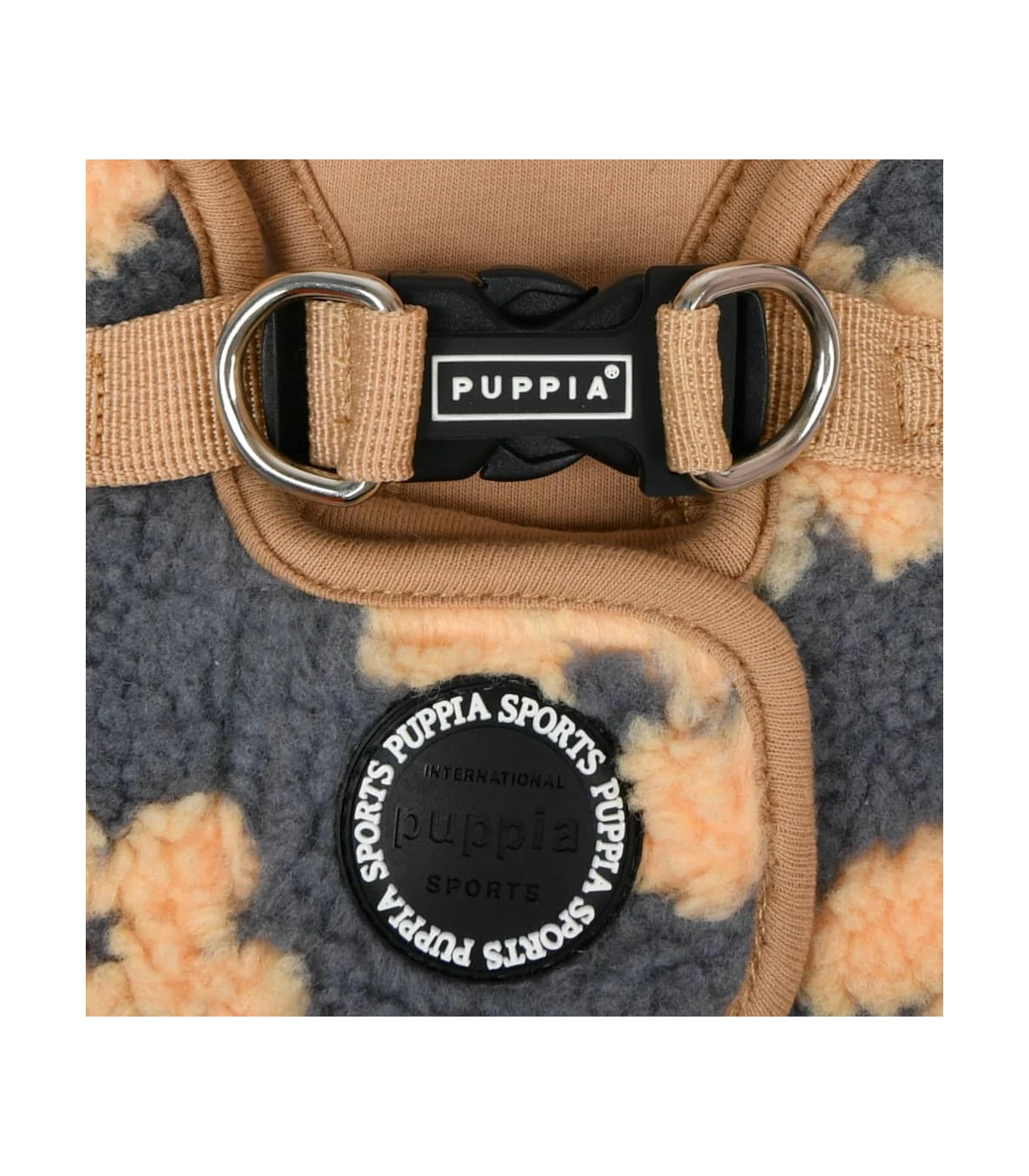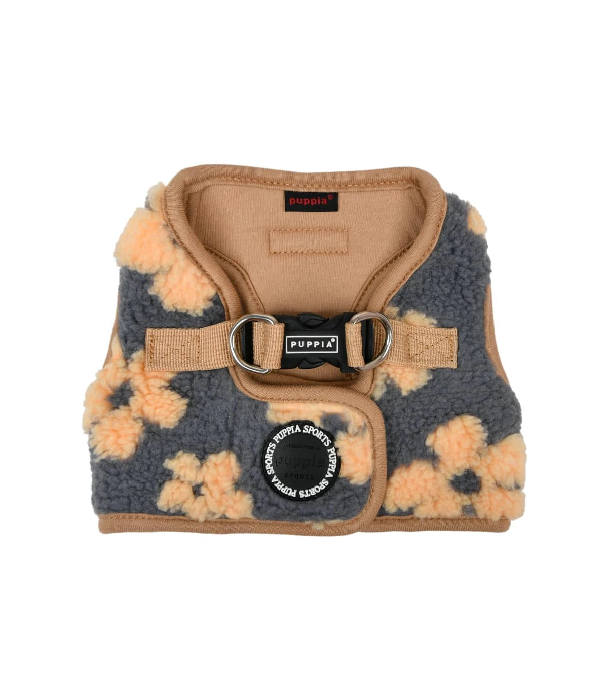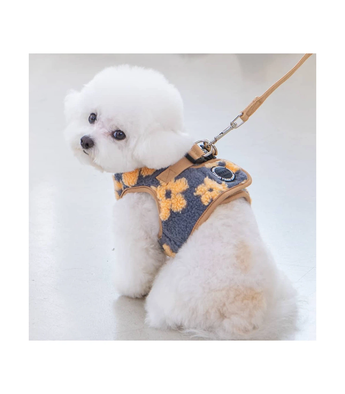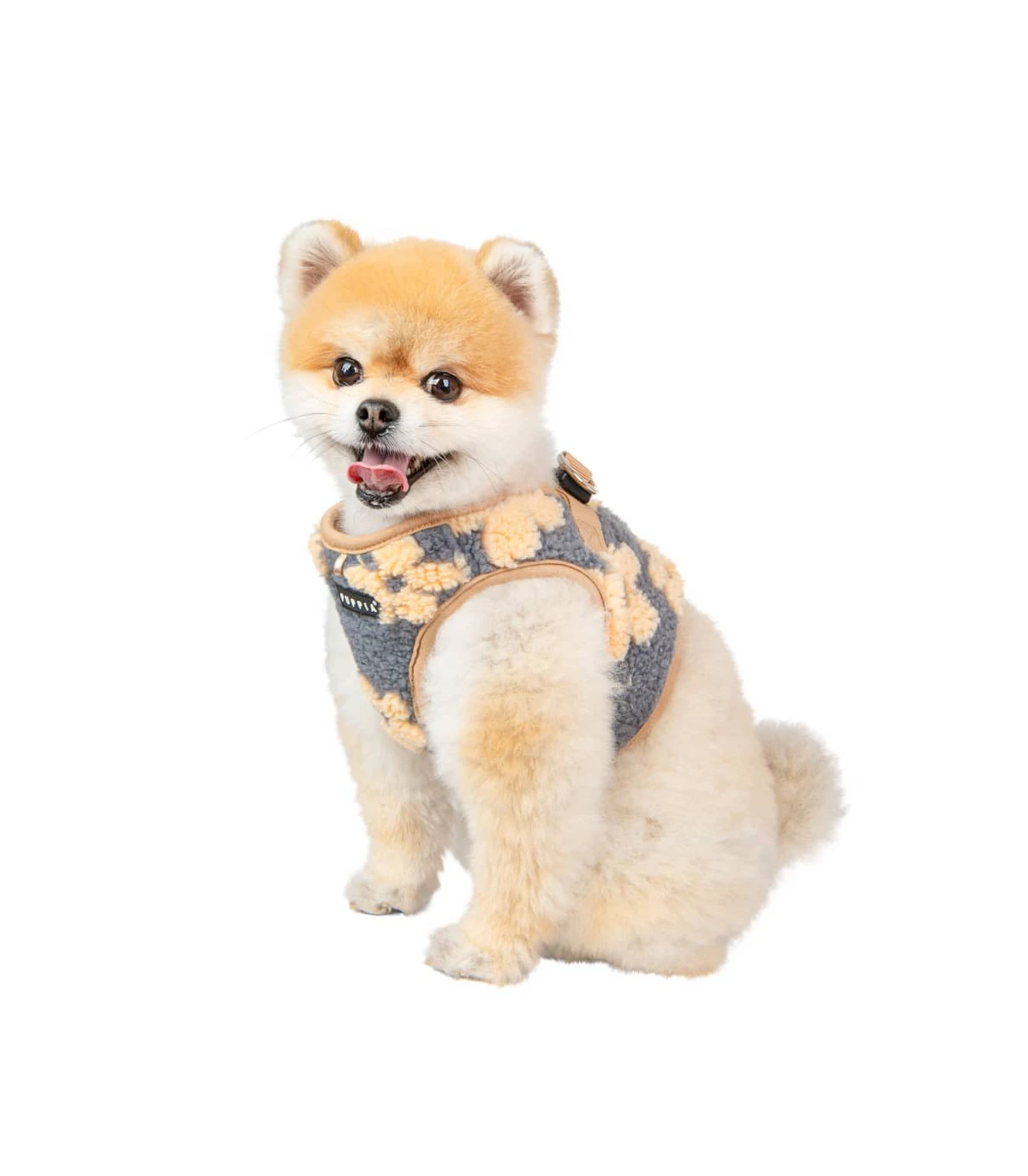Harnais Veste en tissu façon peau de mouton imprimé Fleurs Grises et Beige