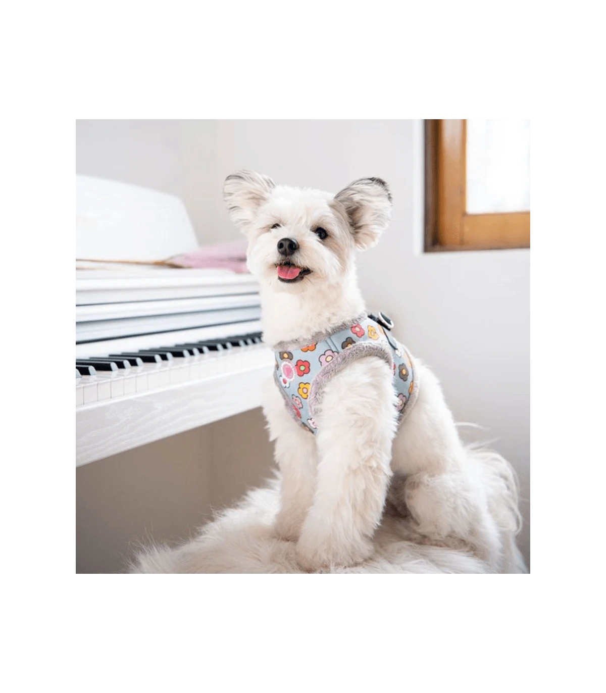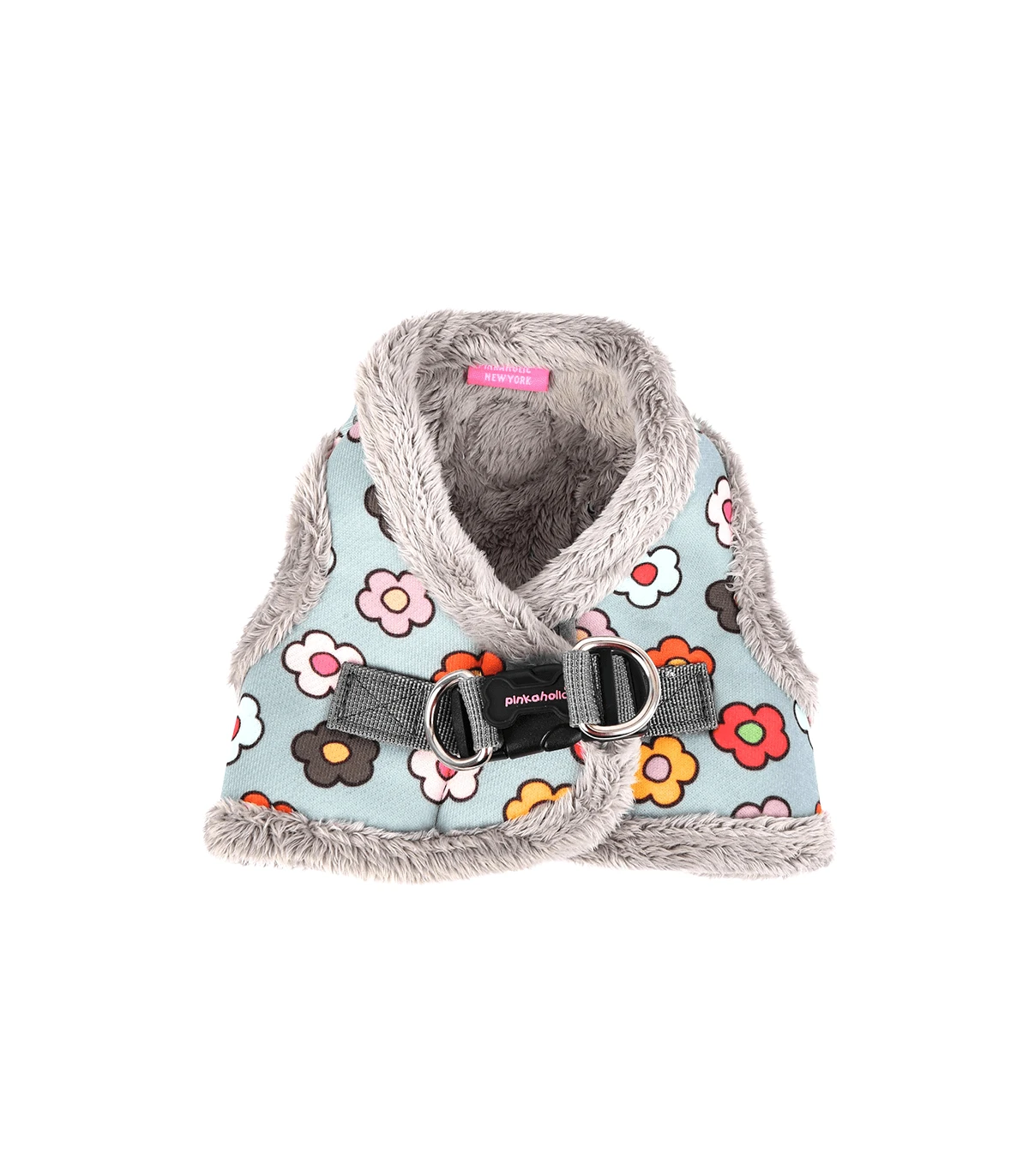 Harnais Veste Fourré Gris au motif Hippie.