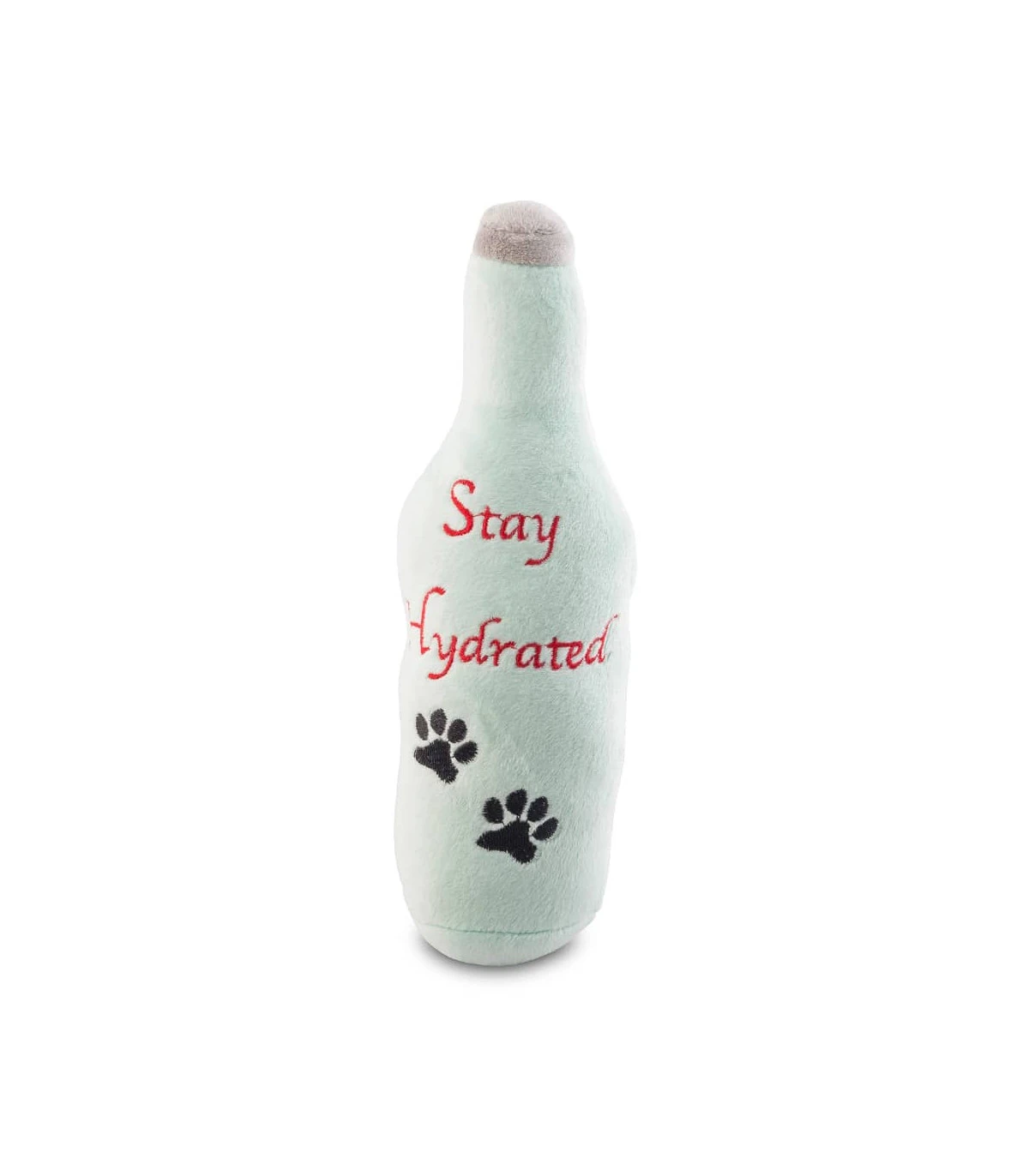 Jouet en peluche bouteille d’eau avec inscription Topo Chihuahua parodié d’une marque d’eau Minérale Mexicaine