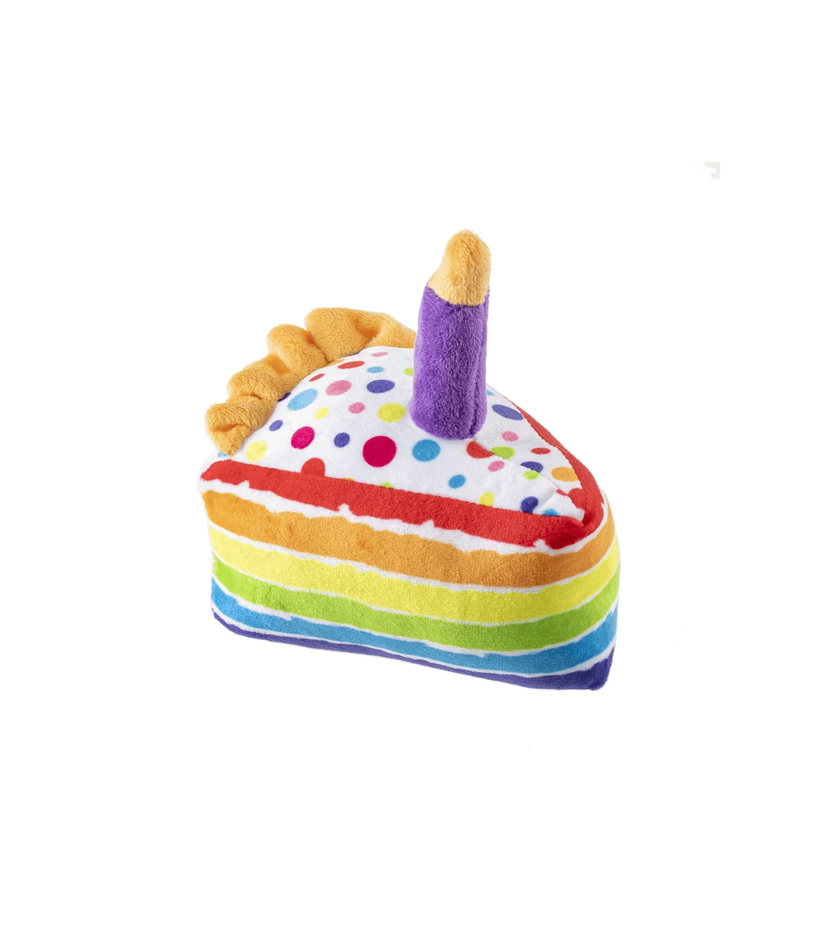 Jouet part de gâteau avec bougie.
