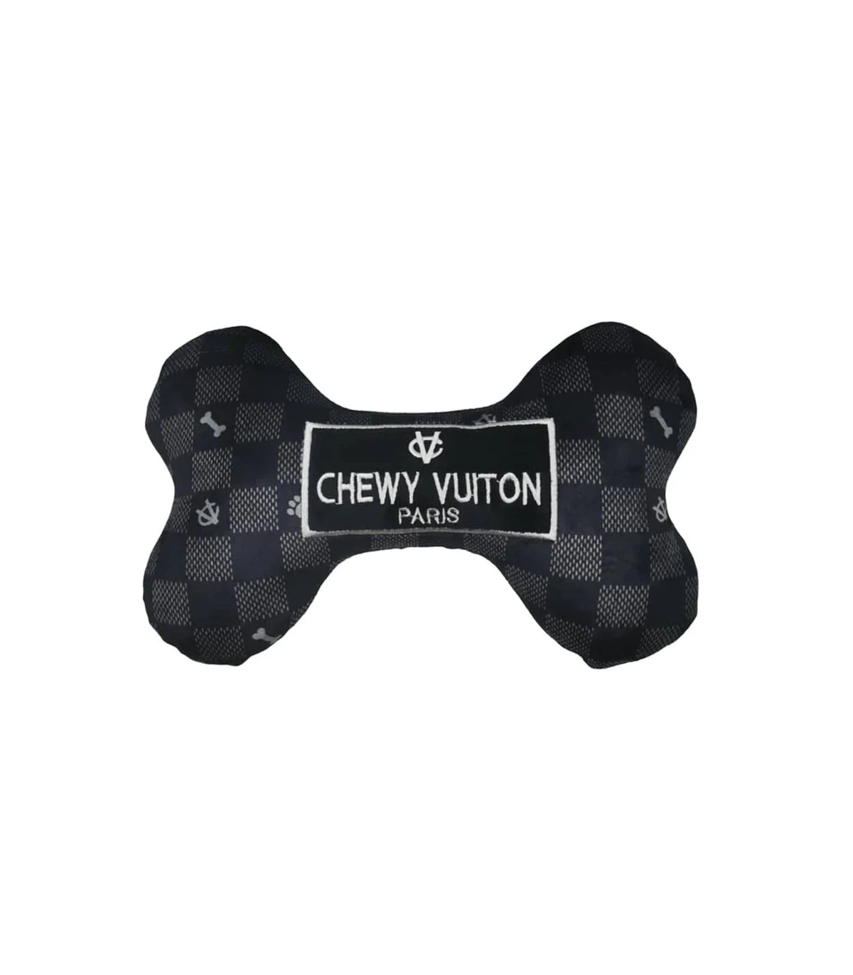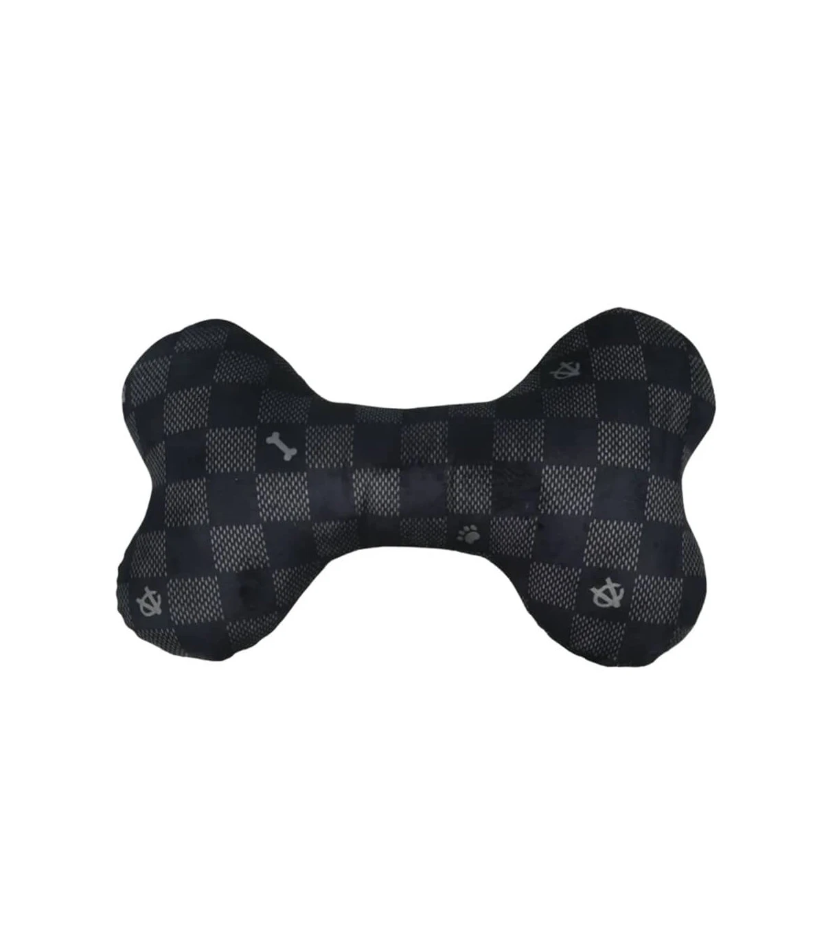 Jouet Os en peluche à damier, parodié de la célèbre marque de prêt à porter de Luxe