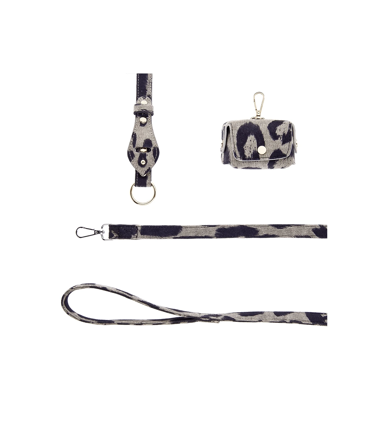 Complétez le look avec la laisse, le collier et la pochette ramasse crotte assortie !