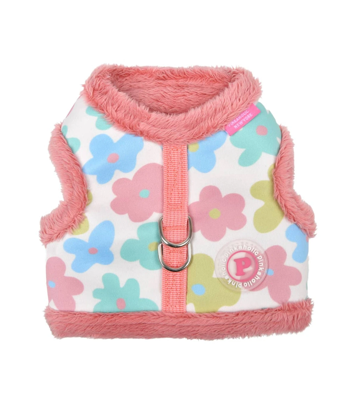 Harnais Veste intérieur fourré et dessus imprimé à petites fleurs Rose façon Année 70