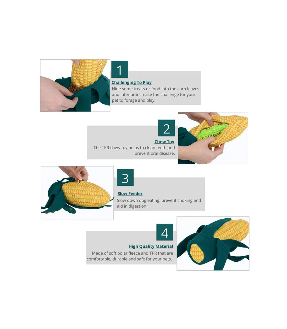Jouet bâtonnet à picots souple inclus pour nettoyer les dents que vous pouvez insérez dans le Mais également
