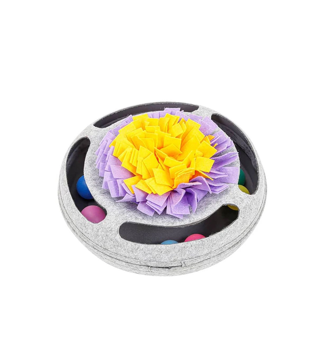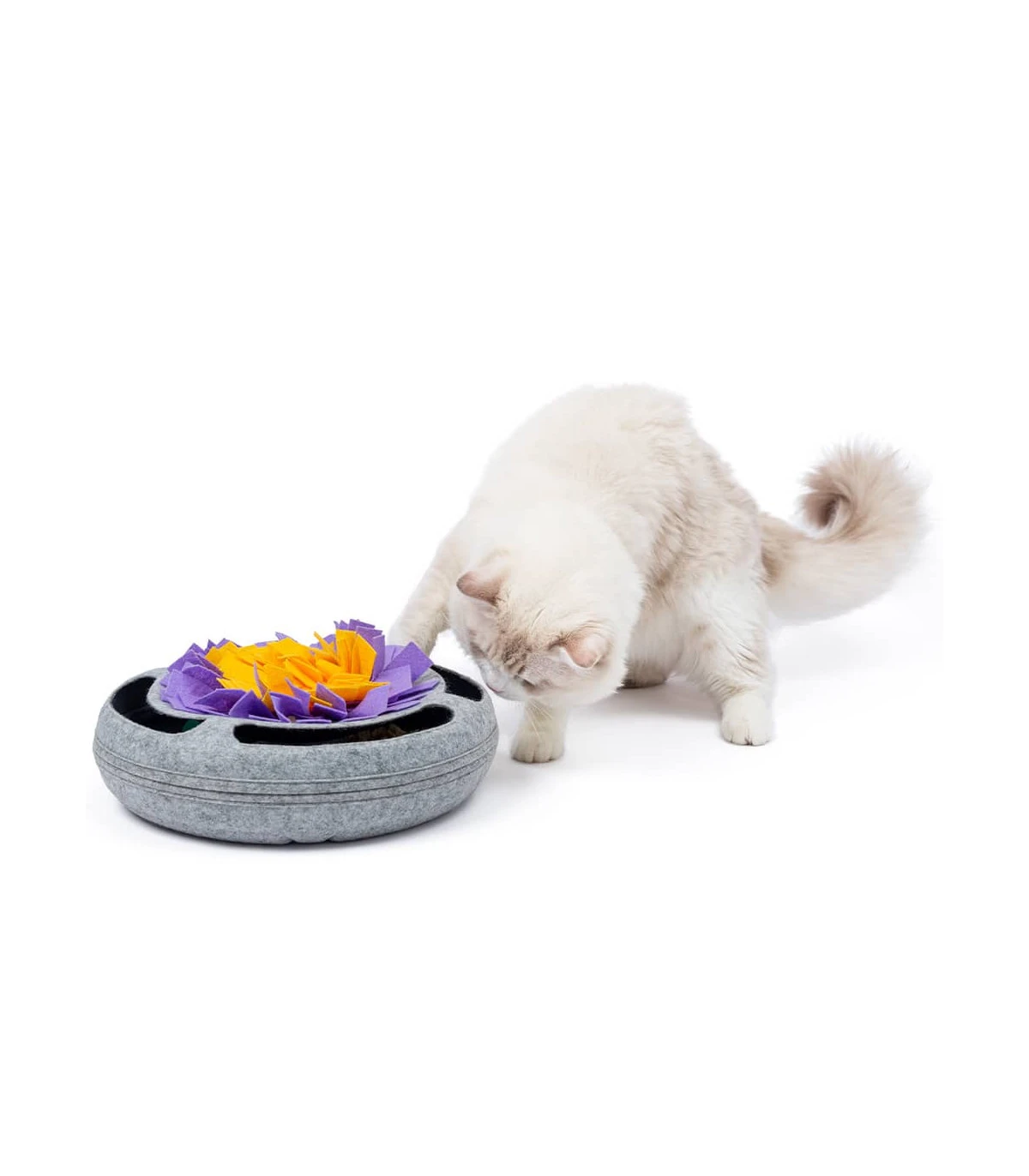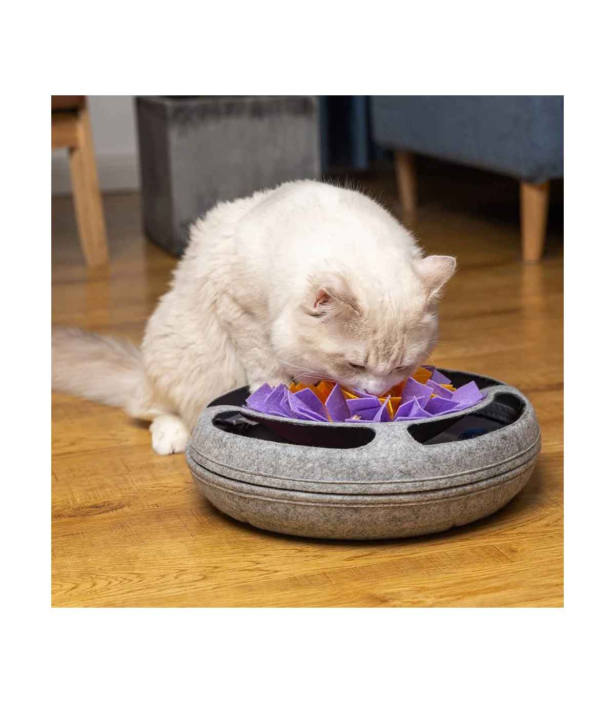 Jouet interactif en feutrine Gris avec tapis de fouille sur le dessus