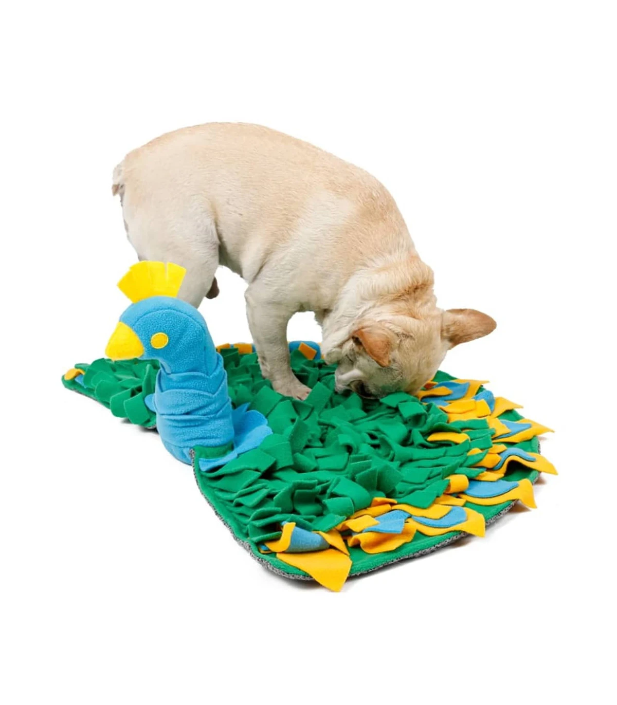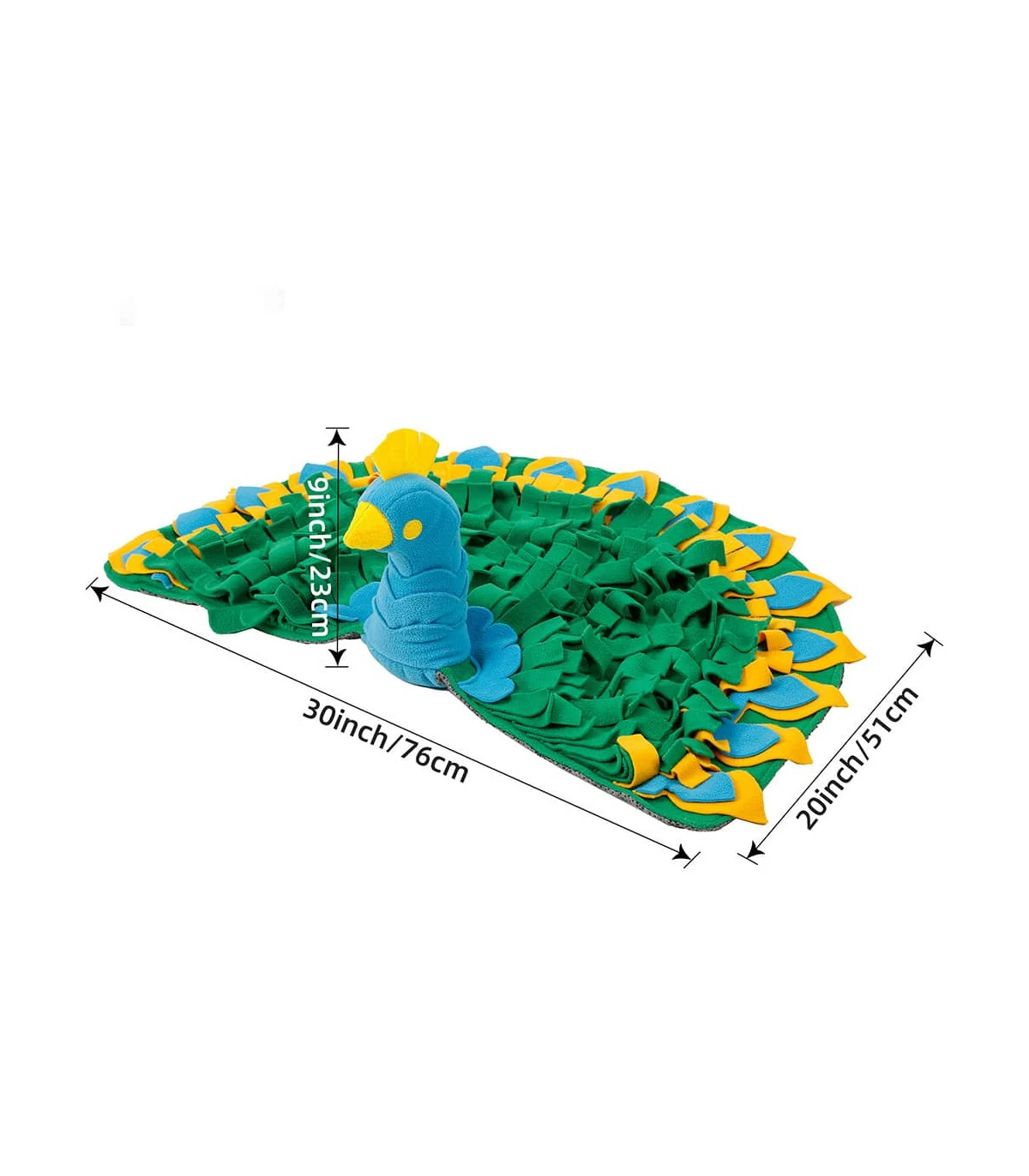 Tapis de fouille en forme de Paon à fourrer avec ses croquettes ou ses friandises préférés