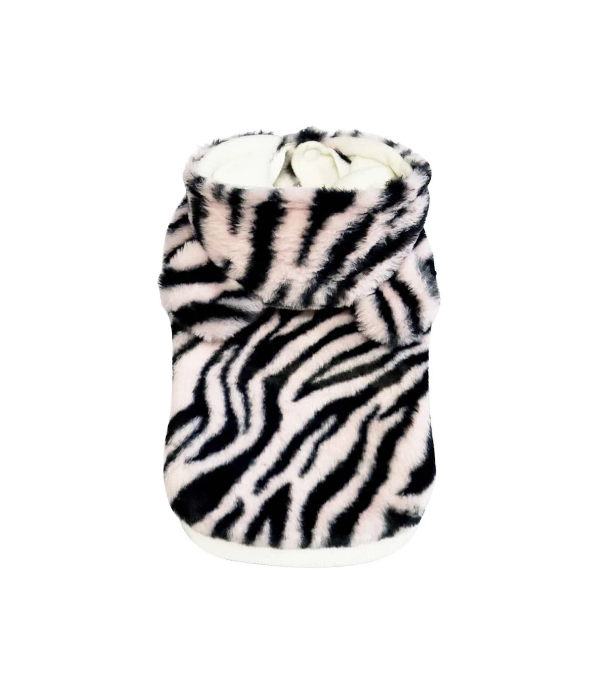 Manteau en fausse fourrure zèbre noir et rose avec capuche ourson