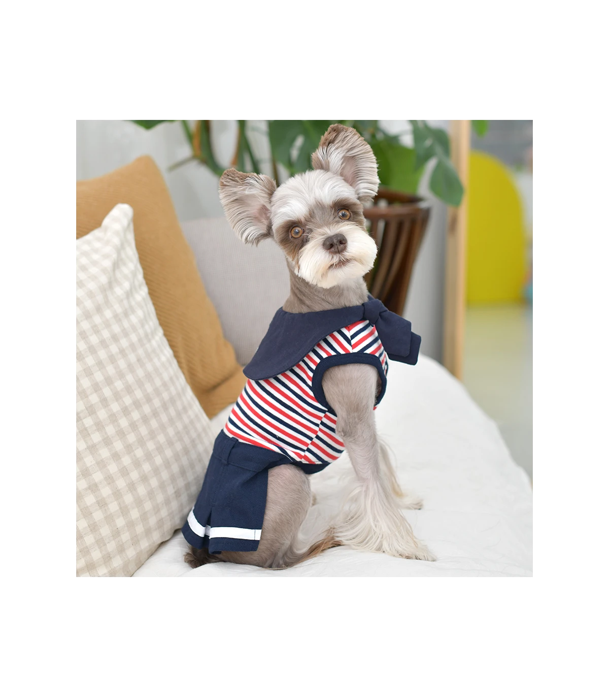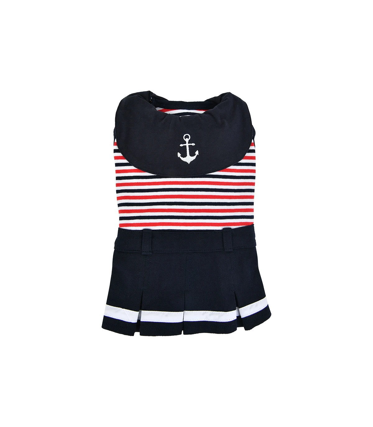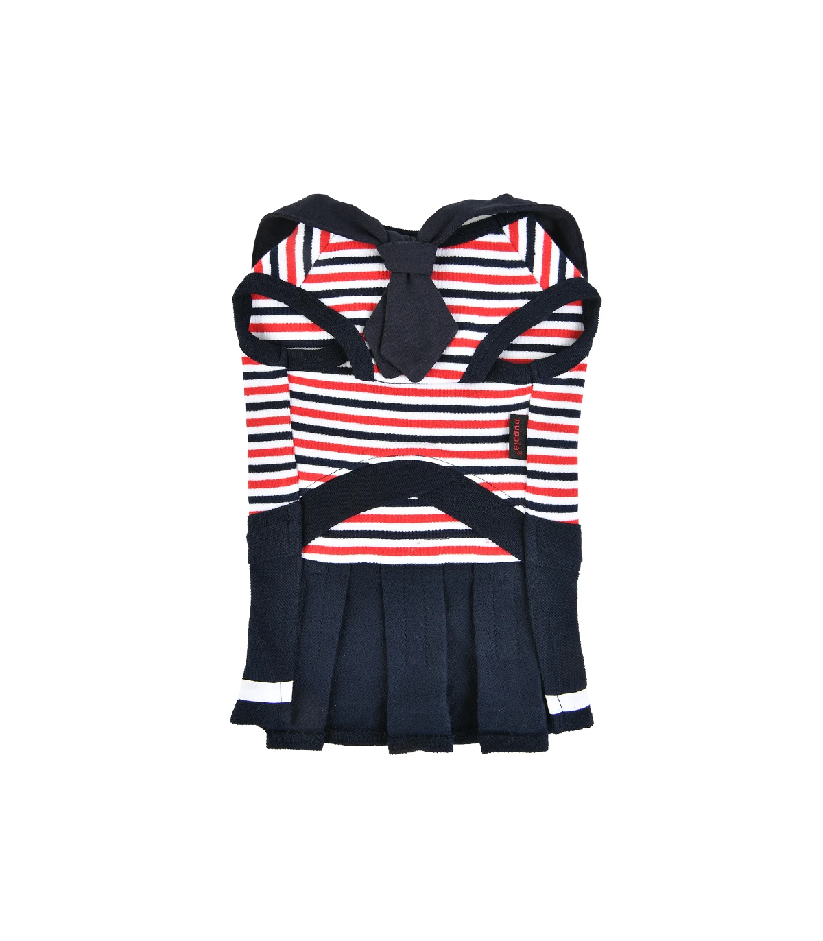 Robe Marinière Bleu Marine avec petite jupe plissé.