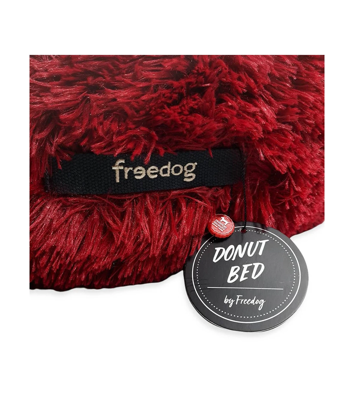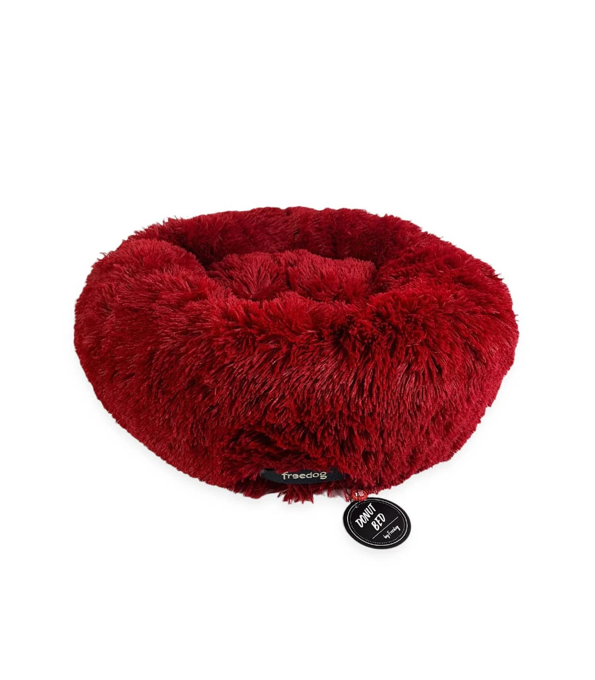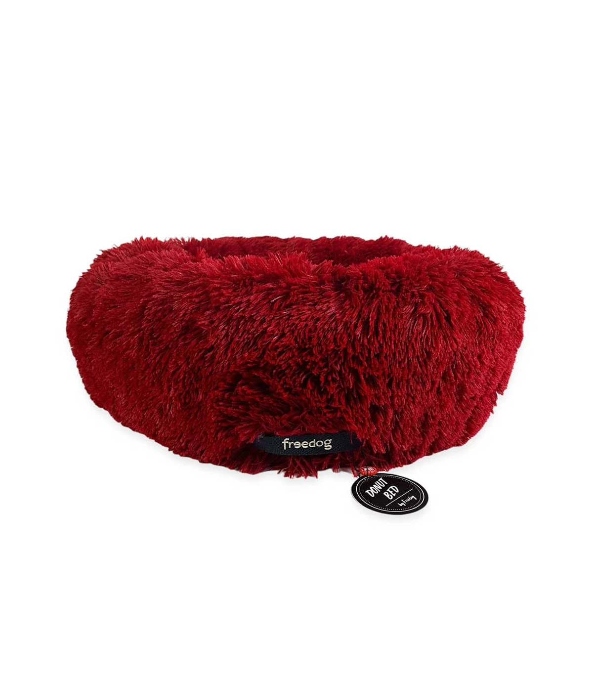 Panier en forme de donuts ultra moelleux en fausse fourrure rouge