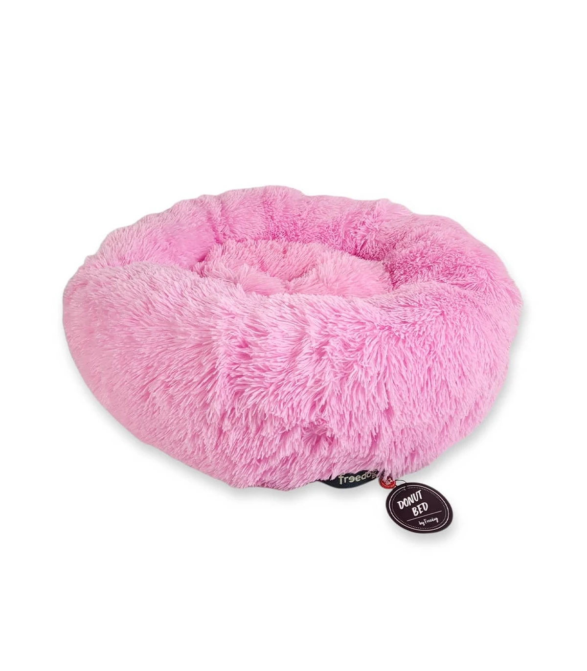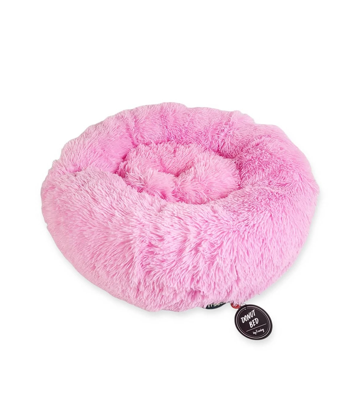 Panier en forme de donuts ultra moelleux en fausse fourrure rose