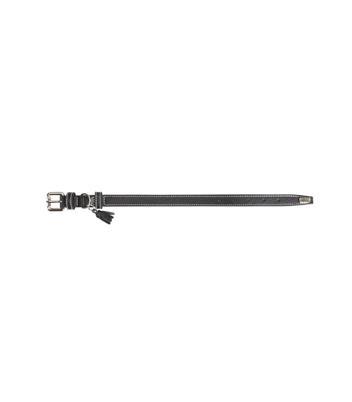 Collier en cuir de Veau Grainé noir avec pompon en cuir