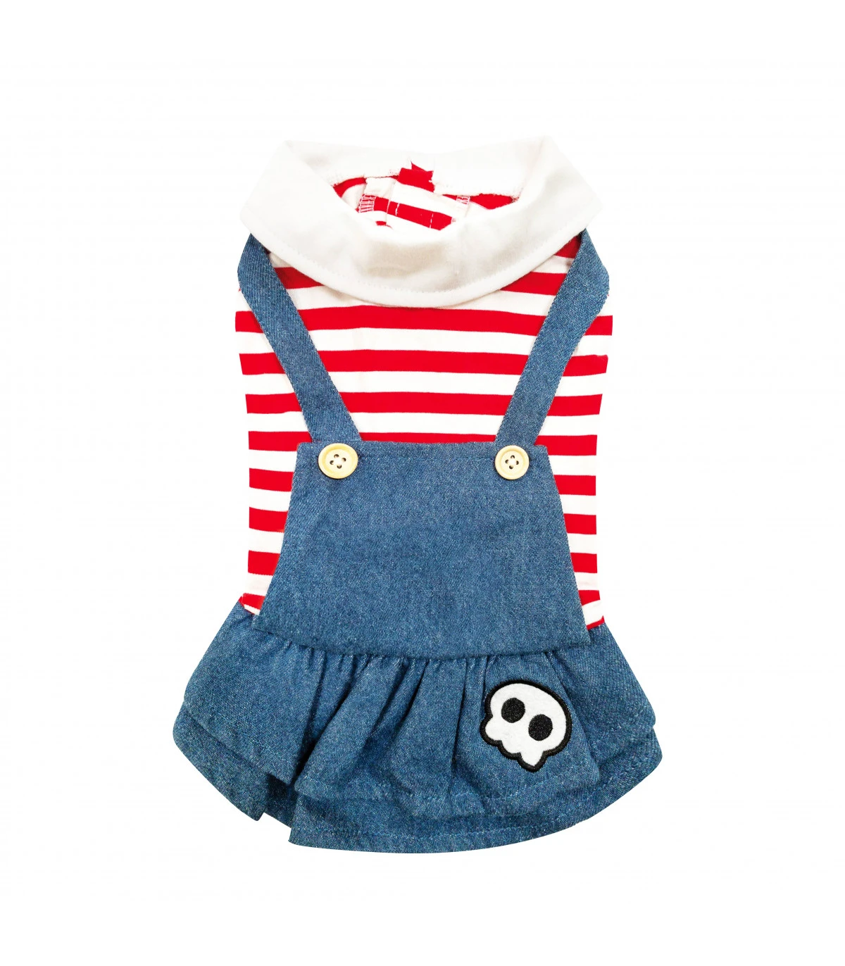 Robe en jean avec tee- shirt à rayures rouge et blanc