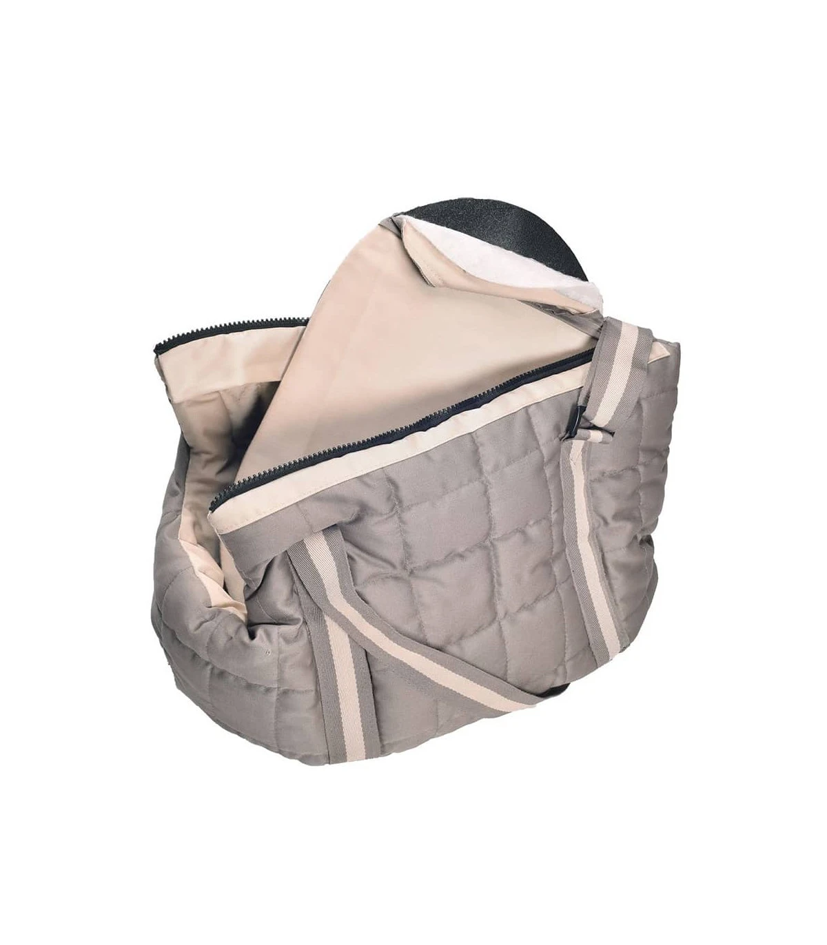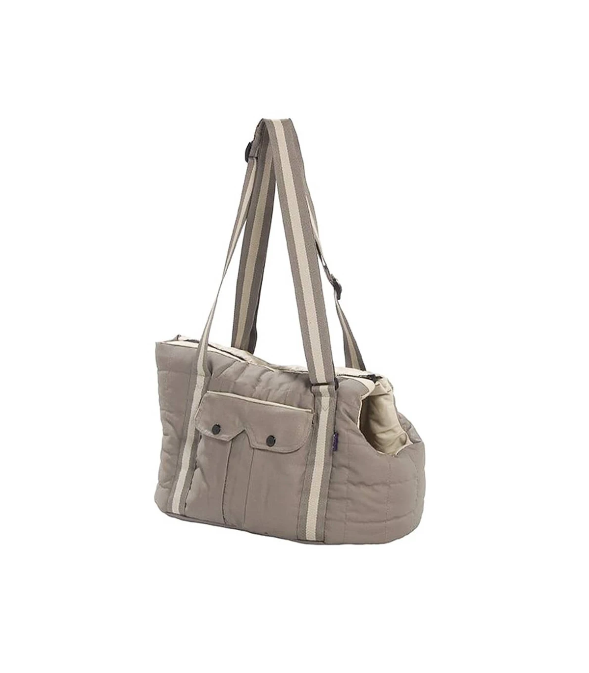 Sac de transport en coton bicolor beige et blanc