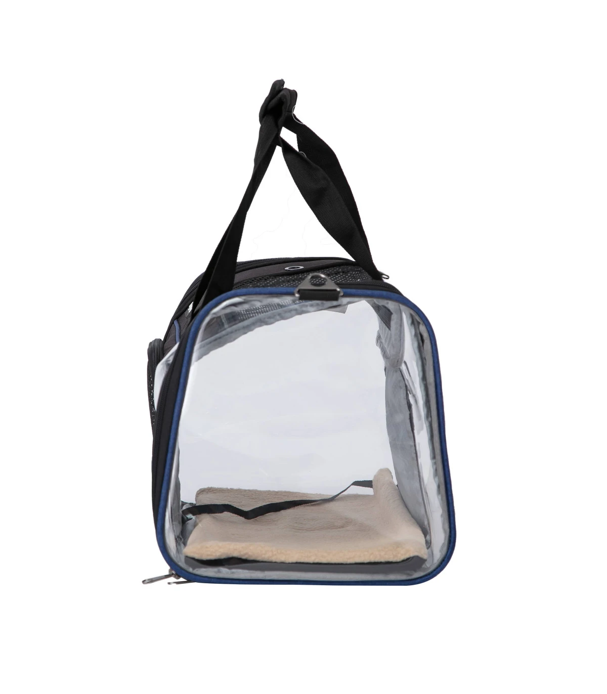 Sac de transport en nylon noir avec liseret bleu et façades transparente pour une clarté absolue