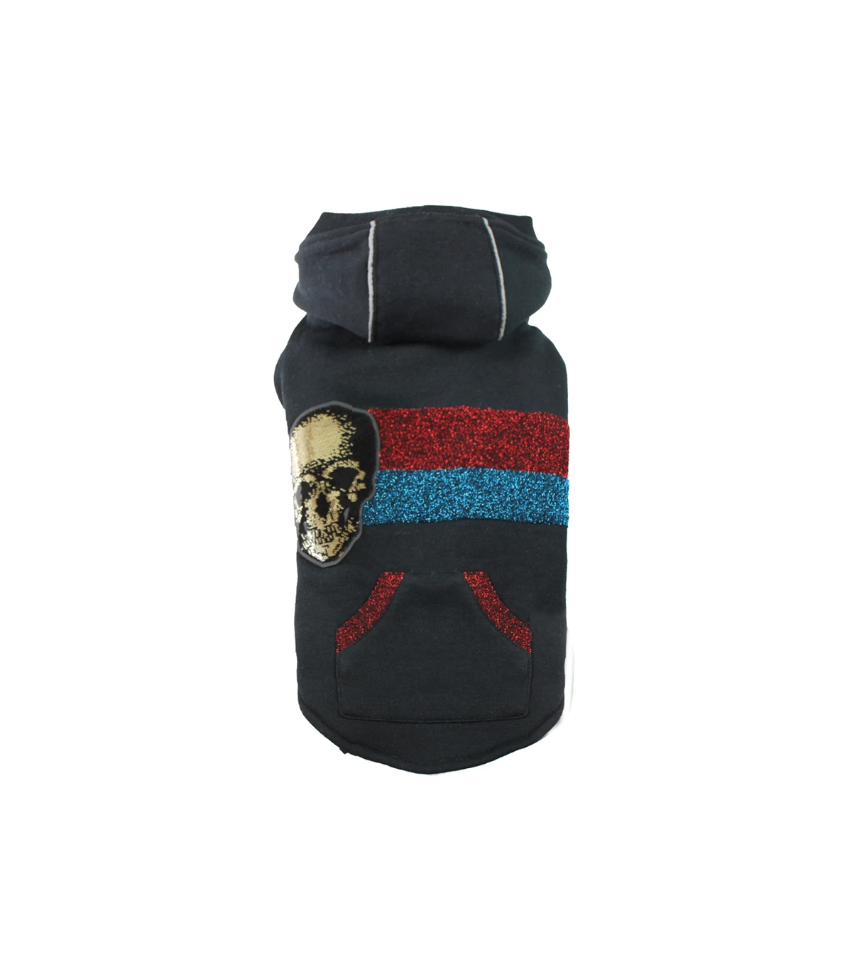 Bande de Lurex rouge et Bleu sur le dos et Tete de mors en paillettes Doré.