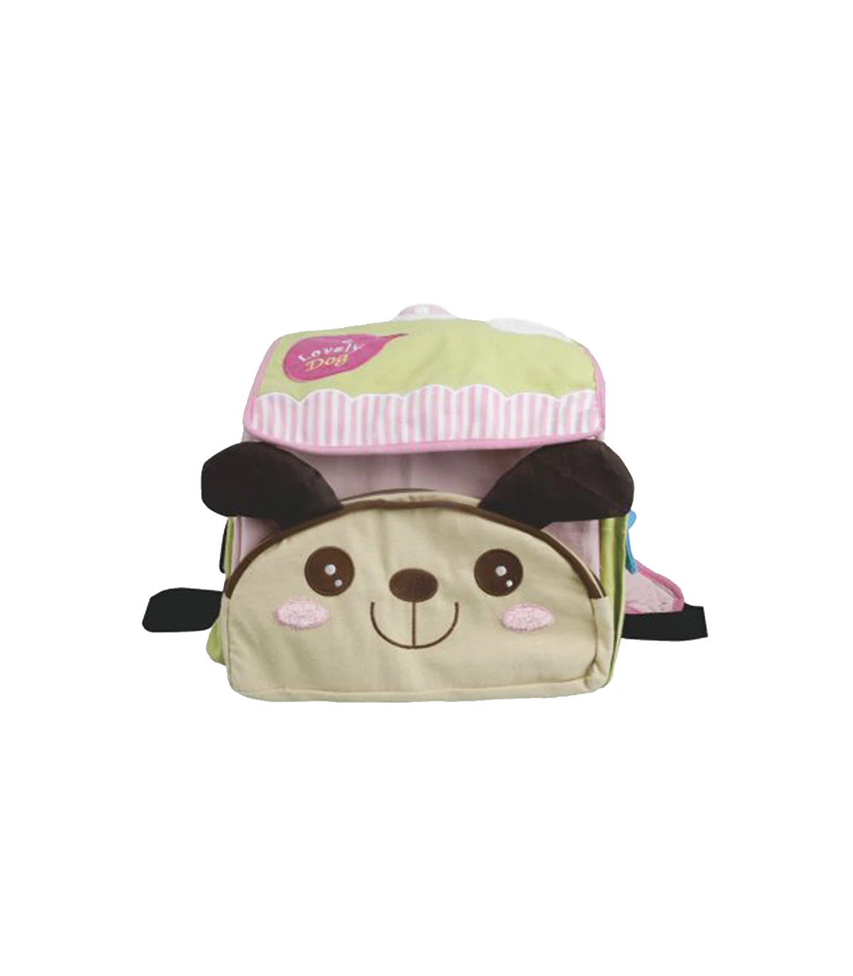 Grande poche avant avec une petit tête de chien ultra mignonne qui se ferme avec un zip.