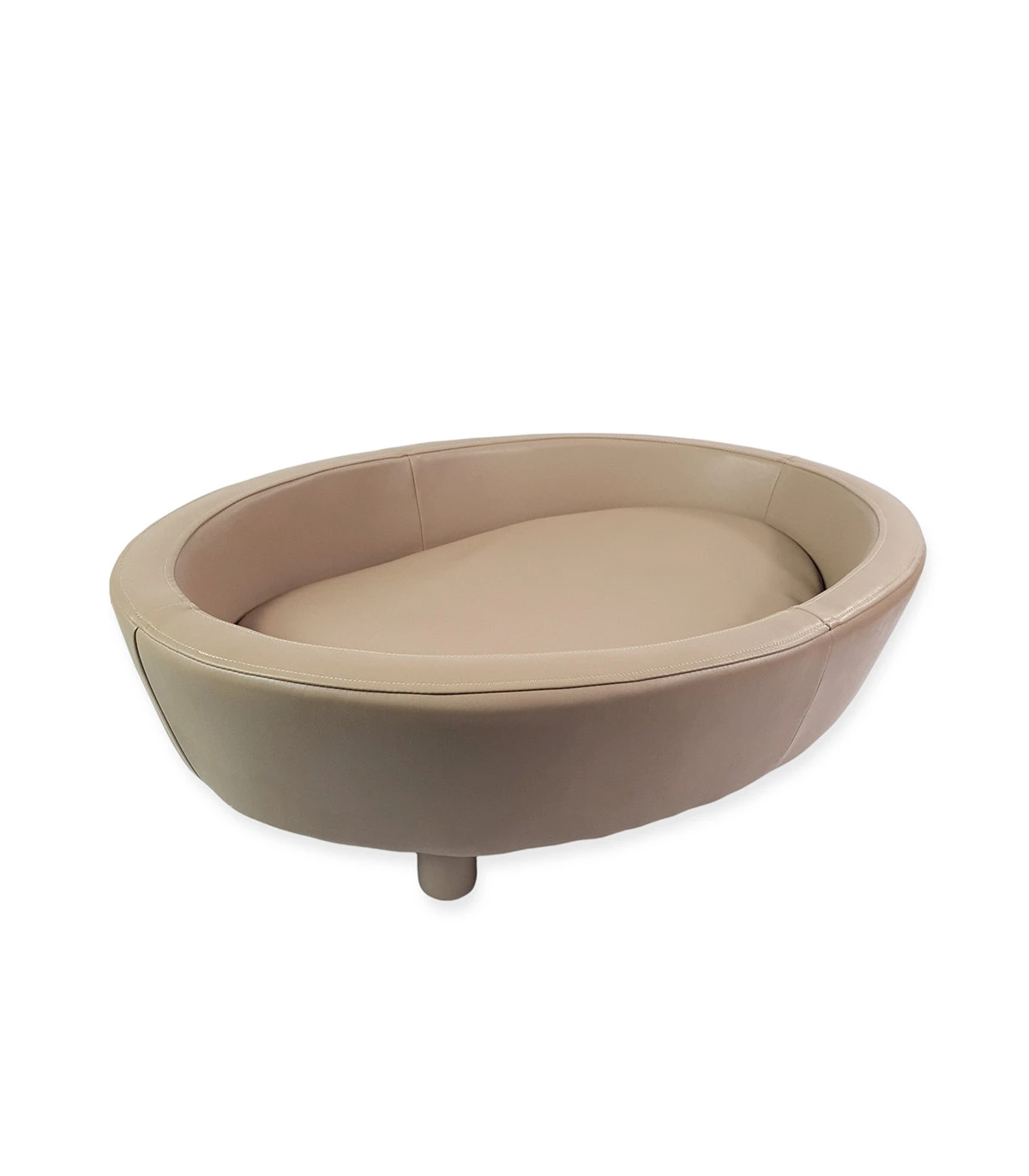 Canapé pour chien et chat en simili cuir beige de forme ovale
