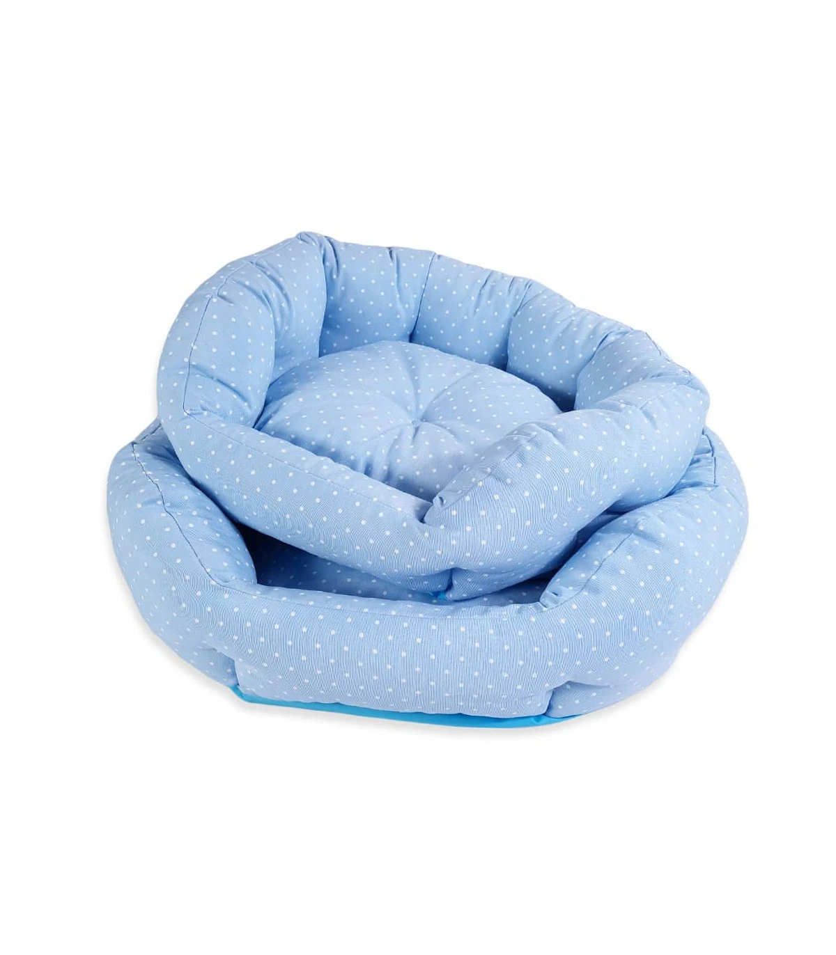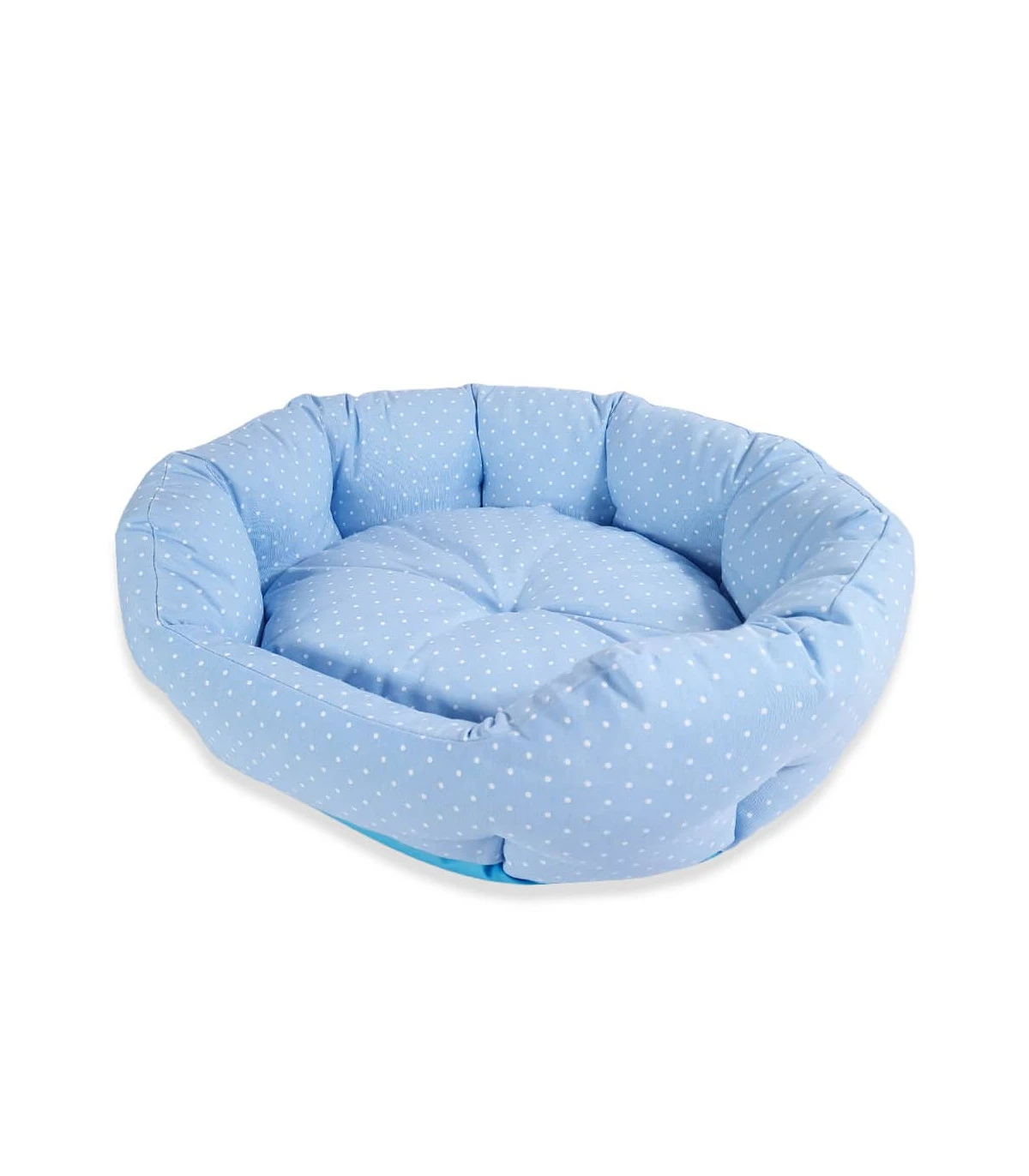 Panier rembourré imprimé pois bleu et blanc