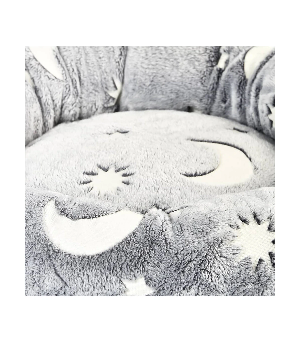 Panier Rond tout doux en polaire gris avec motifs Phosphorescents qui brille dans le noir
