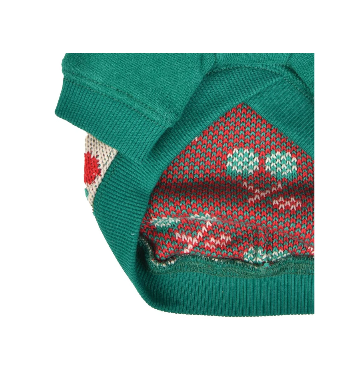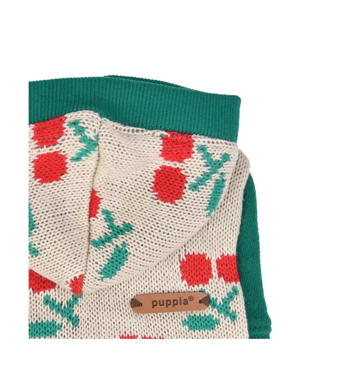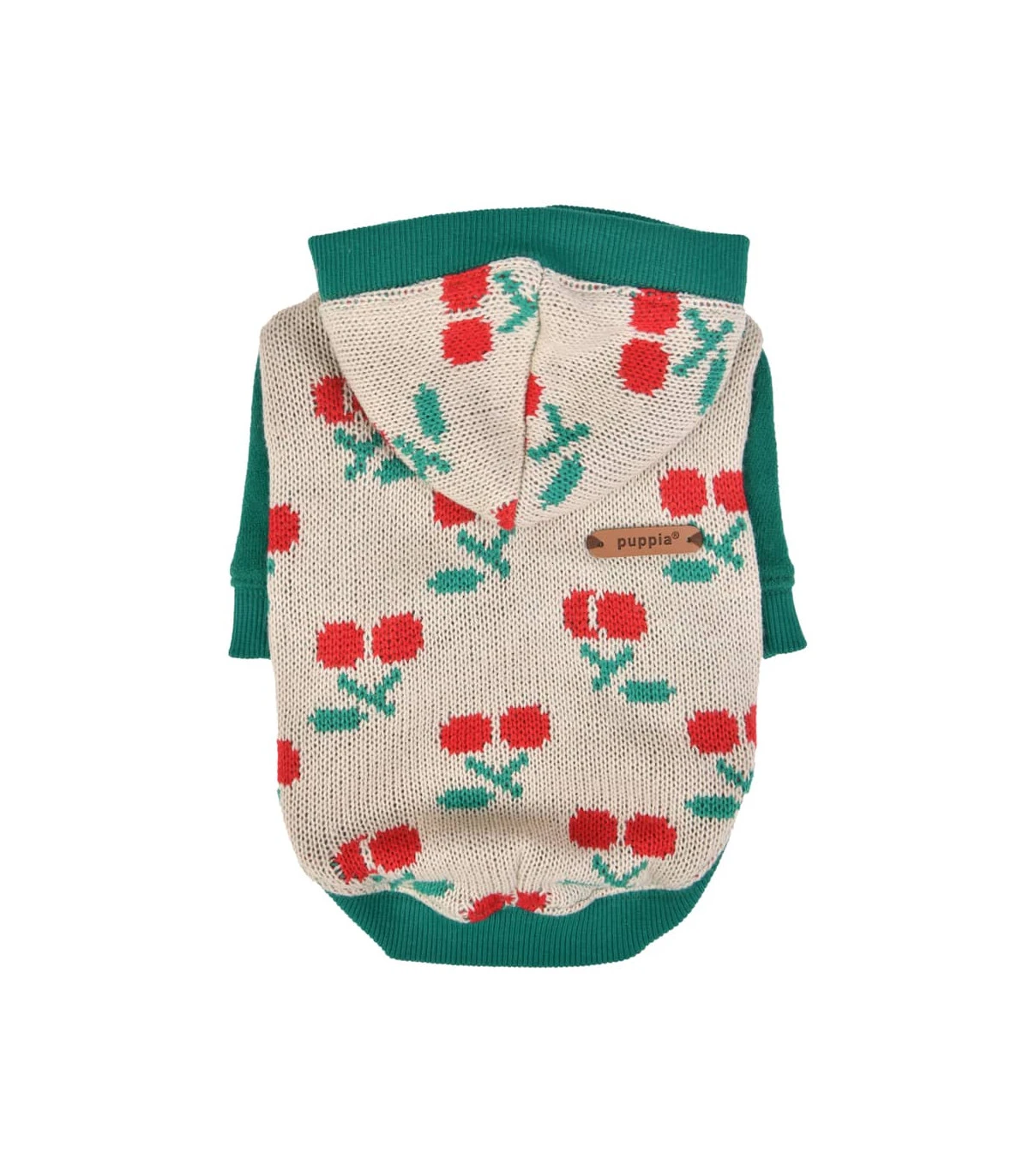 Sweat à capuche en maille beige et vert ,imprimé cerise