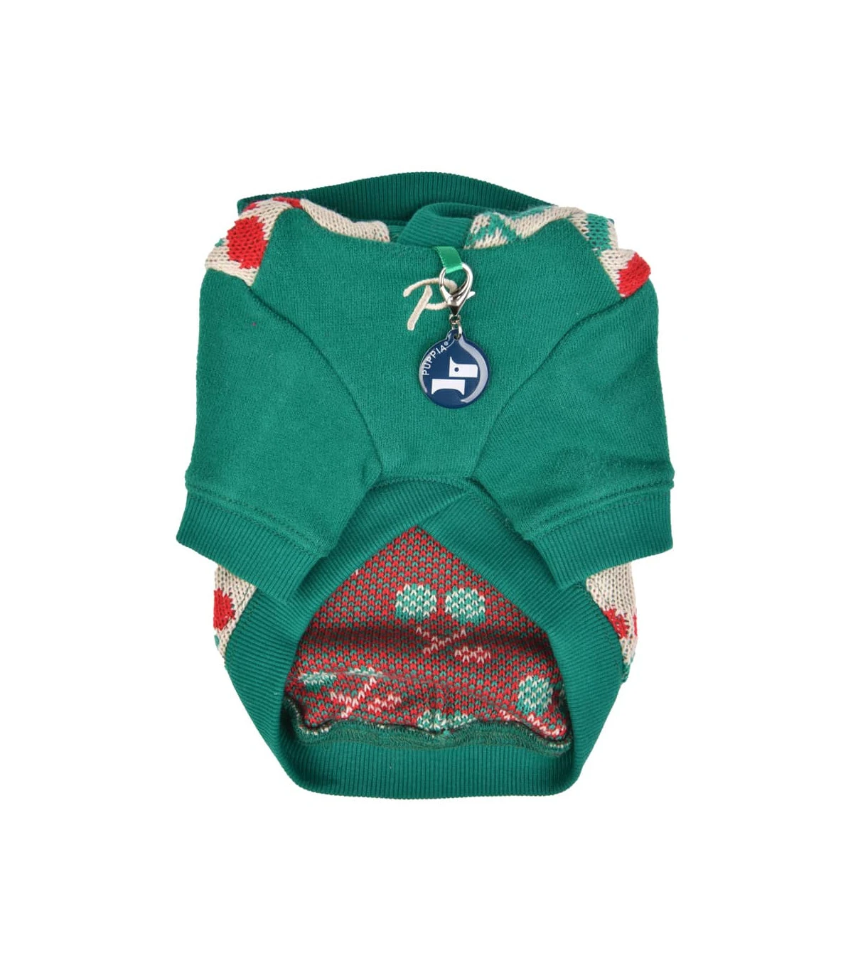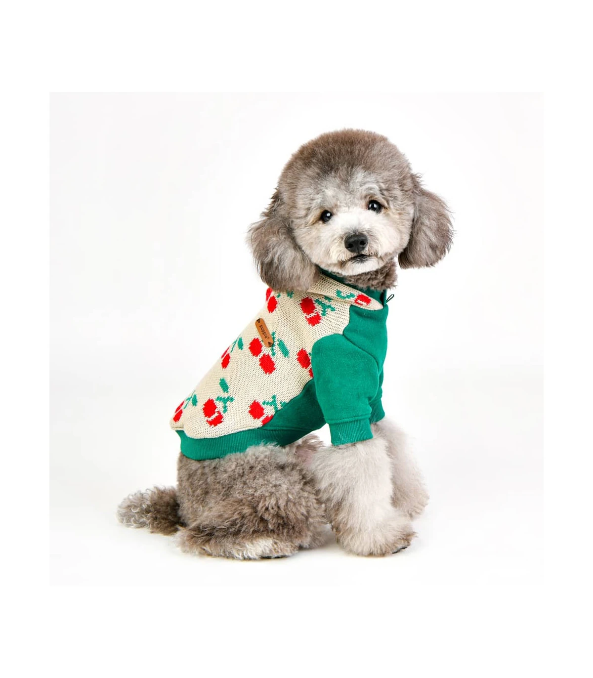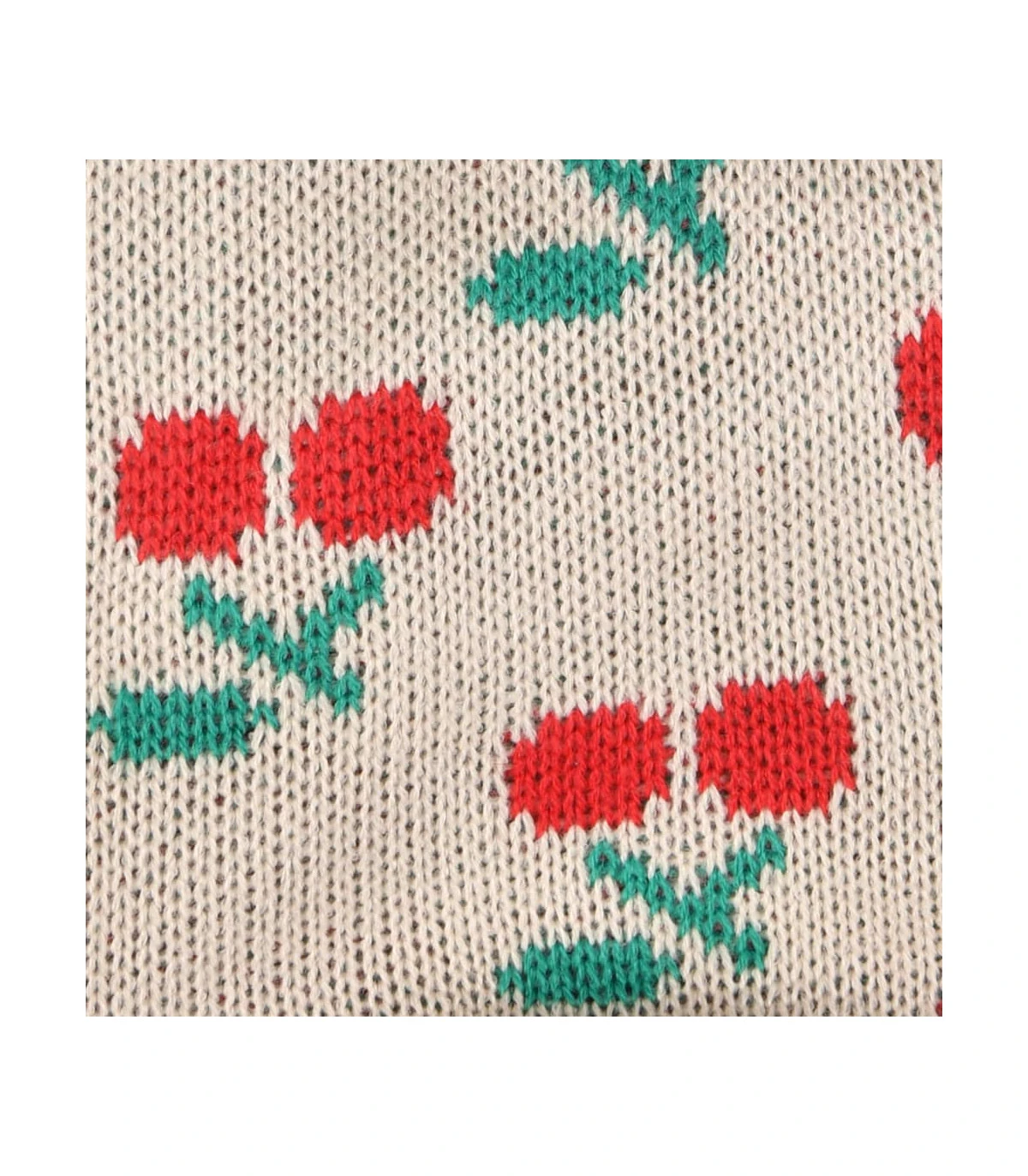 Sweat à capuche en maille beige et vert ,imprimé cerise