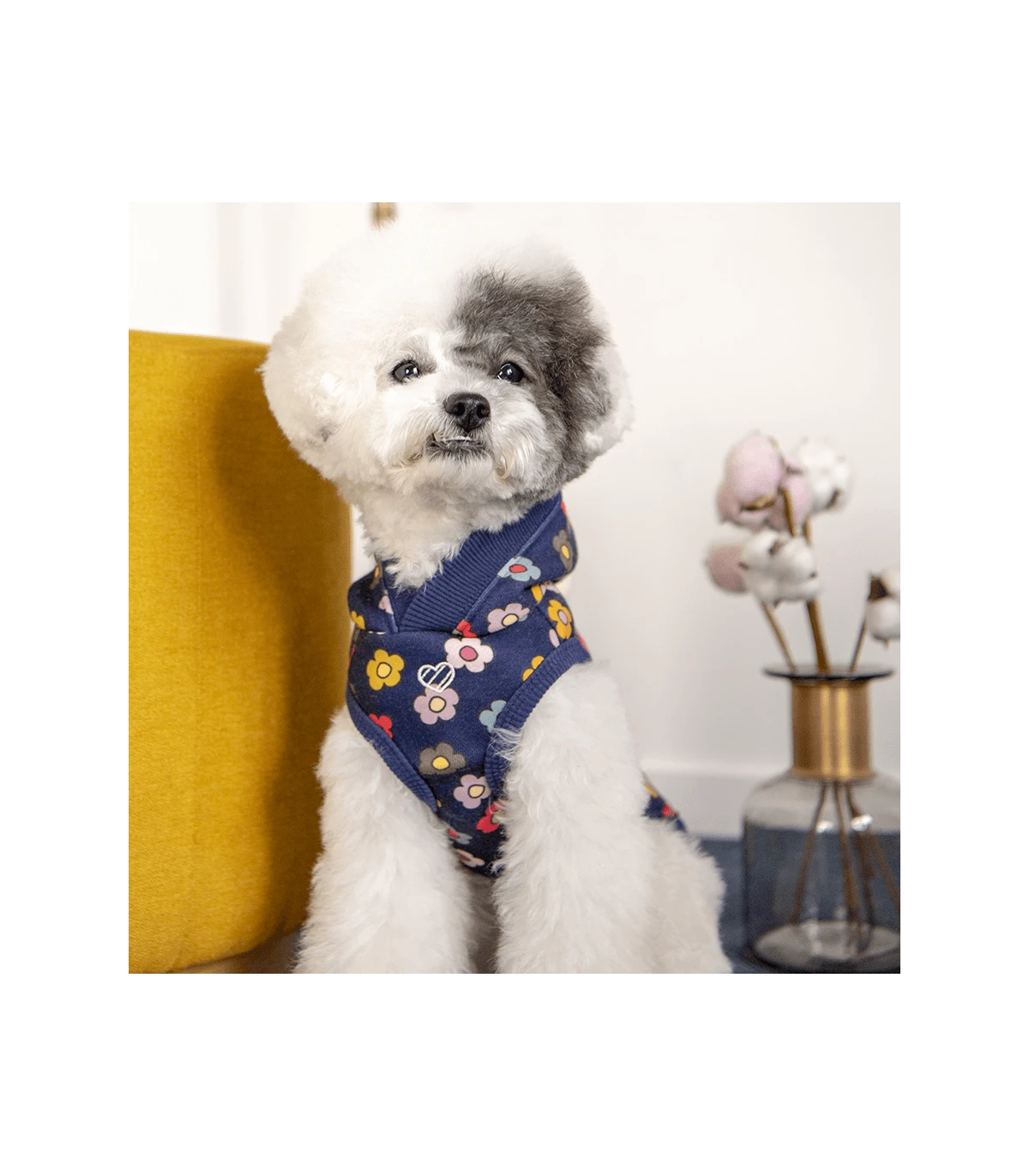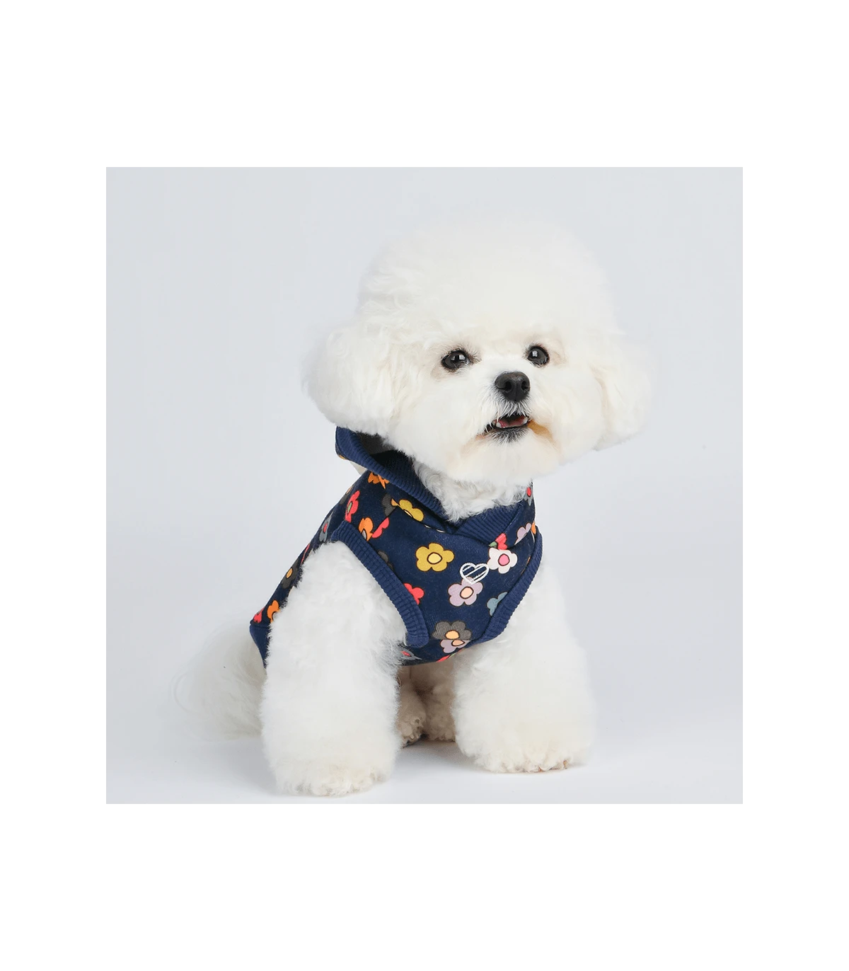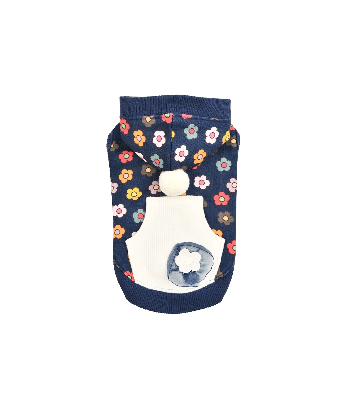 Sweat à fleur bleu marine avec capuche.