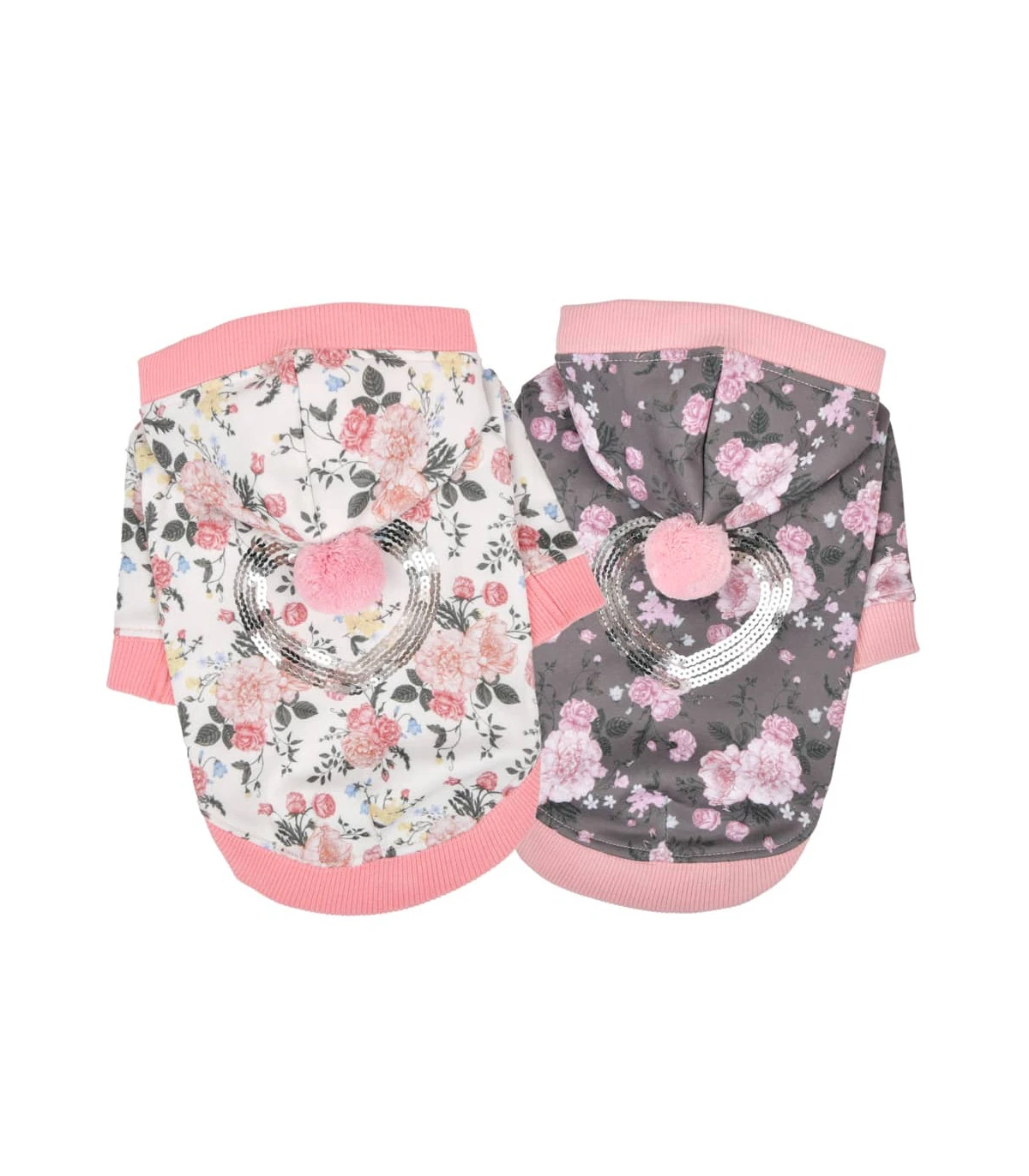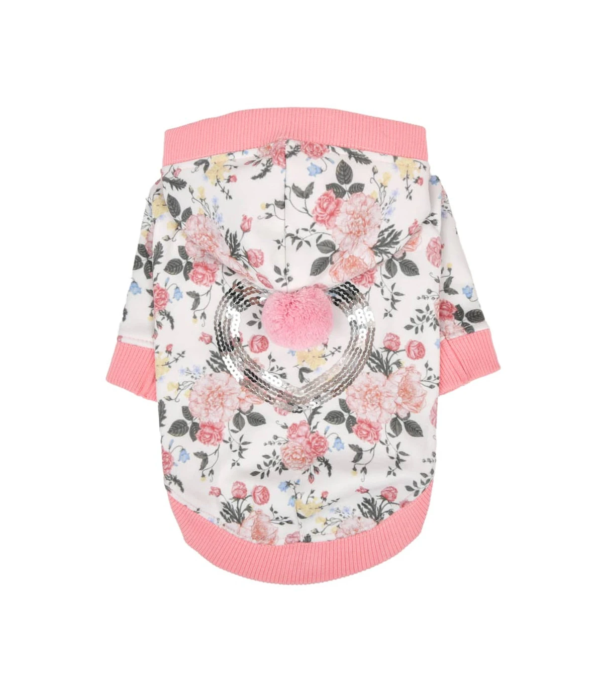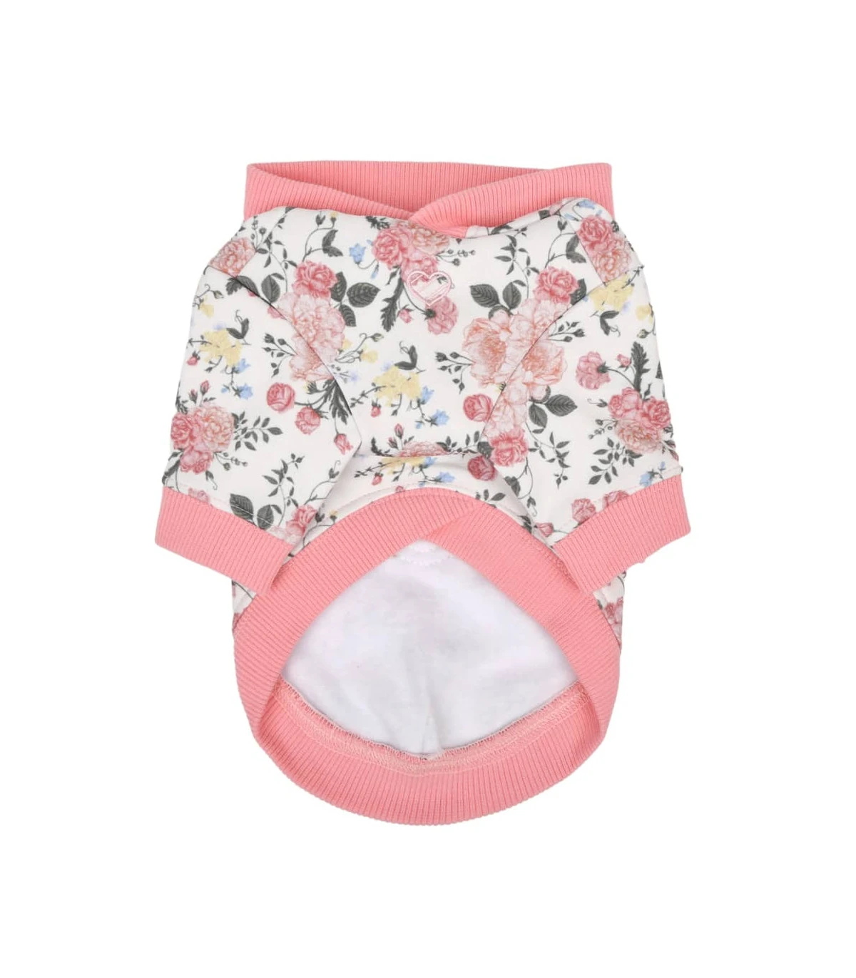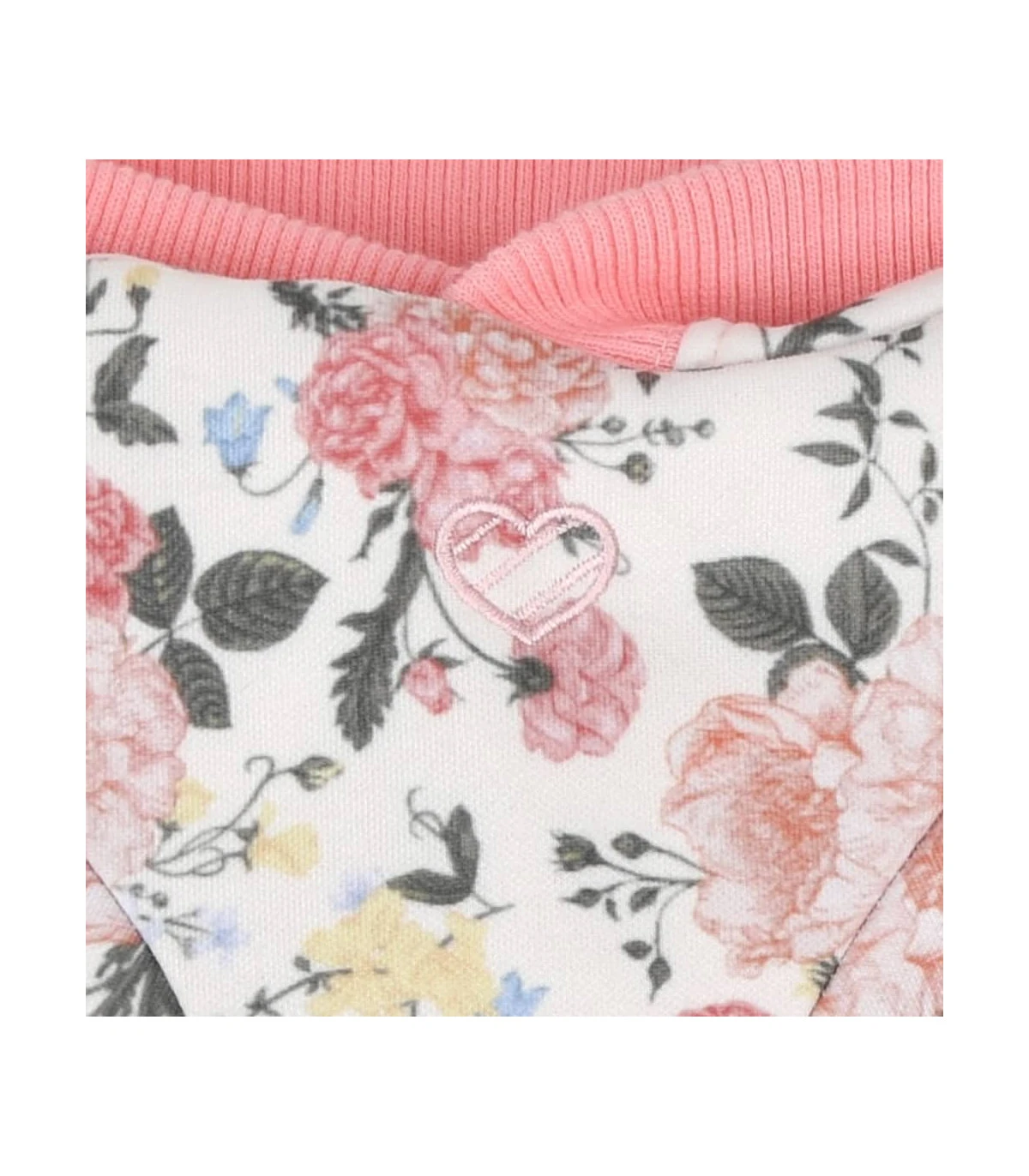 Sweat à Capuche en Cotton imprimé fleuri ivoire et rose