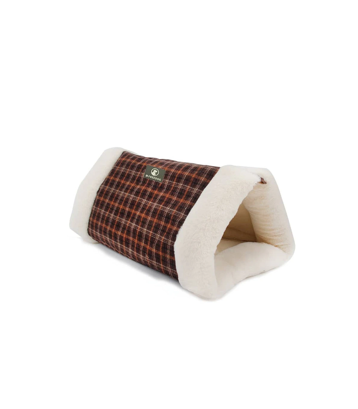 Tunnel pour chat 2 en 1 en tissu écossais marron