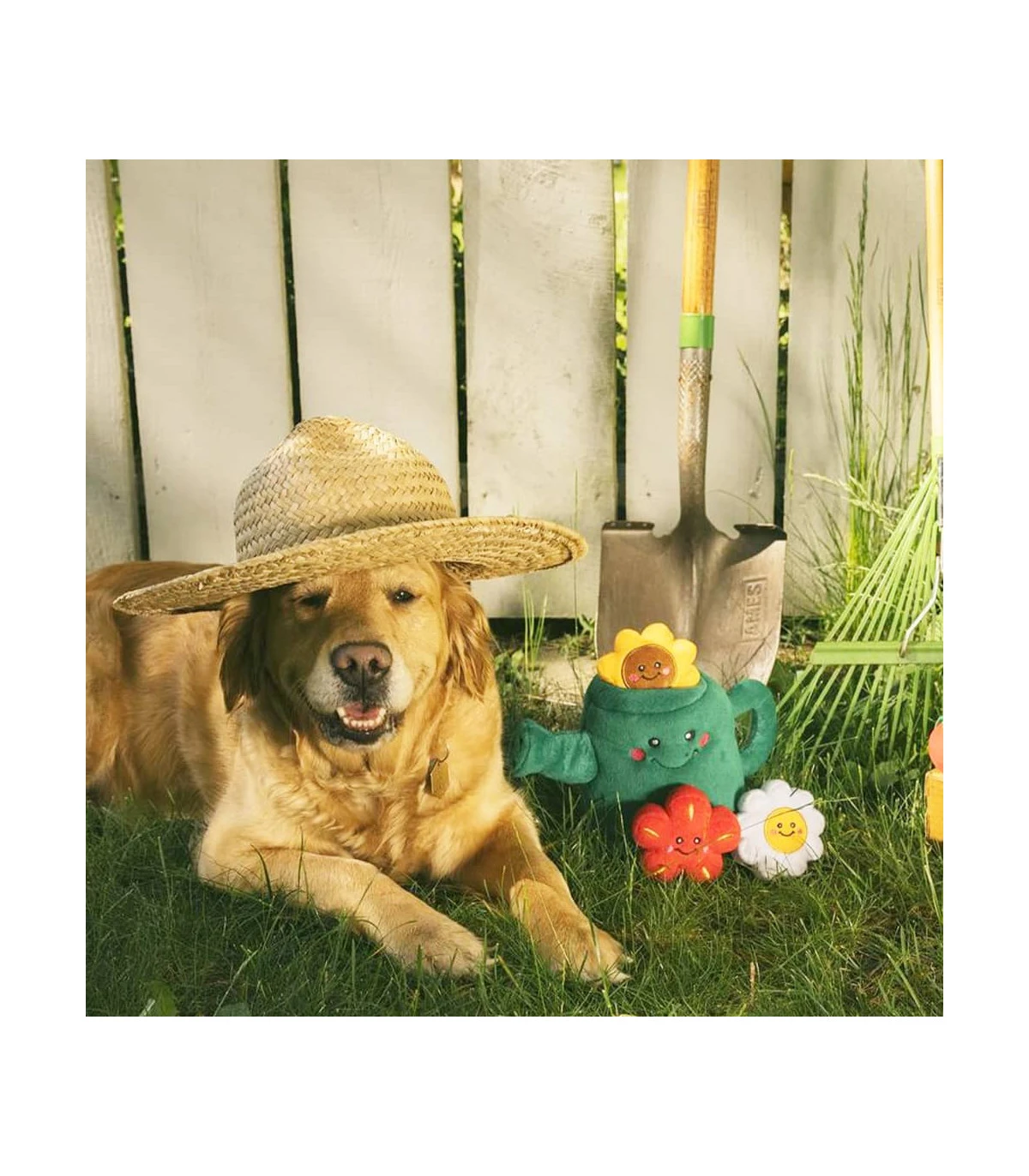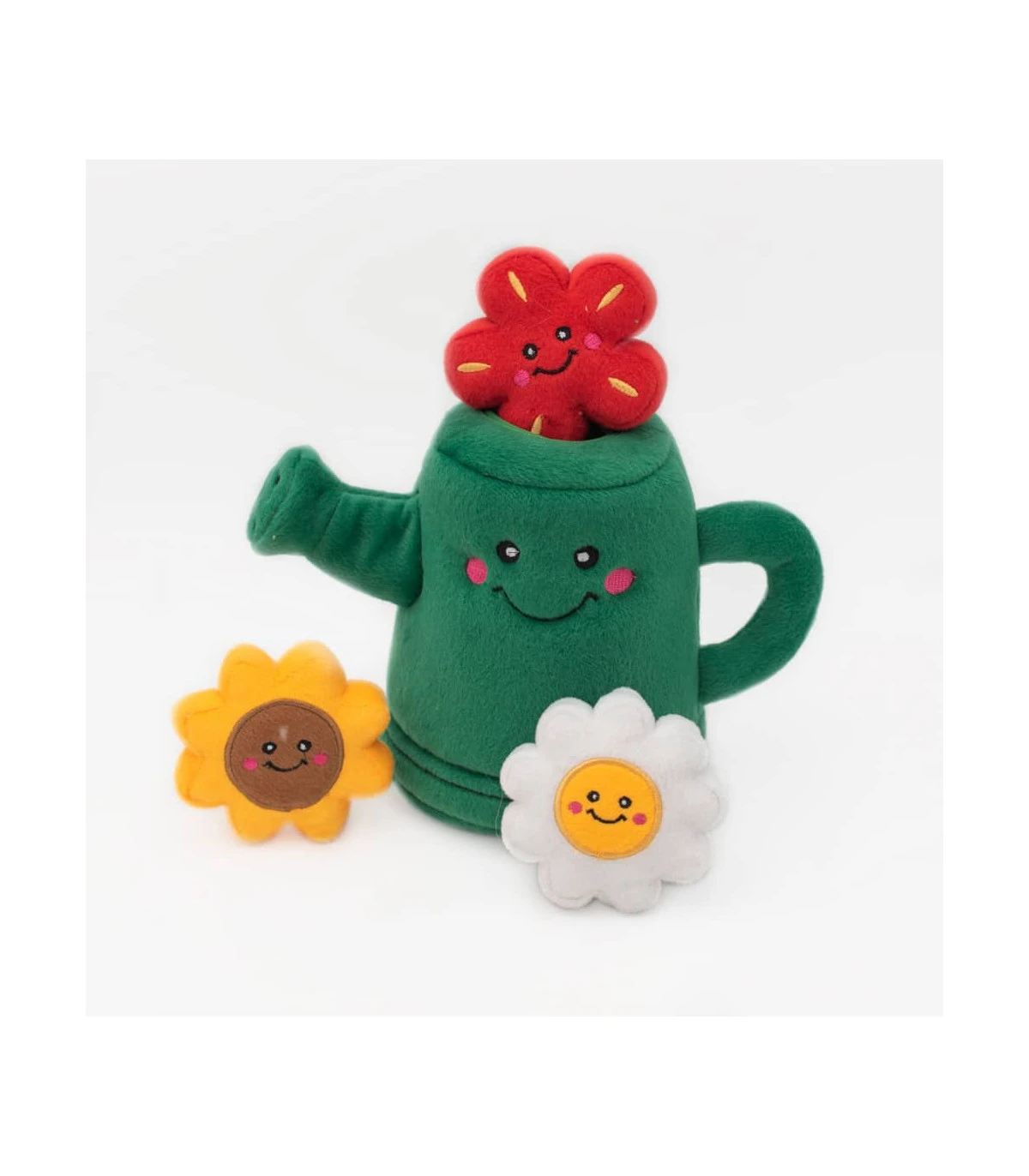 Jouet en peluche Arrosoir rempli de trois jolies fleurs en peluche